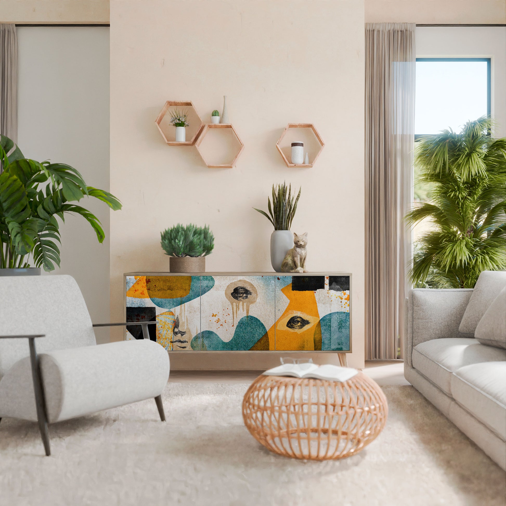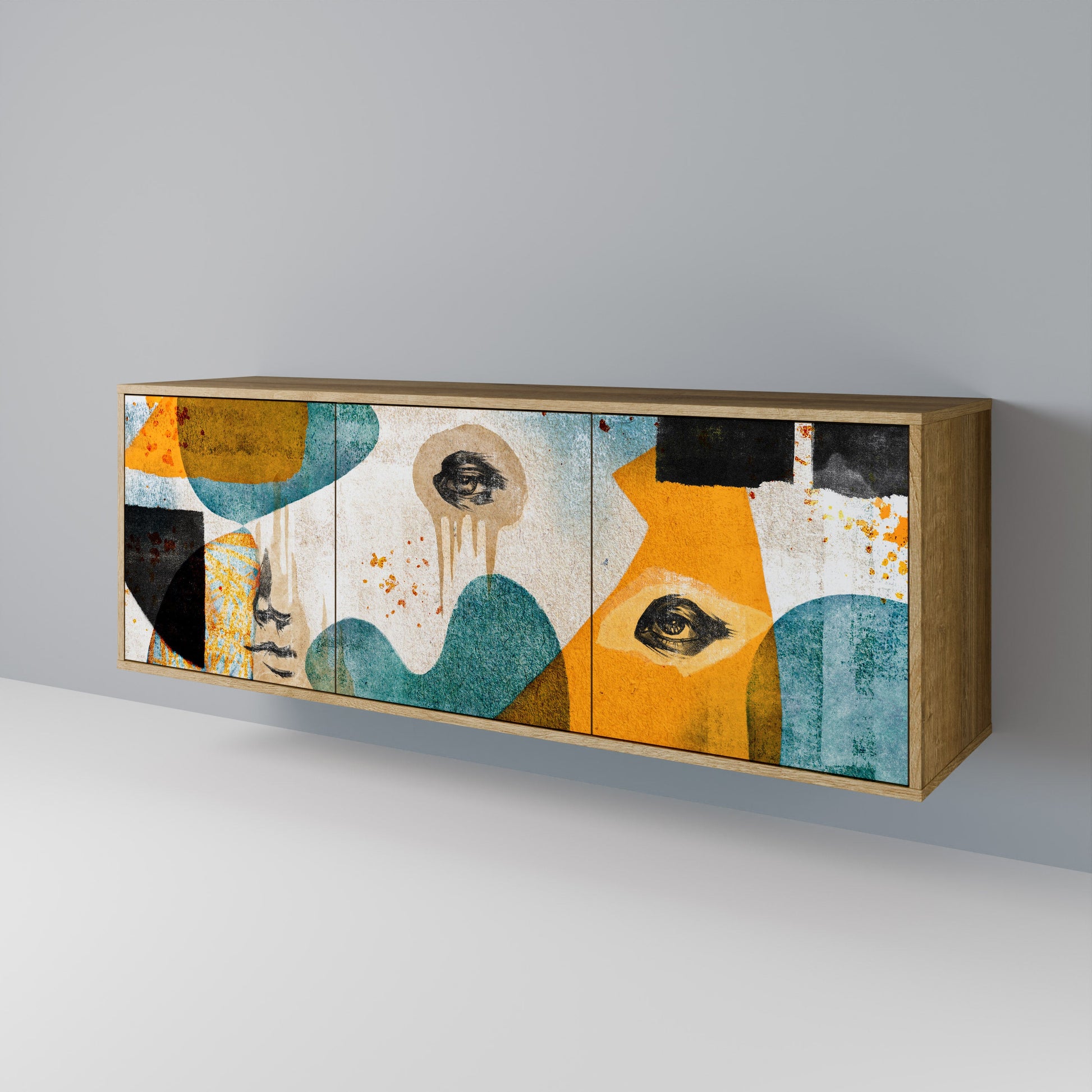 Credenza a 3 ante ABSTRACT FACES in effetto rovere