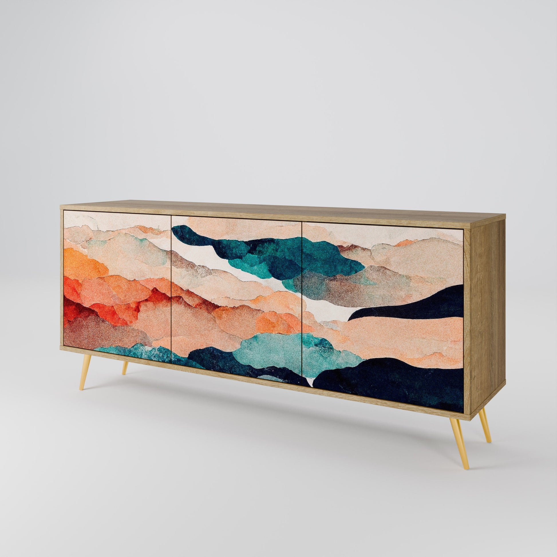Credenza a 3 ante ABSTRACT LANDSCAPE in effetto rovere