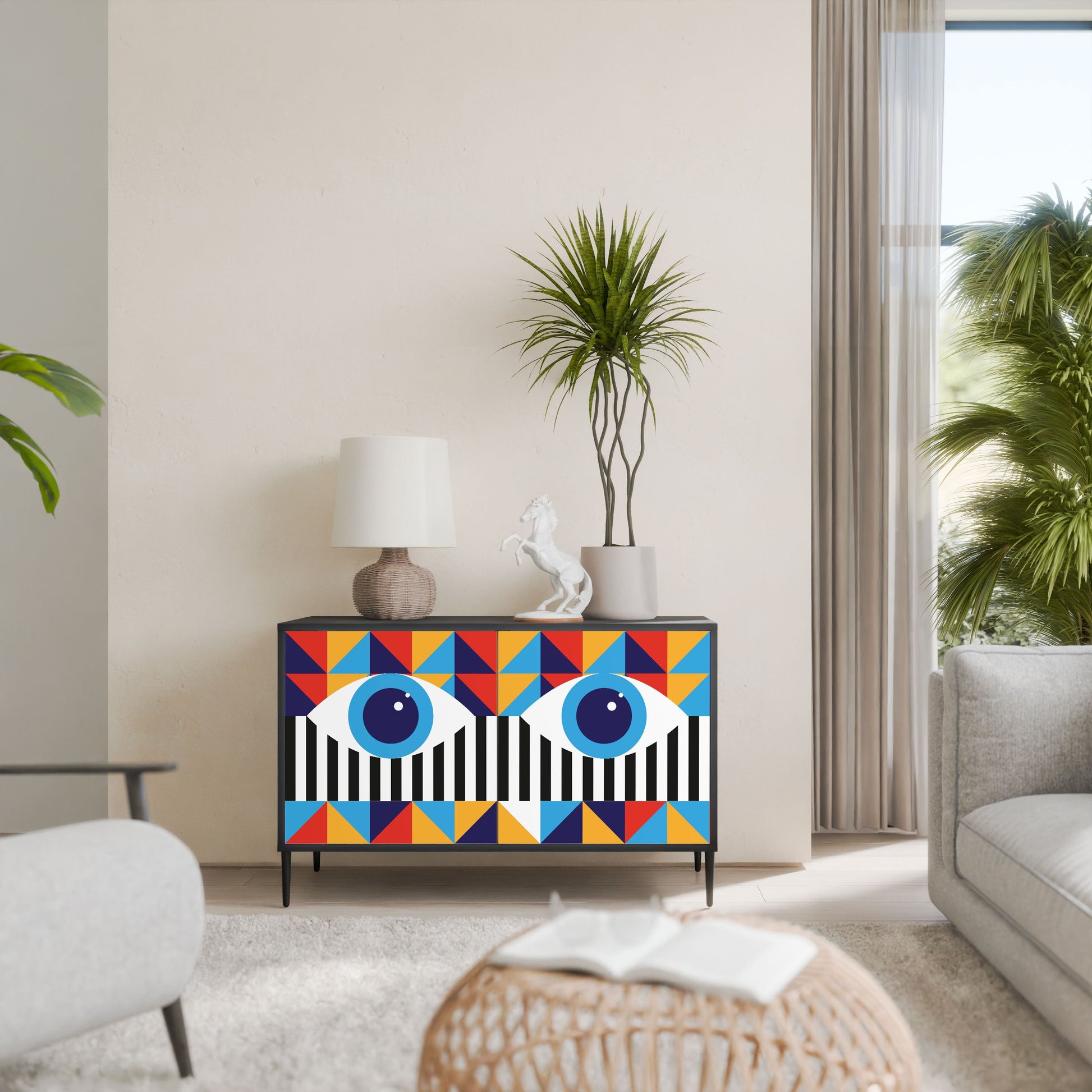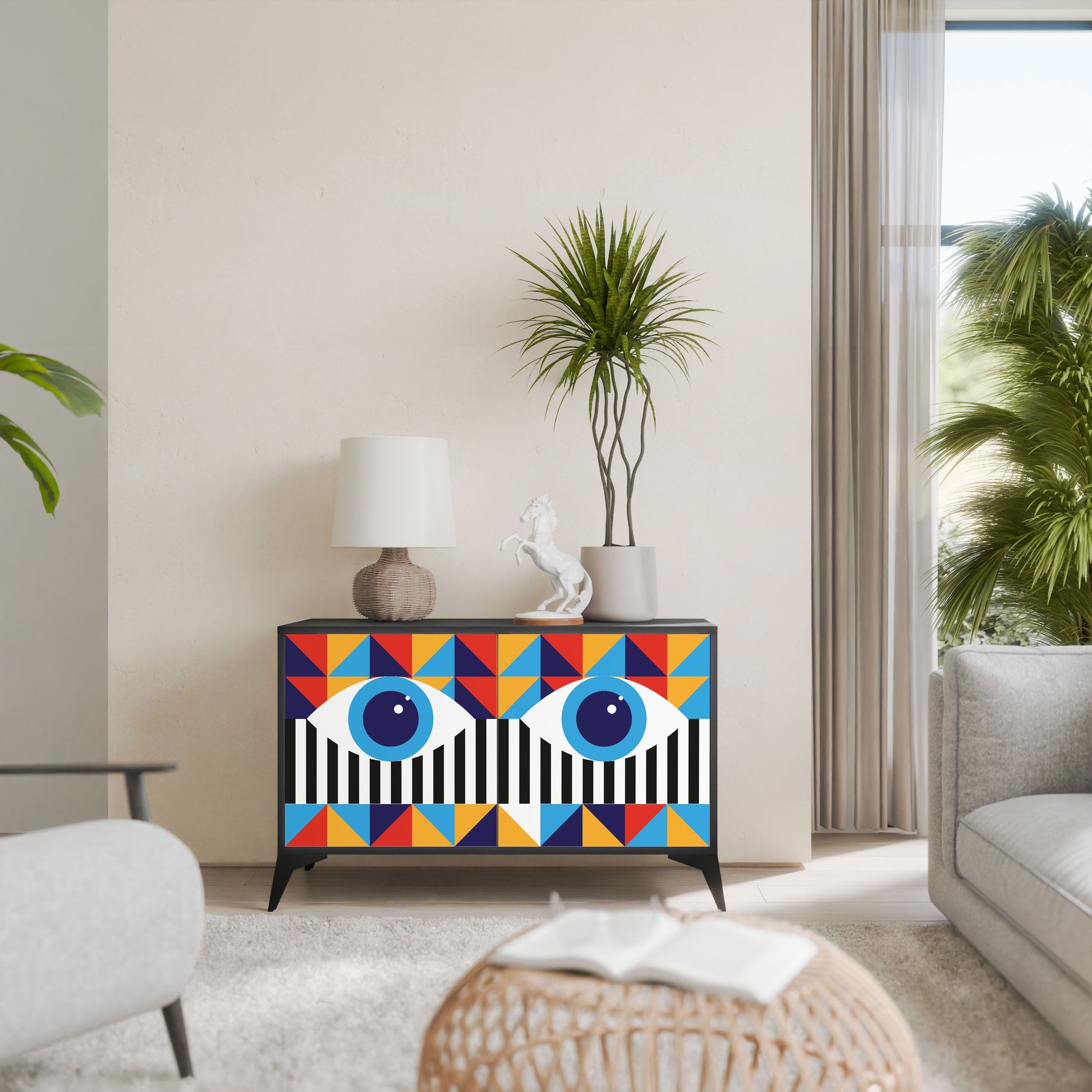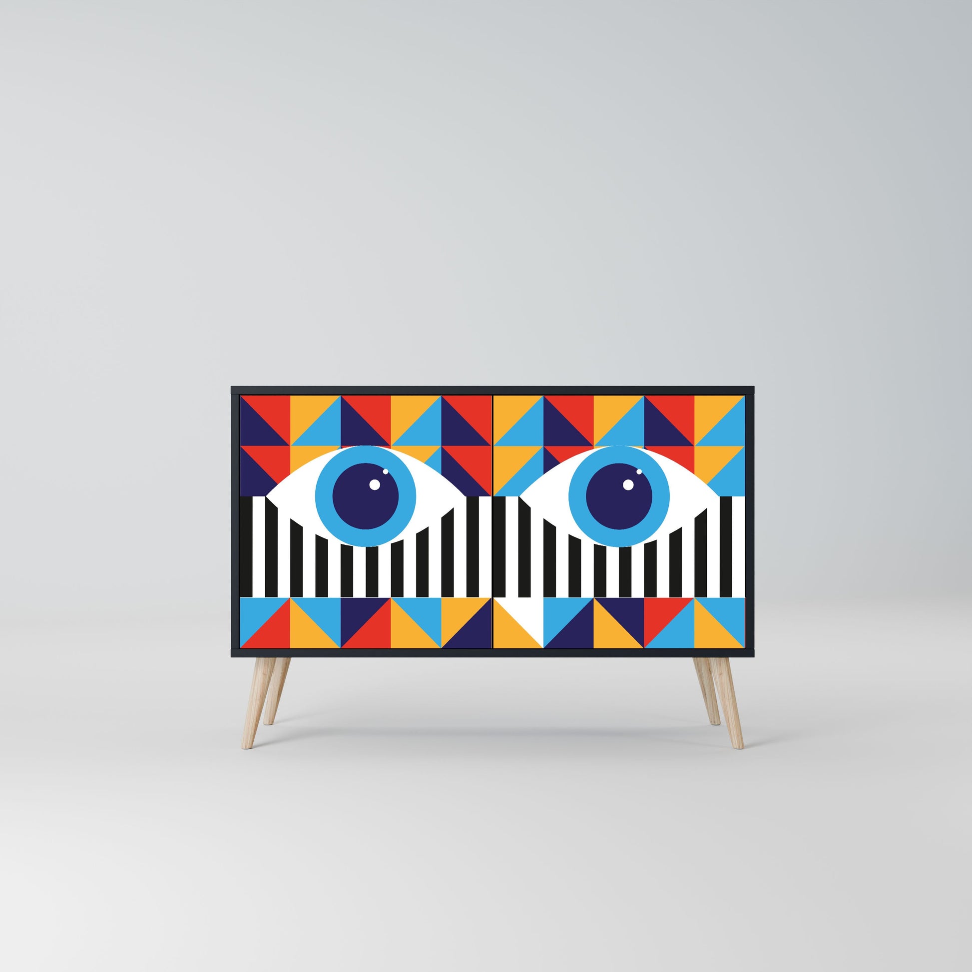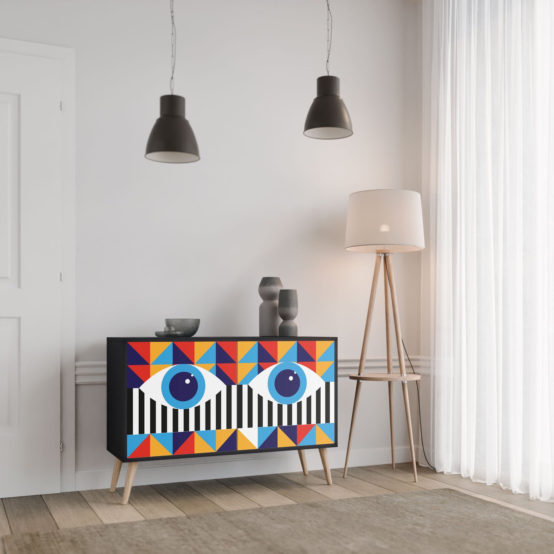 Eleganza e funzionalità in un unico mobile: la nostra credenza a 2 ante con corpo nero è la soluzione perfetta per gli amanti degli interni eleganti e moderni. Il corpo nero enfatizza il carattere audace del mobile, mentre i frontali con una stampa unica aggiungono un tocco artistico. Si adatta perfettamente al soggiorno, alla camera da letto o all'ufficio, completando sia gli arrangiamenti moderni che quelli industriali.