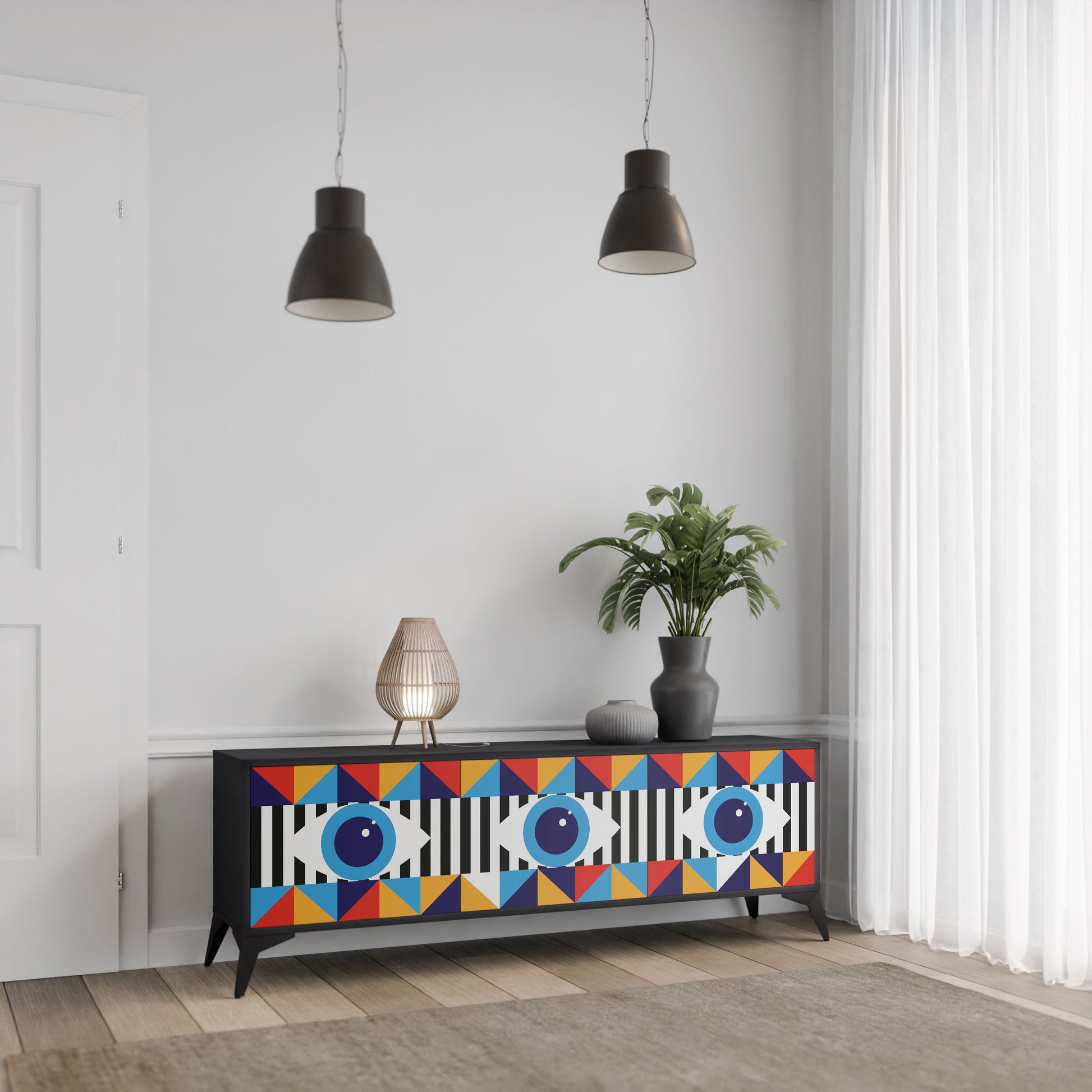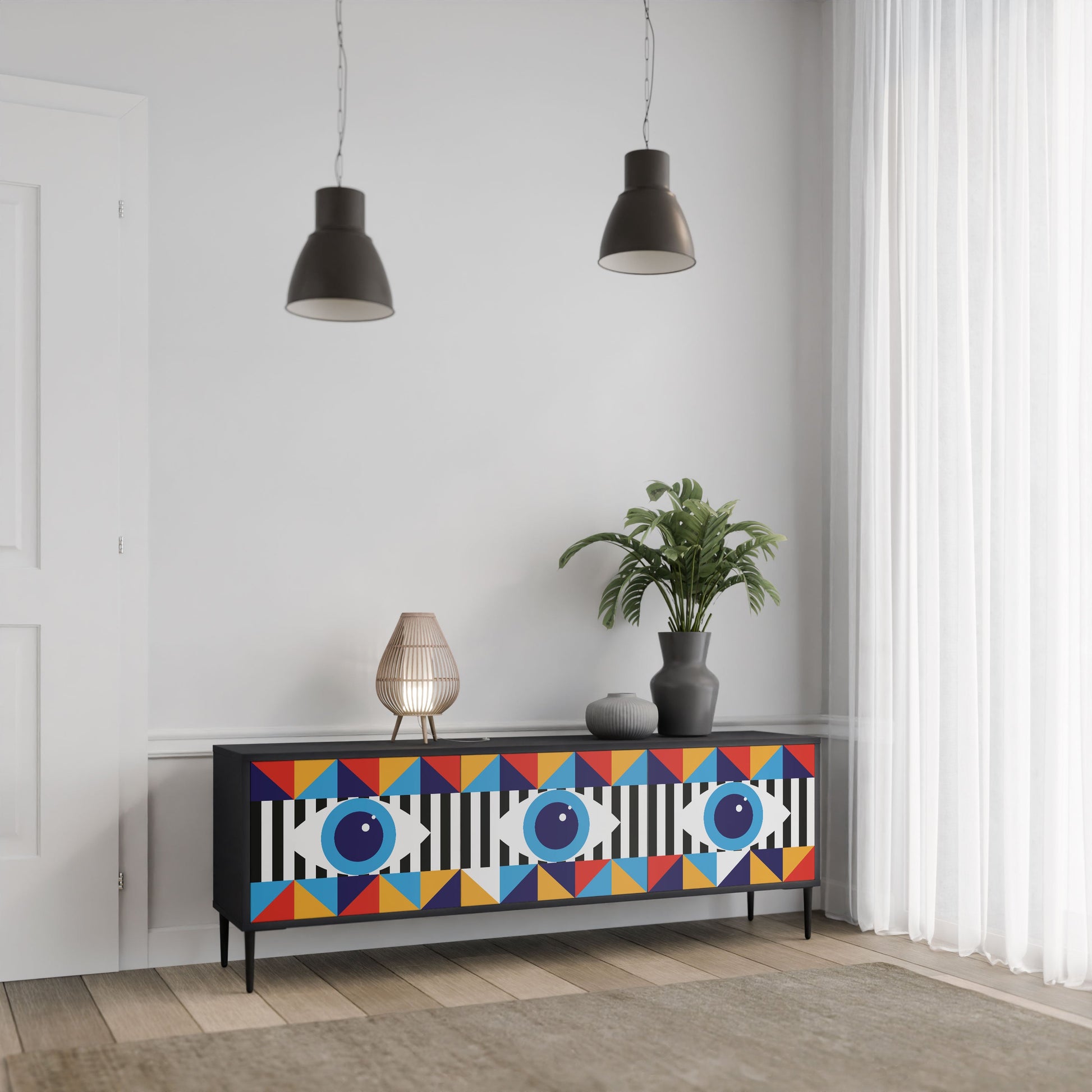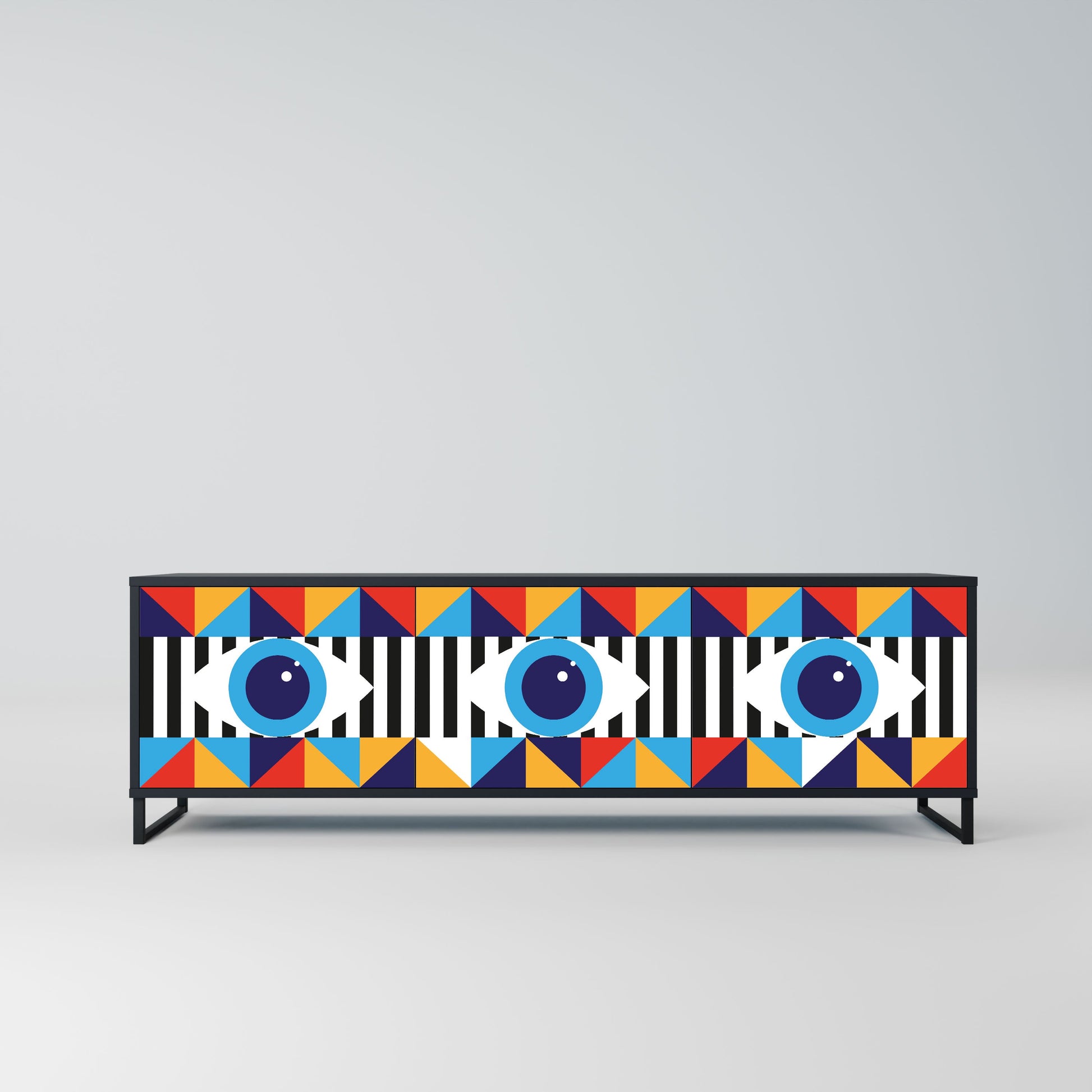 Il corpo nero del supporto crea un accento audace e moderno che si abbina magnificamente ad allestimenti industriali e minimalisti. I frontali con una stampa di design aggiungono carattere e unicità, rendendo questo pezzo non solo pratico ma anche un elemento decorativo di spicco.