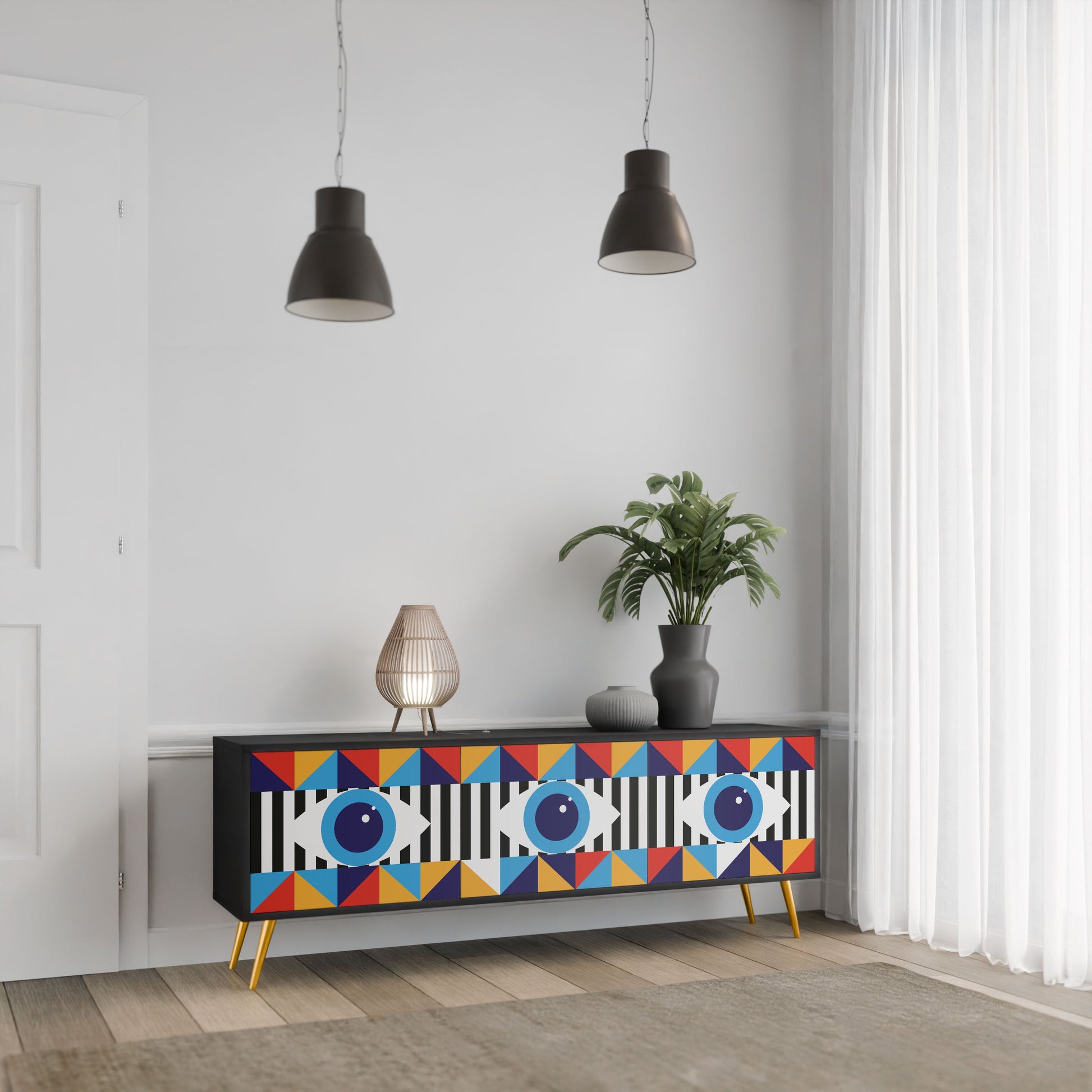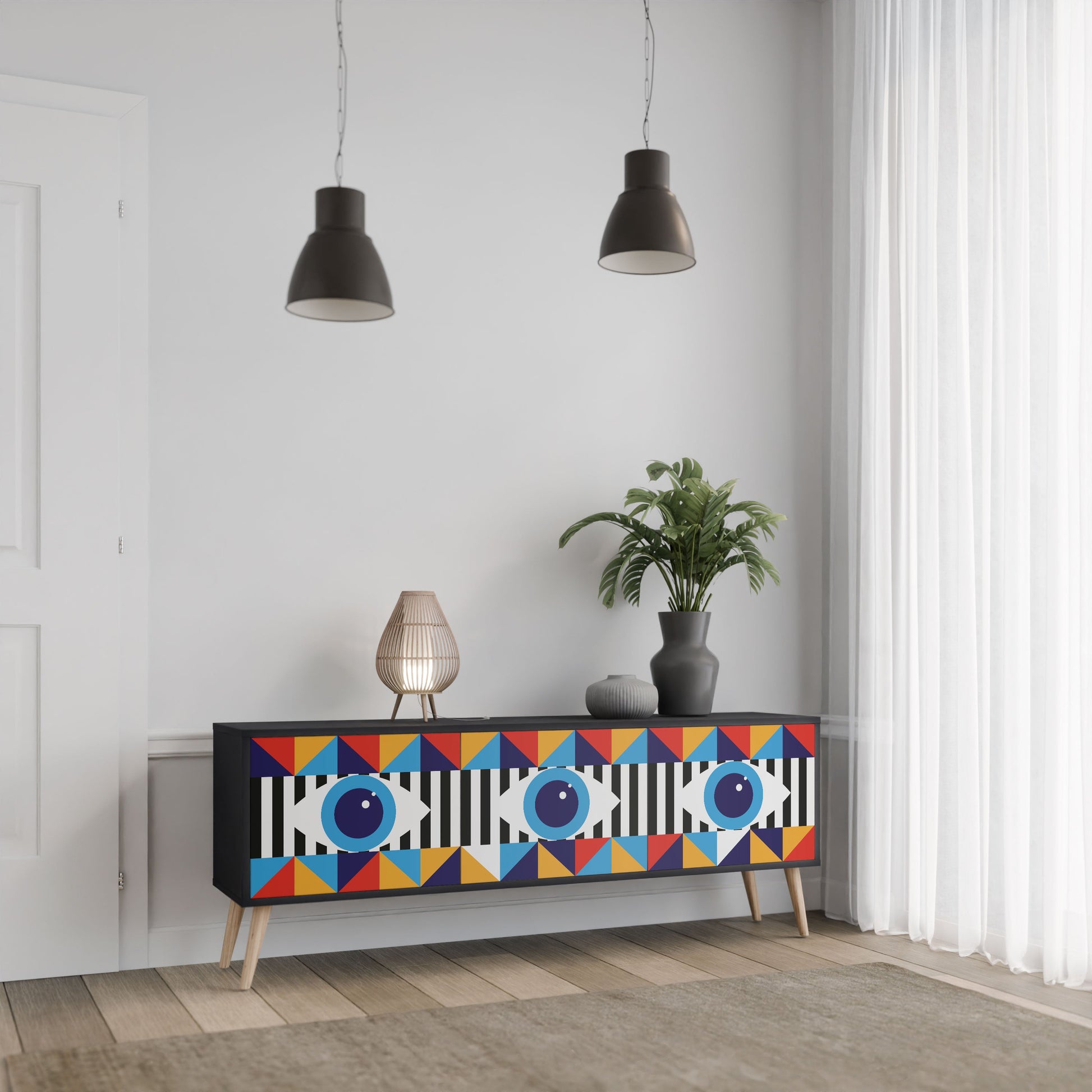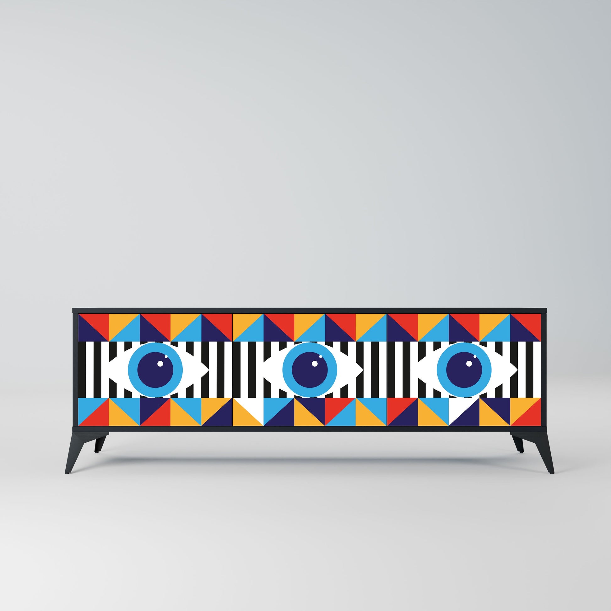 Il corpo nero del supporto crea un accento audace e moderno che si abbina magnificamente ad allestimenti industriali e minimalisti. I frontali con una stampa di design aggiungono carattere e unicità, rendendo questo pezzo non solo pratico ma anche un elemento decorativo di spicco.