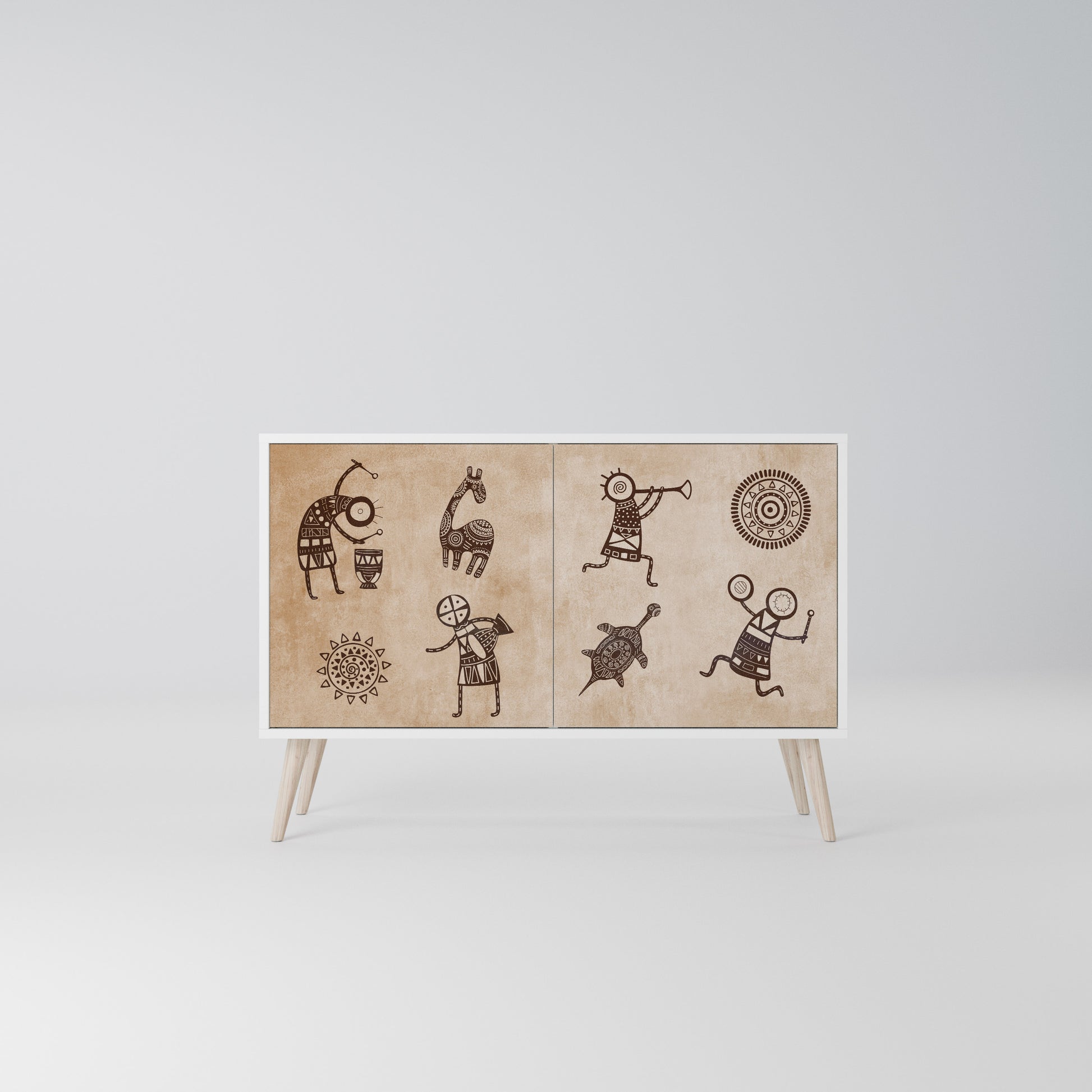 AFRICAN STYLE Madia a 2 Ante in Finitura Bianca