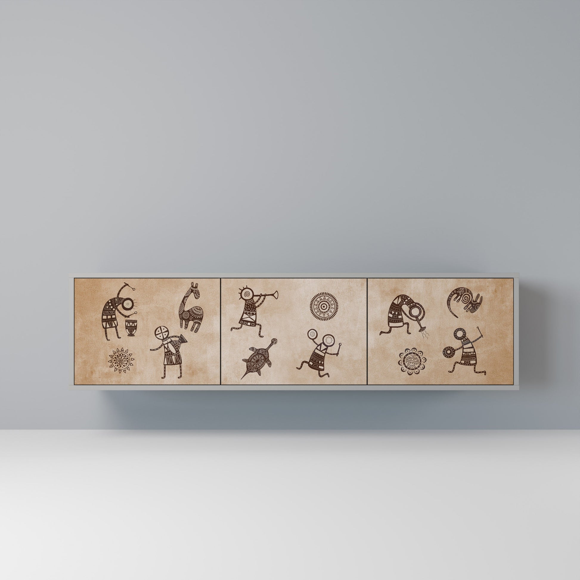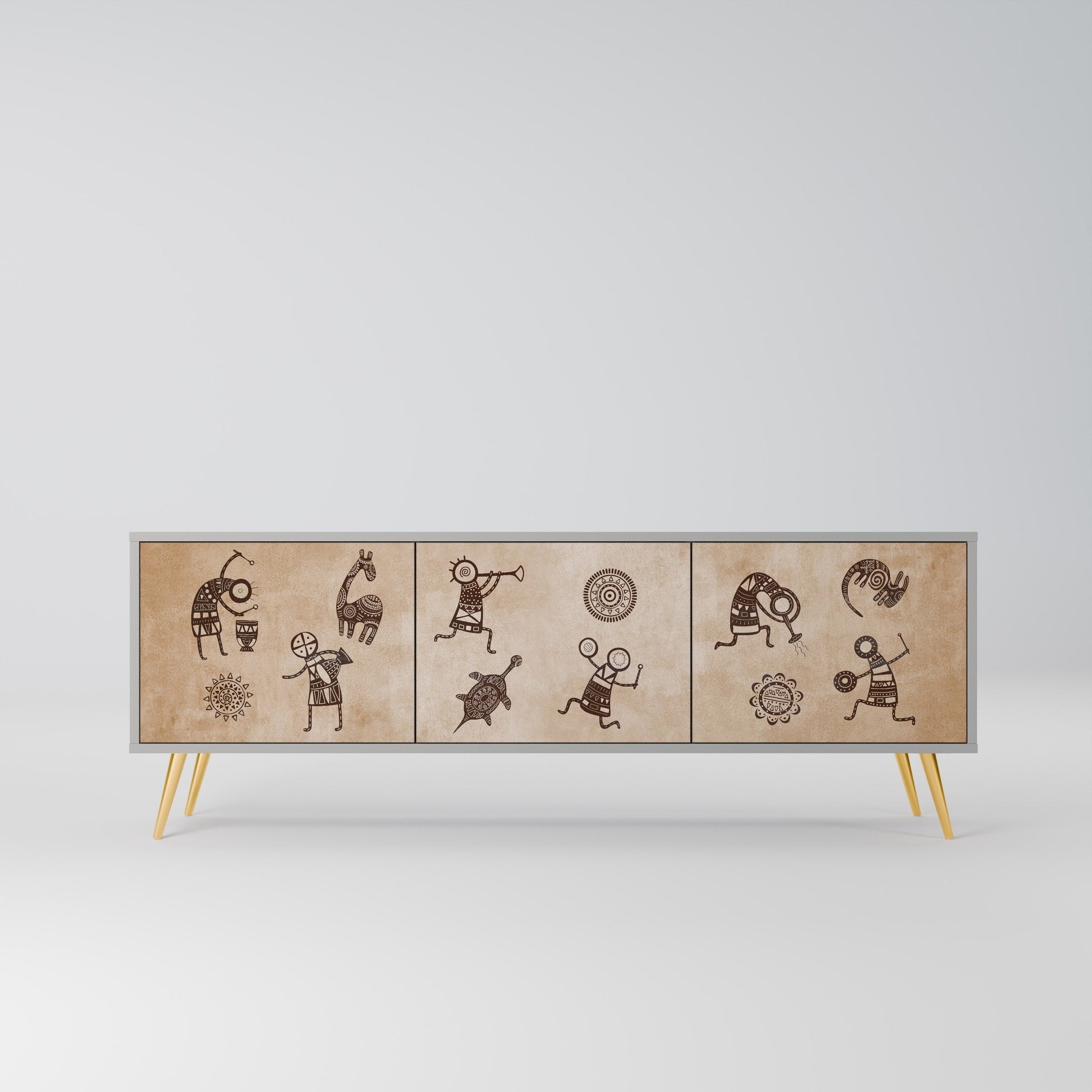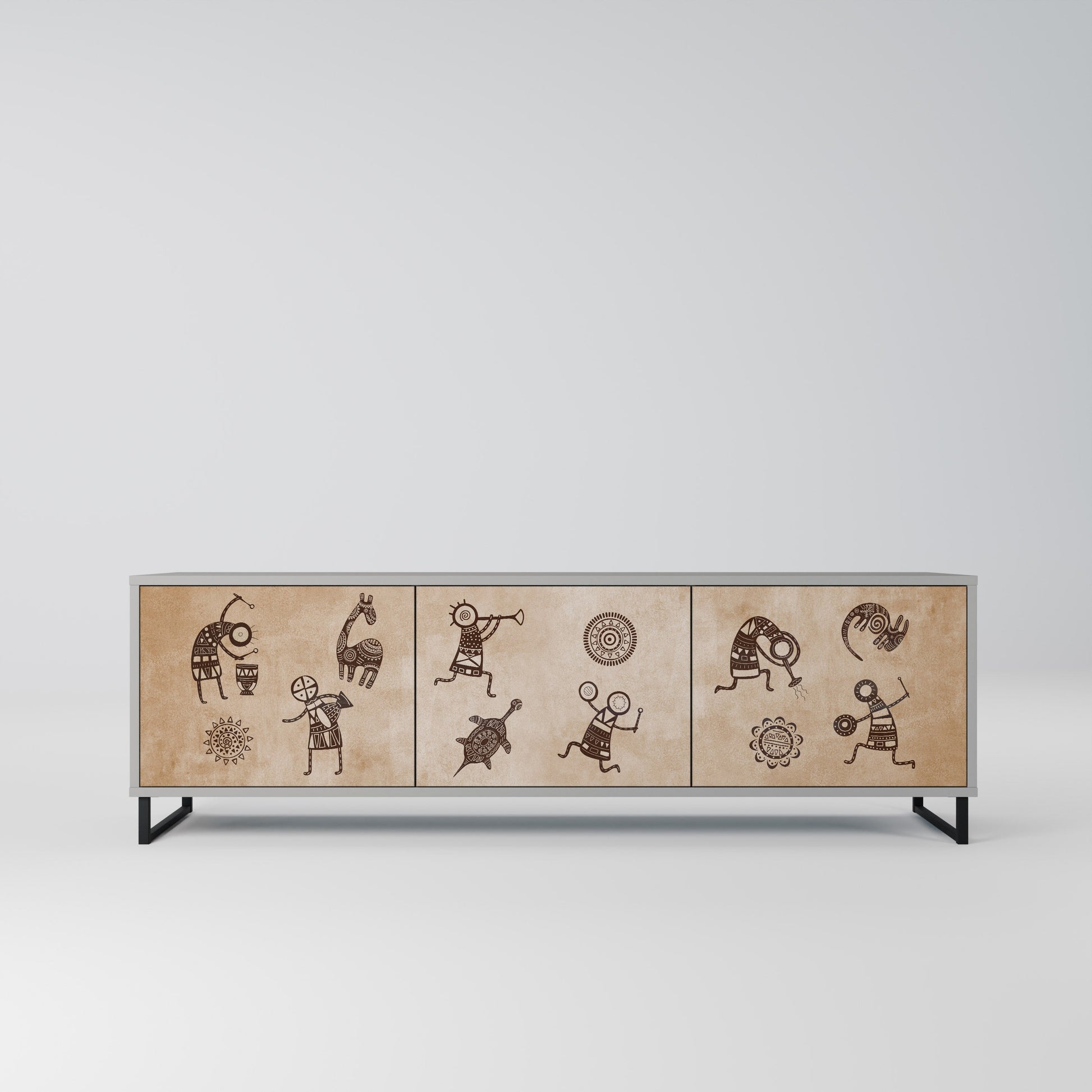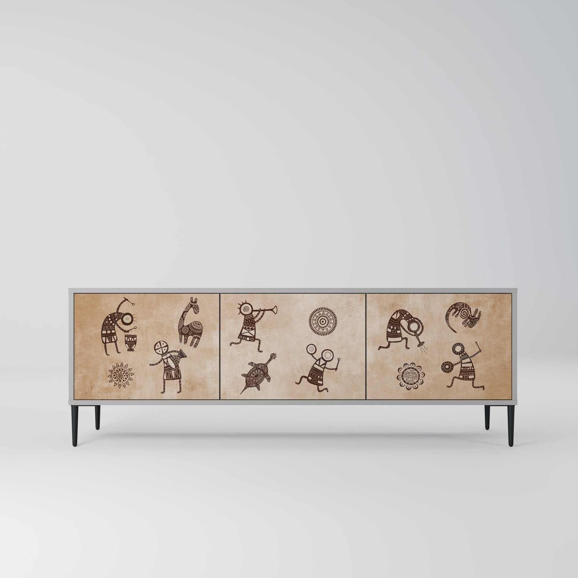 Mobile TV a 3 ante in stile africano con finitura grigia