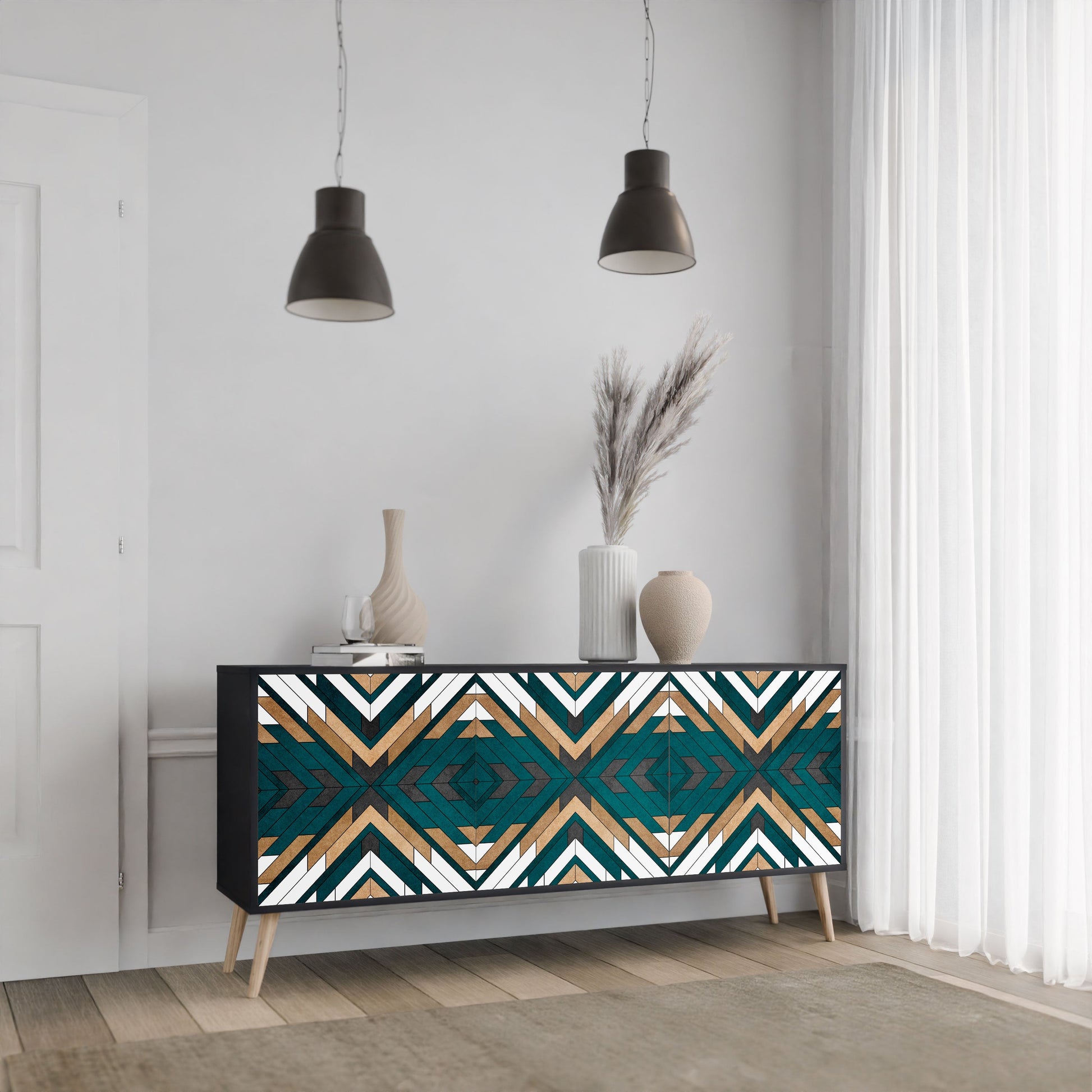 Credenza ARTISTIC GEOMETRY a 3 ante in finitura nera