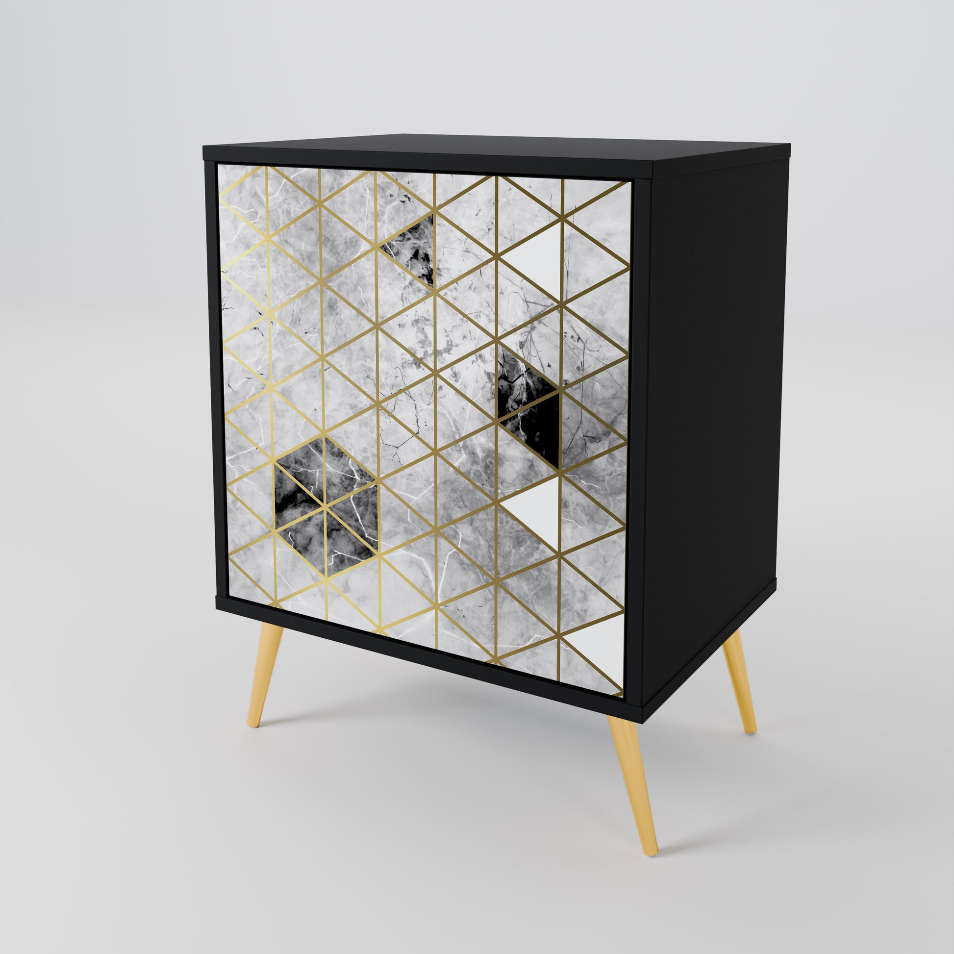 Questo mobile compatto ma straordinariamente elegante colpisce per il suo design minimalista, che si adatta perfettamente sia agli interni moderni che a quelli classici. Il corpo nero enfatizza il carattere audace del mobile, mentre i frontali con una stampa esclusiva aggiungono un tocco artistico.