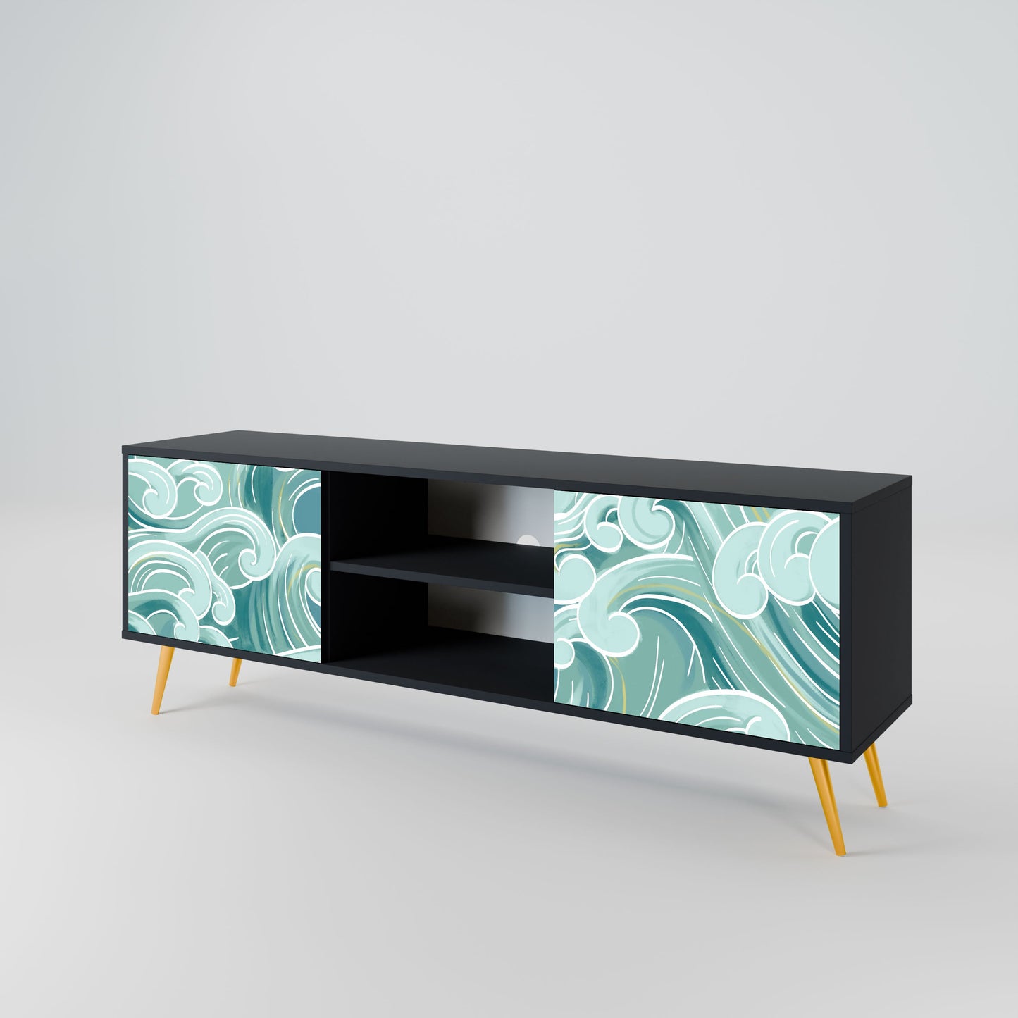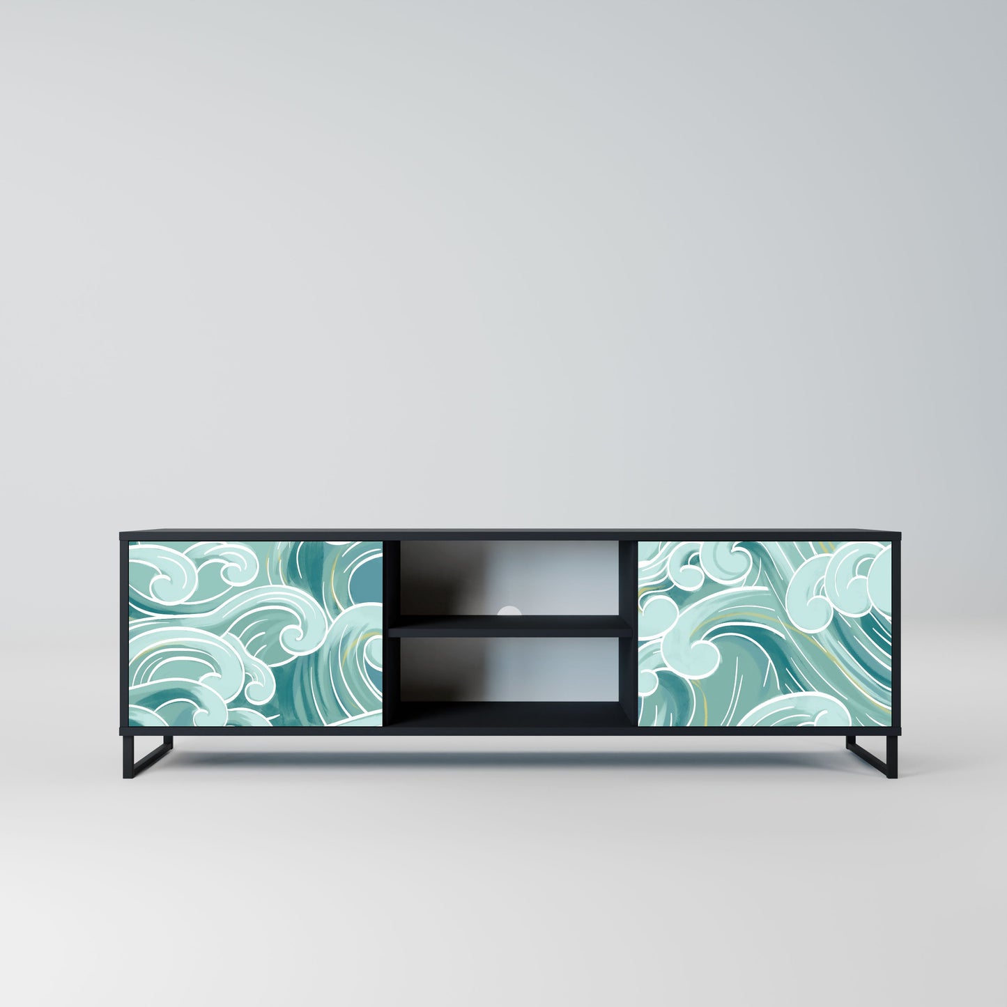 Il corpo nero conferisce al mobile TV un aspetto elegante e moderno, mentre i frontali con una stampa eccezionale attirano l'attenzione, rendendolo il punto focale di ogni stanza. L'interno spazioso offre spazio per dispositivi elettronici, cavi, telecomandi e altri accessori, aiutandoti a mantenere ordine e organizzazione.