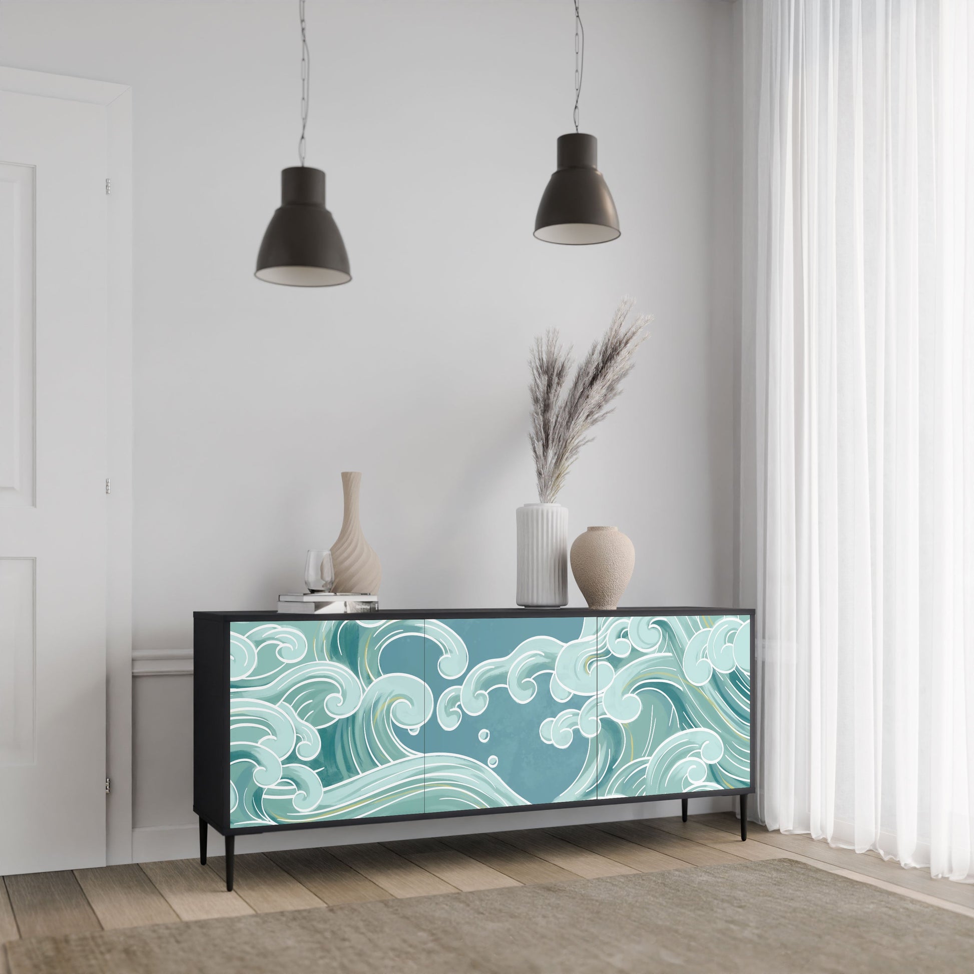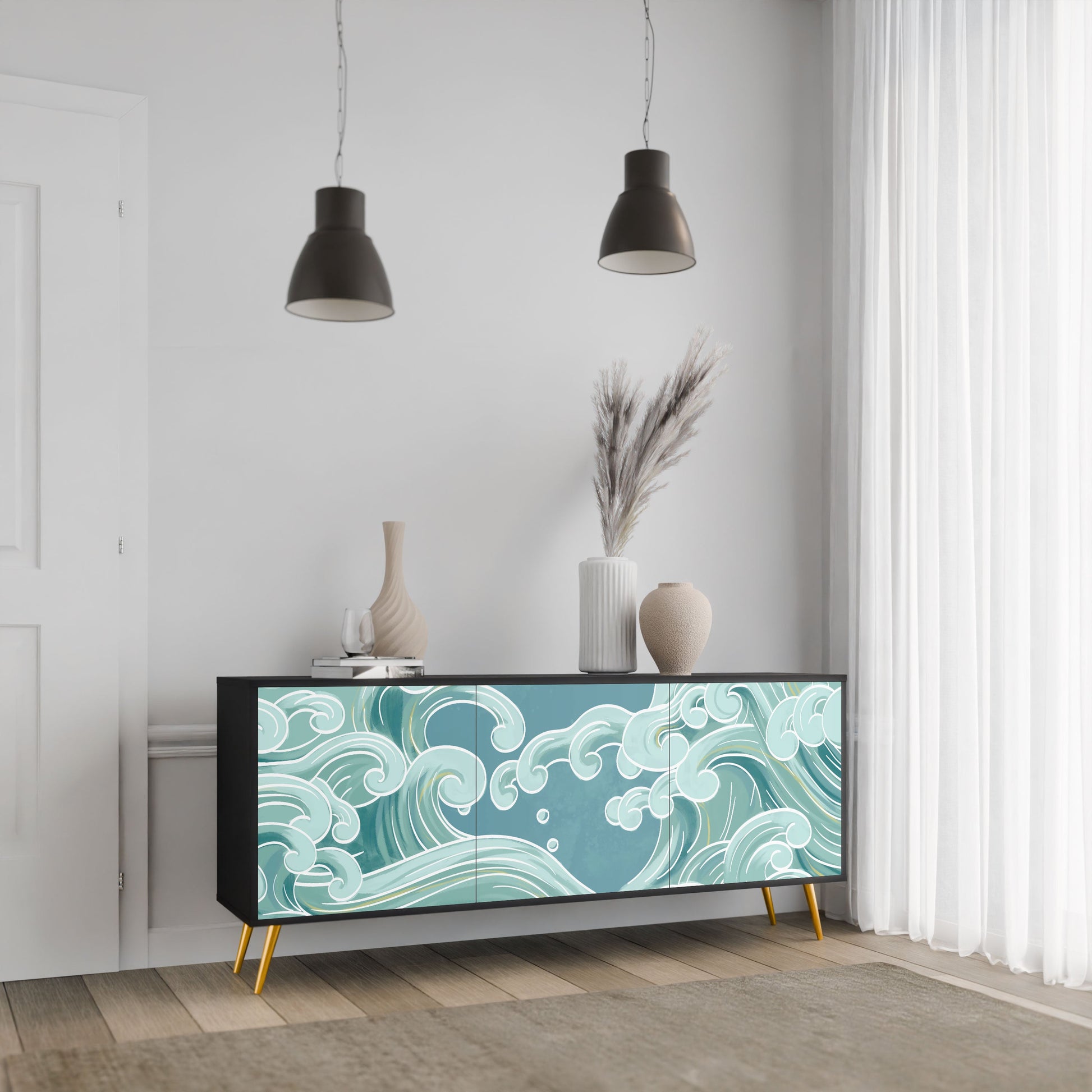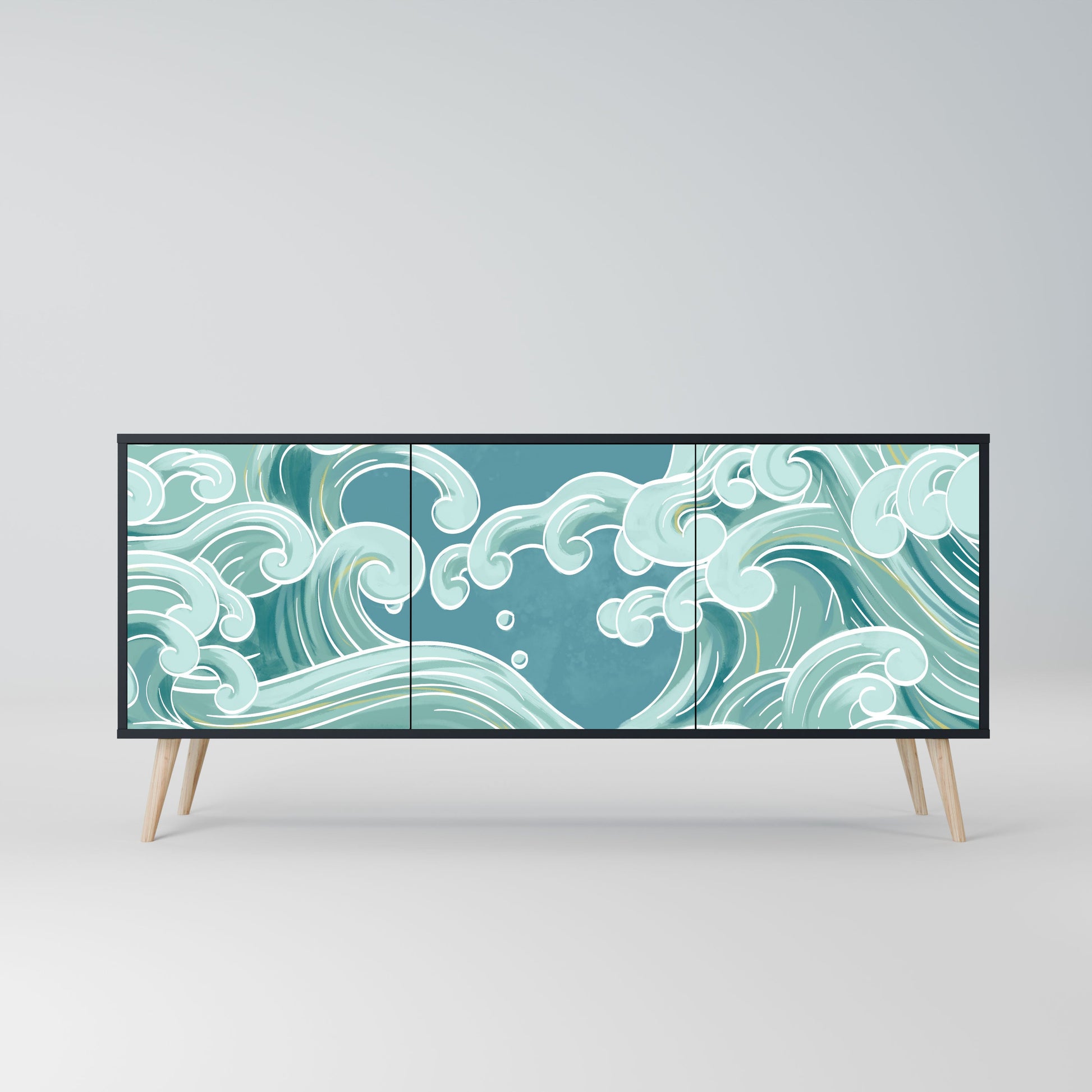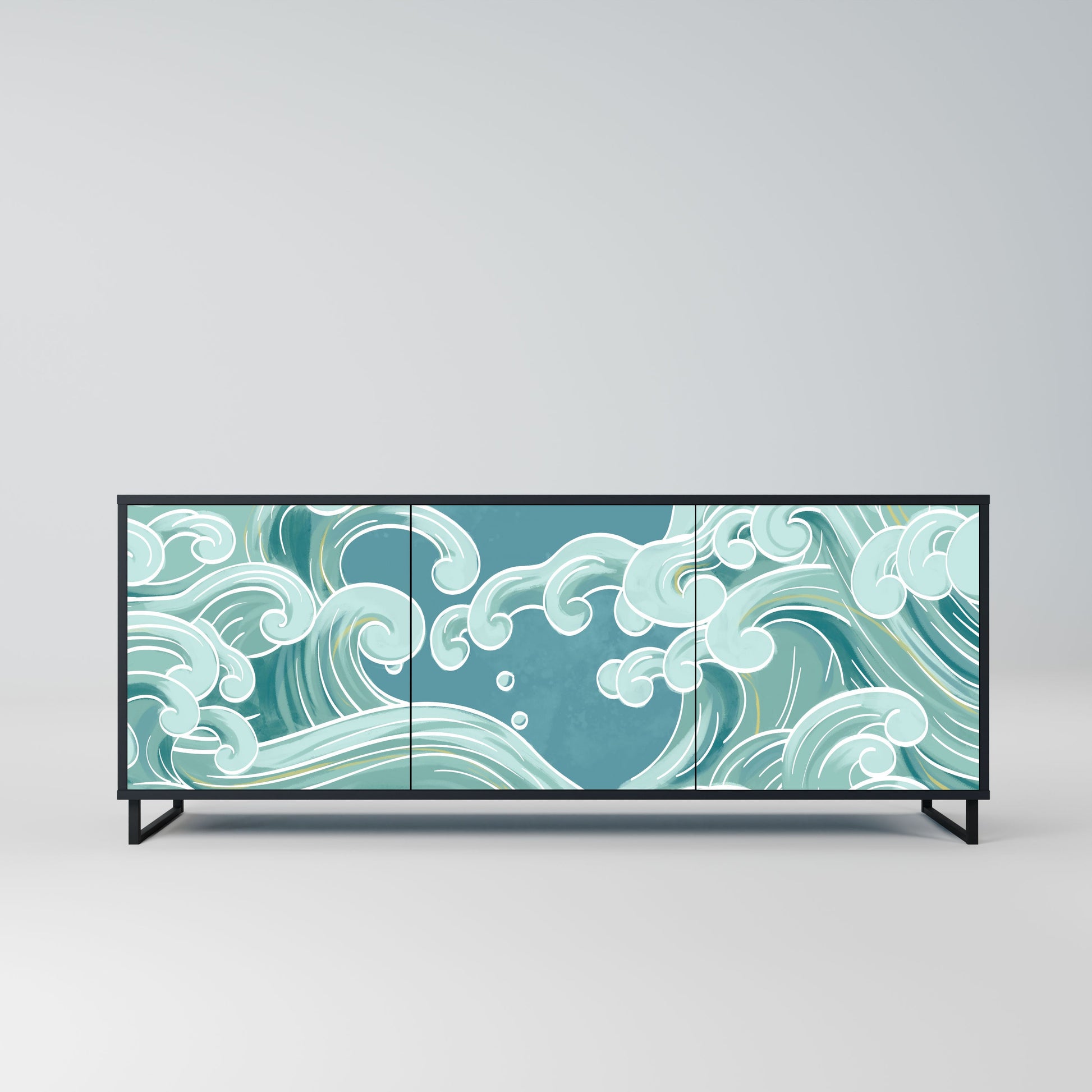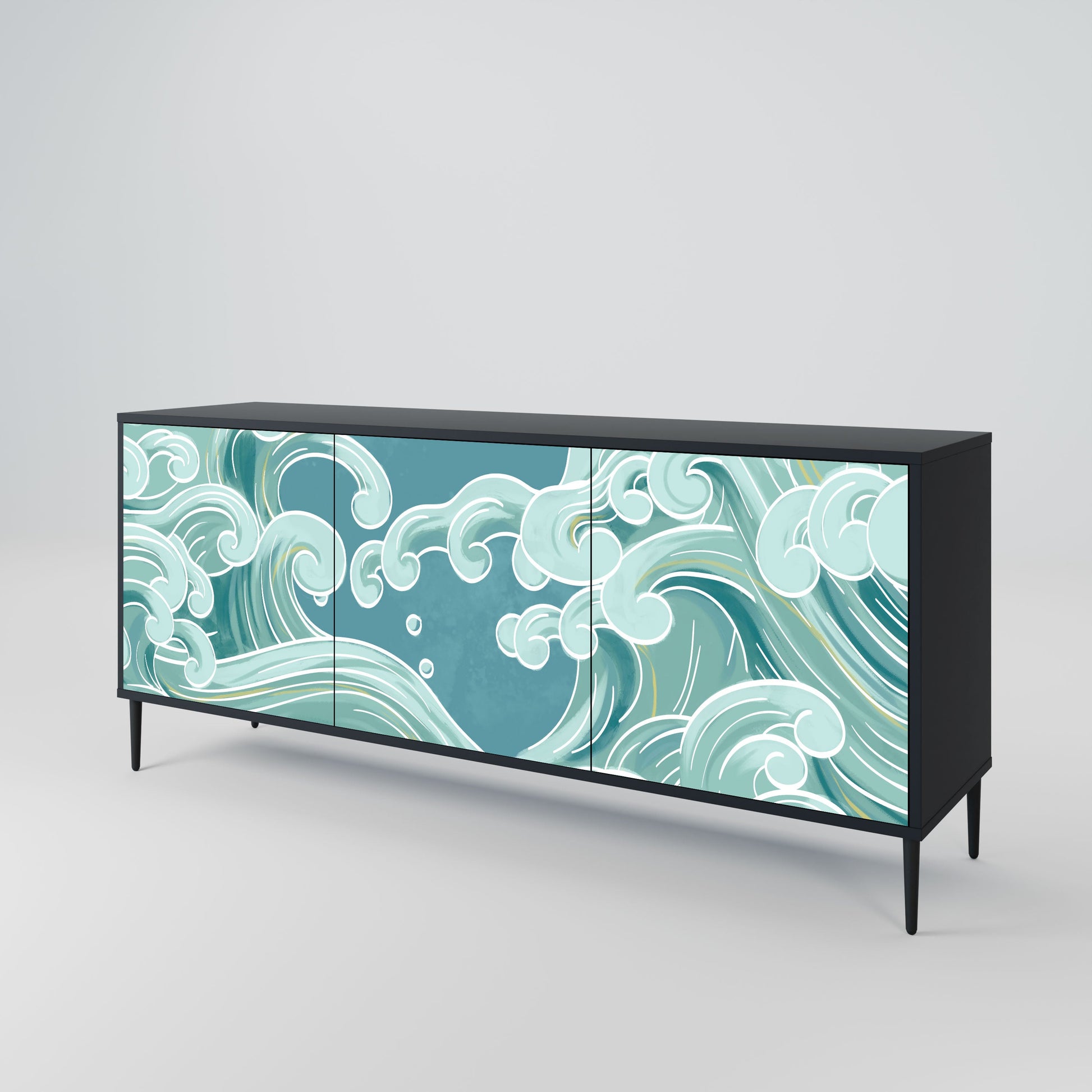 Eleganza e funzionalità in un unico mobile: la nostra credenza a 3 ante con corpo nero è la soluzione perfetta per gli amanti degli interni eleganti e moderni. Il corpo nero enfatizza il carattere audace del mobile, mentre i frontali con una stampa unica aggiungono un tocco artistico. Si adatta perfettamente al soggiorno, alla camera da letto o all'ufficio, completando sia gli arrangiamenti moderni che quelli industriali.