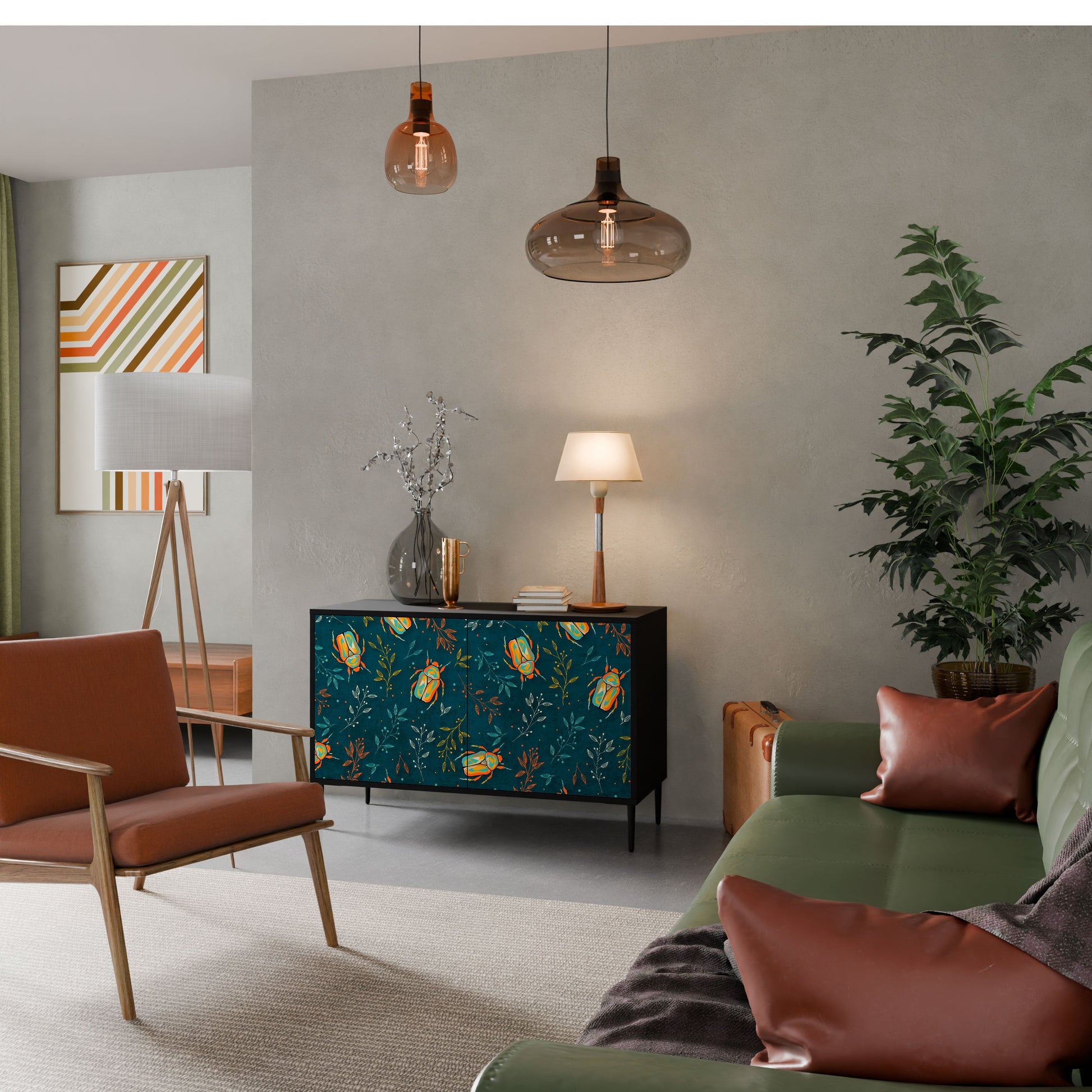 Credenza AUTUMN INSECTS a 2 ante in finitura nera