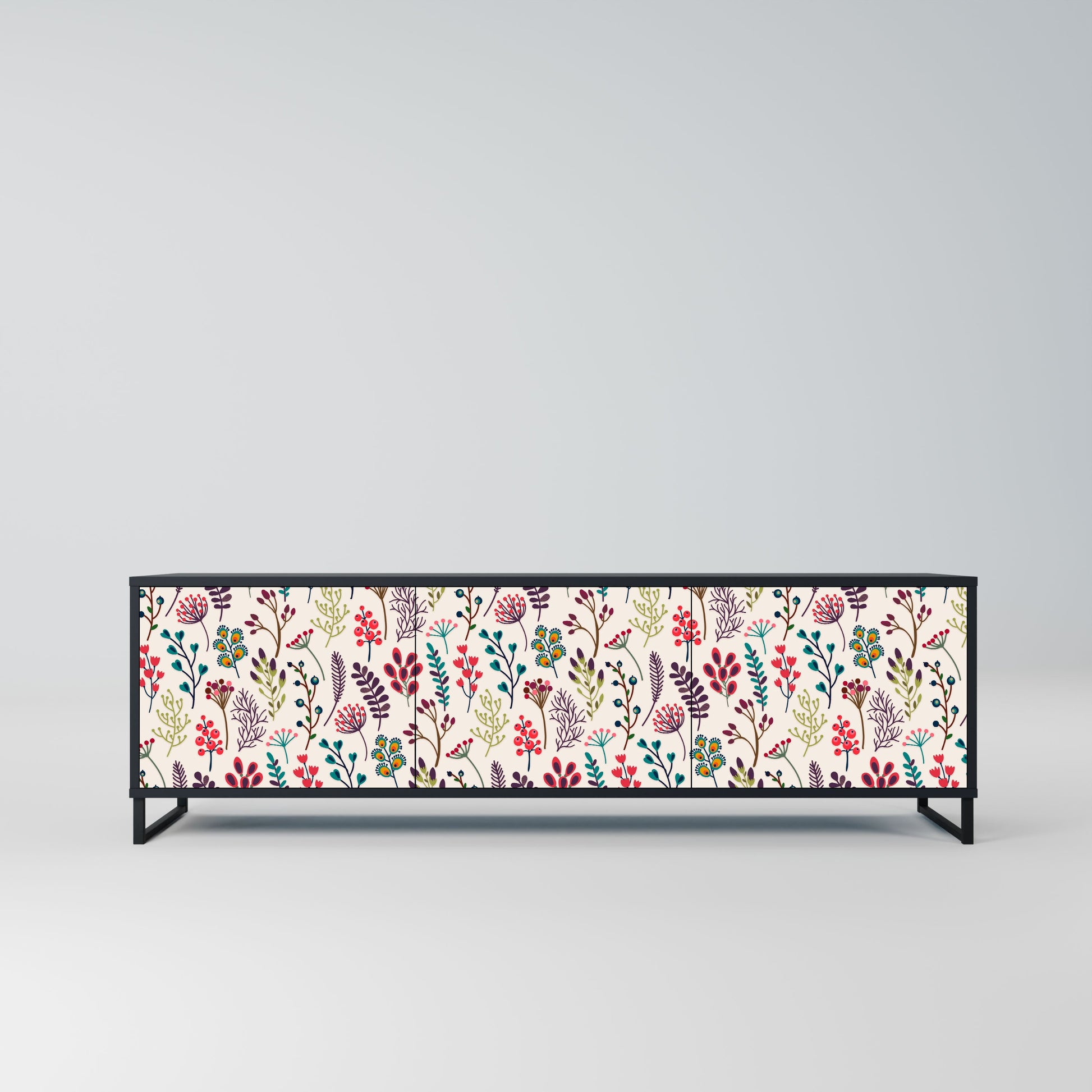 Il corpo nero del supporto crea un accento audace e moderno che si abbina magnificamente ad allestimenti industriali e minimalisti. I frontali con una stampa di design aggiungono carattere e unicità, rendendo questo pezzo non solo pratico ma anche un elemento decorativo di spicco.