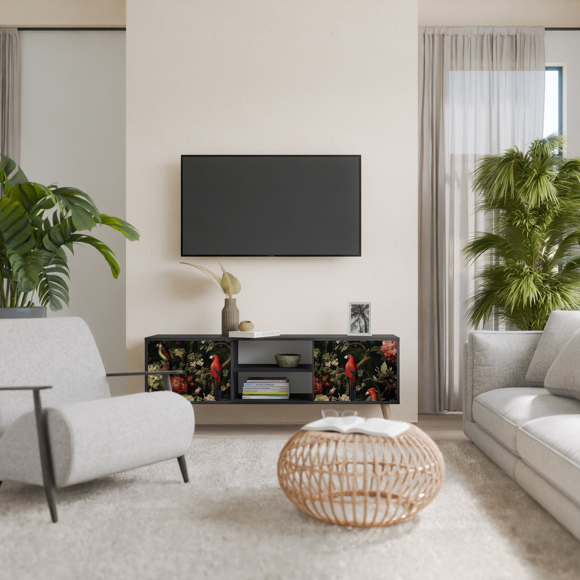 Mobile TV AVIAN GREENERY a 2 ante con finitura nera