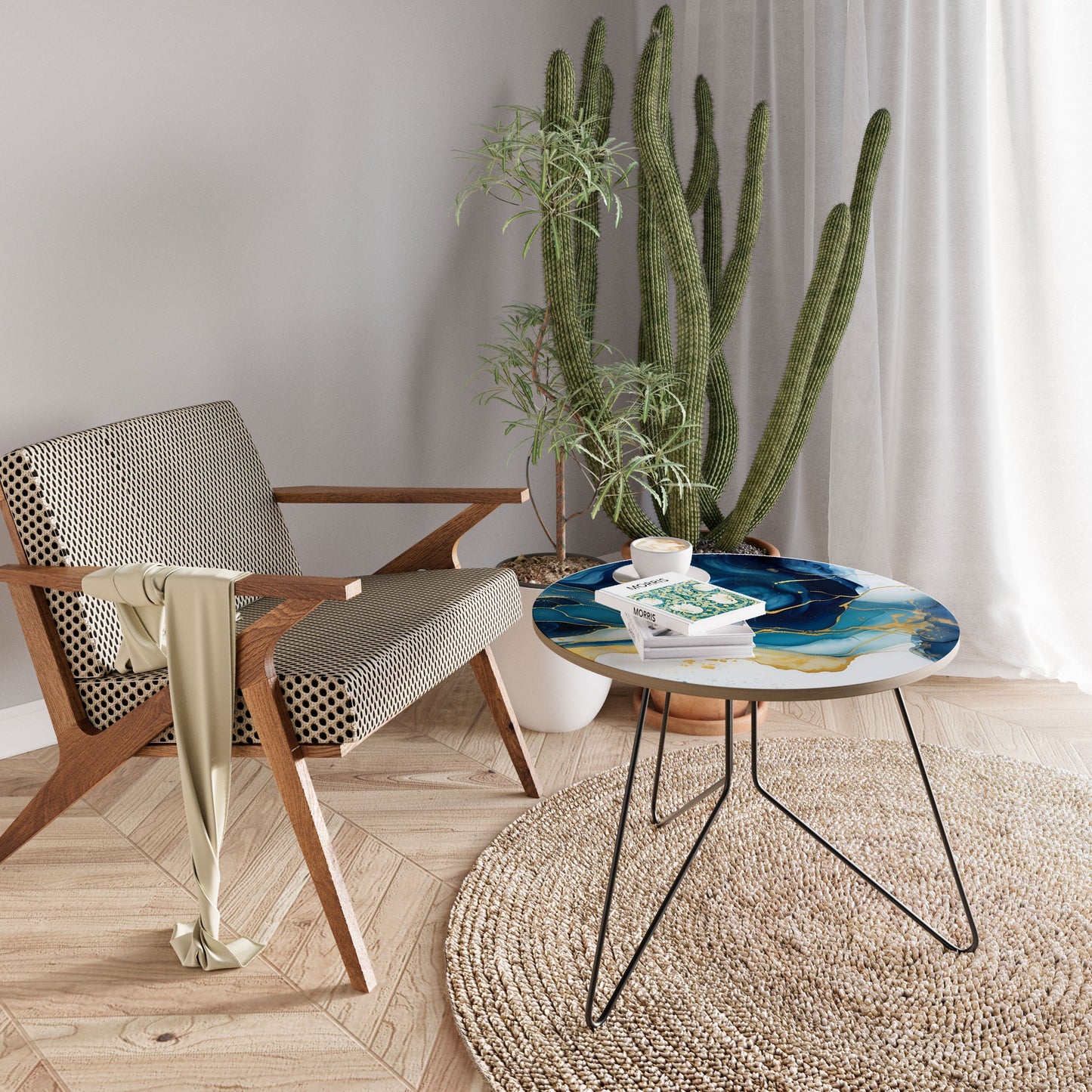 Il piano del tavolo presenta un motivo stampato di alta qualità, che aggiunge un tocco artistico distintivo al tuo spazio. Realizzato in resistente truciolato rivestito in laminato, garantisce un utilizzo duraturo e resistenza all'usura quotidiana.