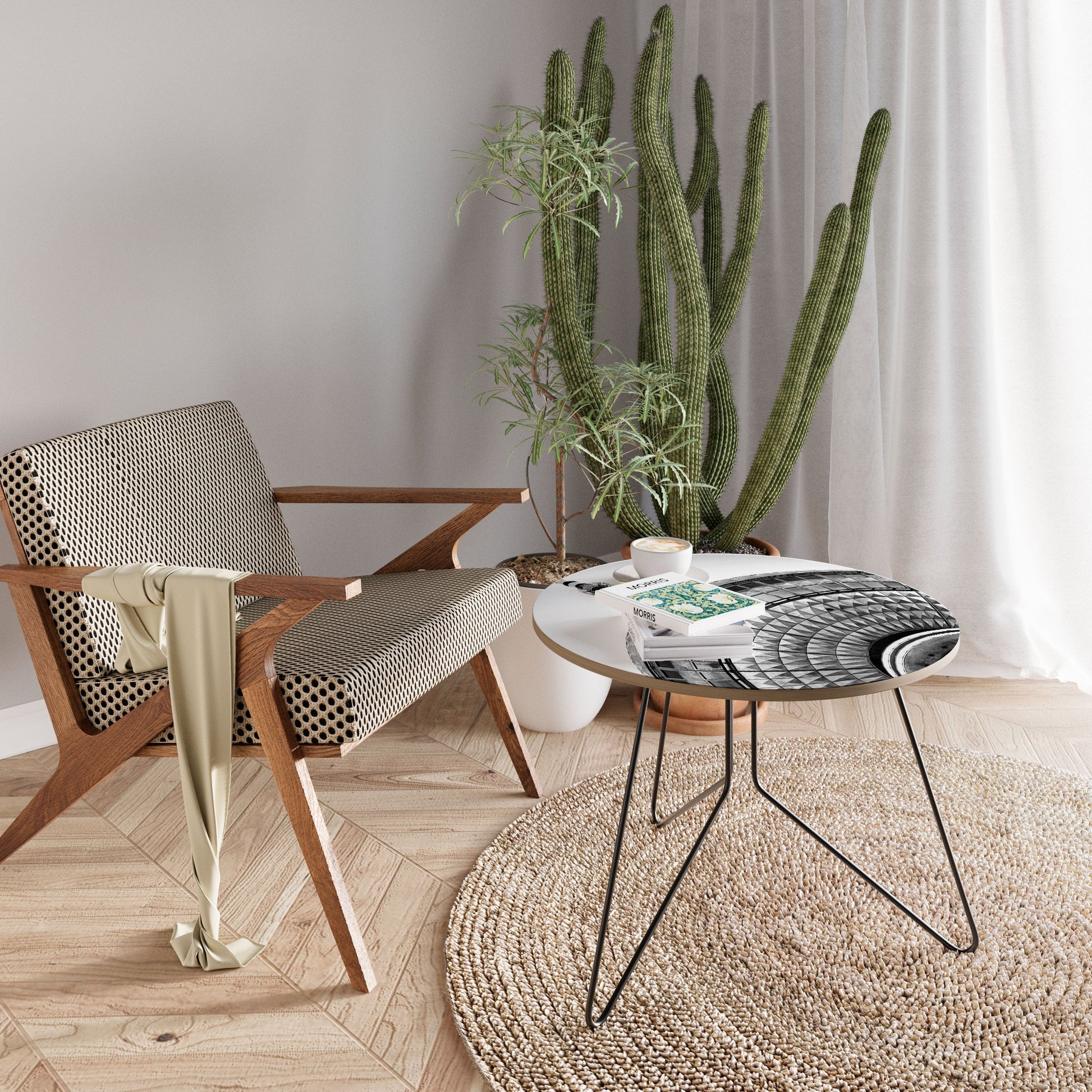 Il piano del tavolo presenta un motivo stampato di alta qualità, che aggiunge un tocco artistico distintivo al tuo spazio. Realizzato in resistente truciolato rivestito in laminato, garantisce un utilizzo duraturo e resistenza all'usura quotidiana.