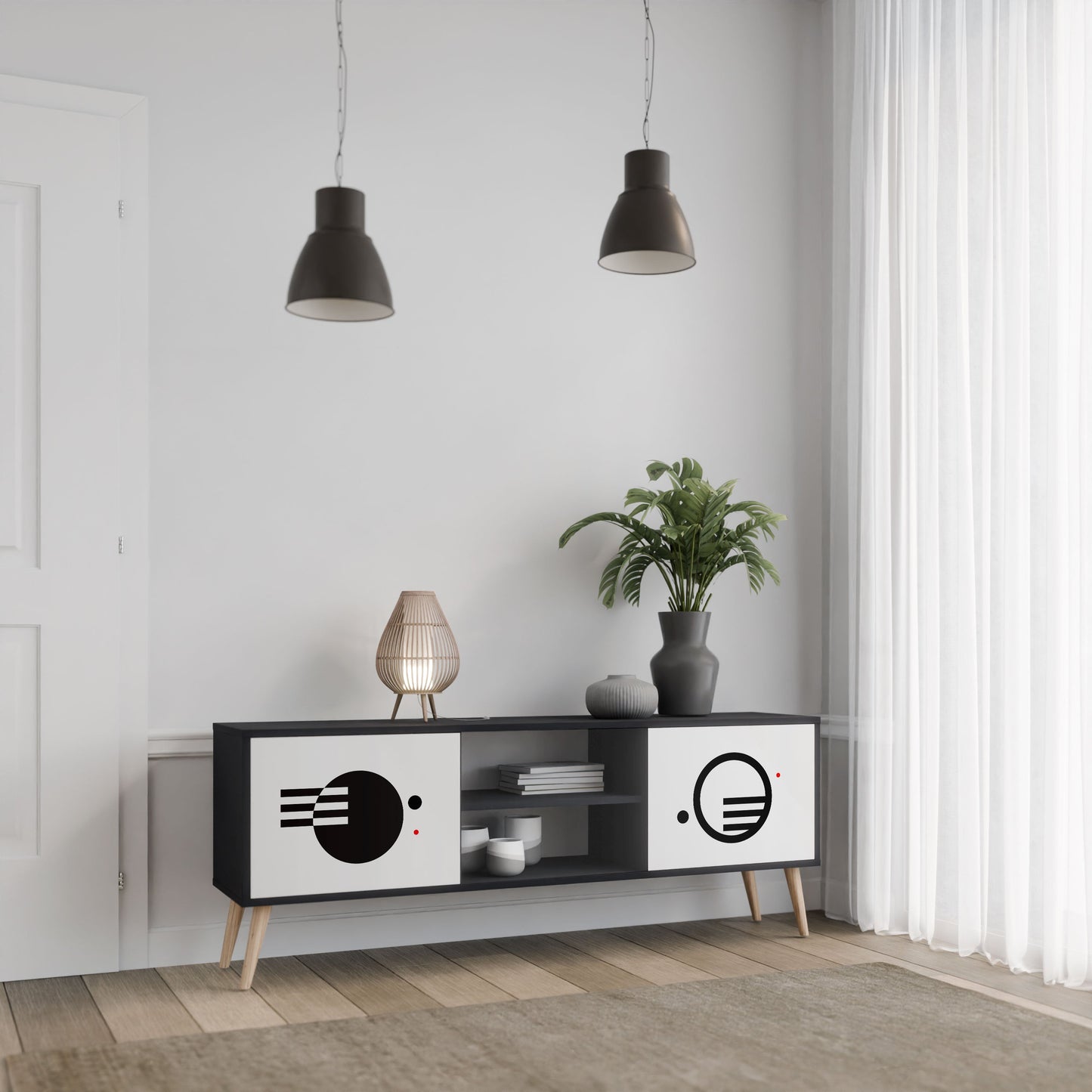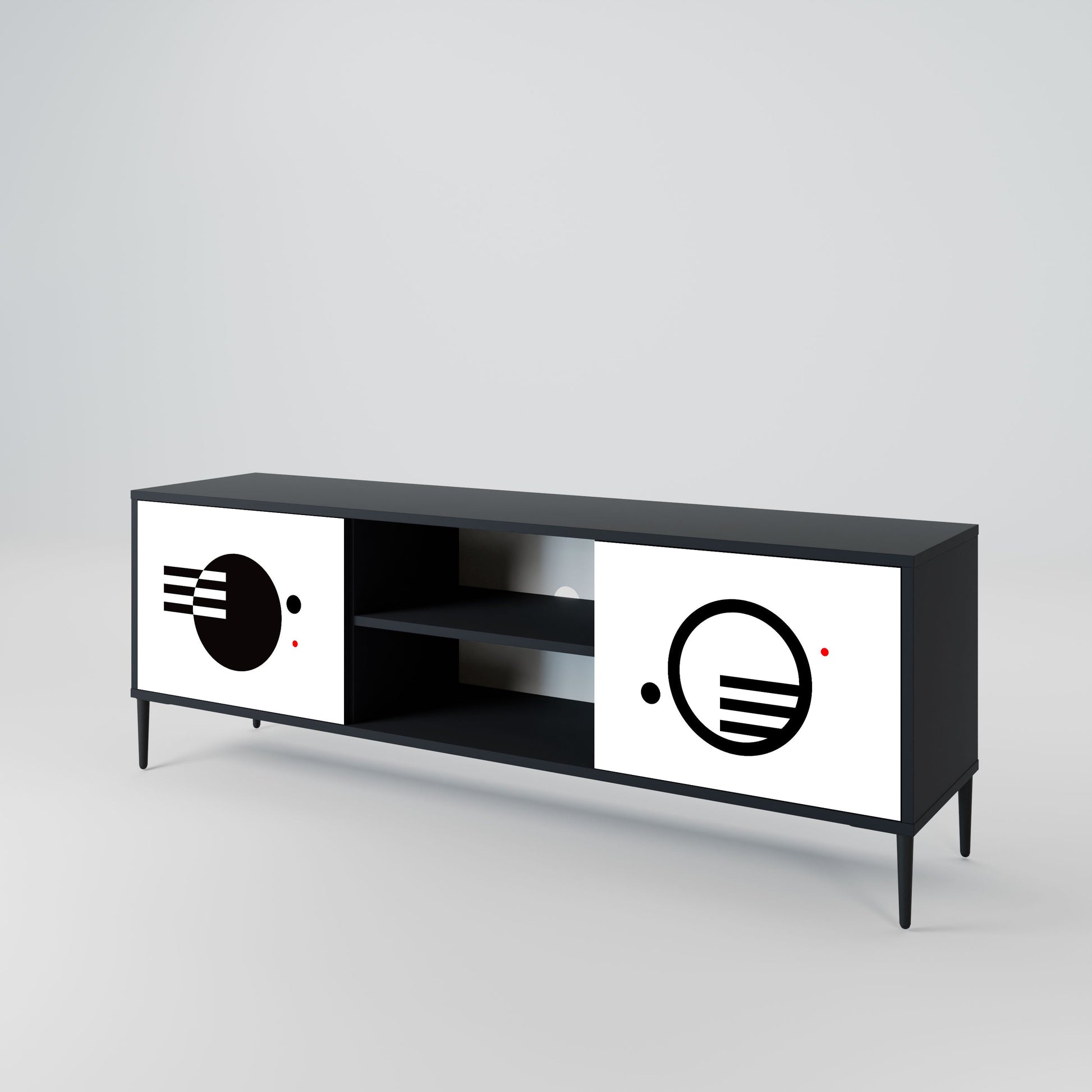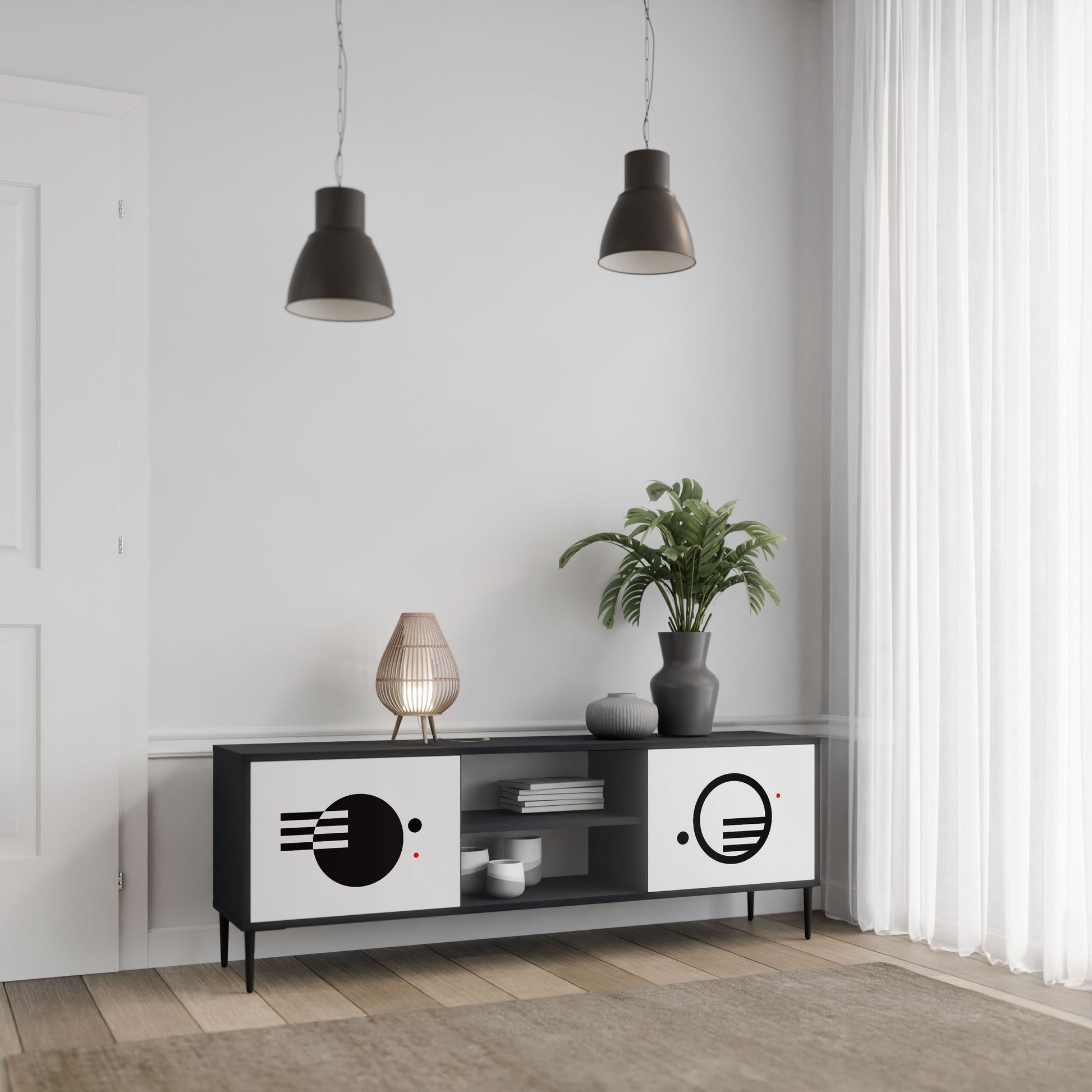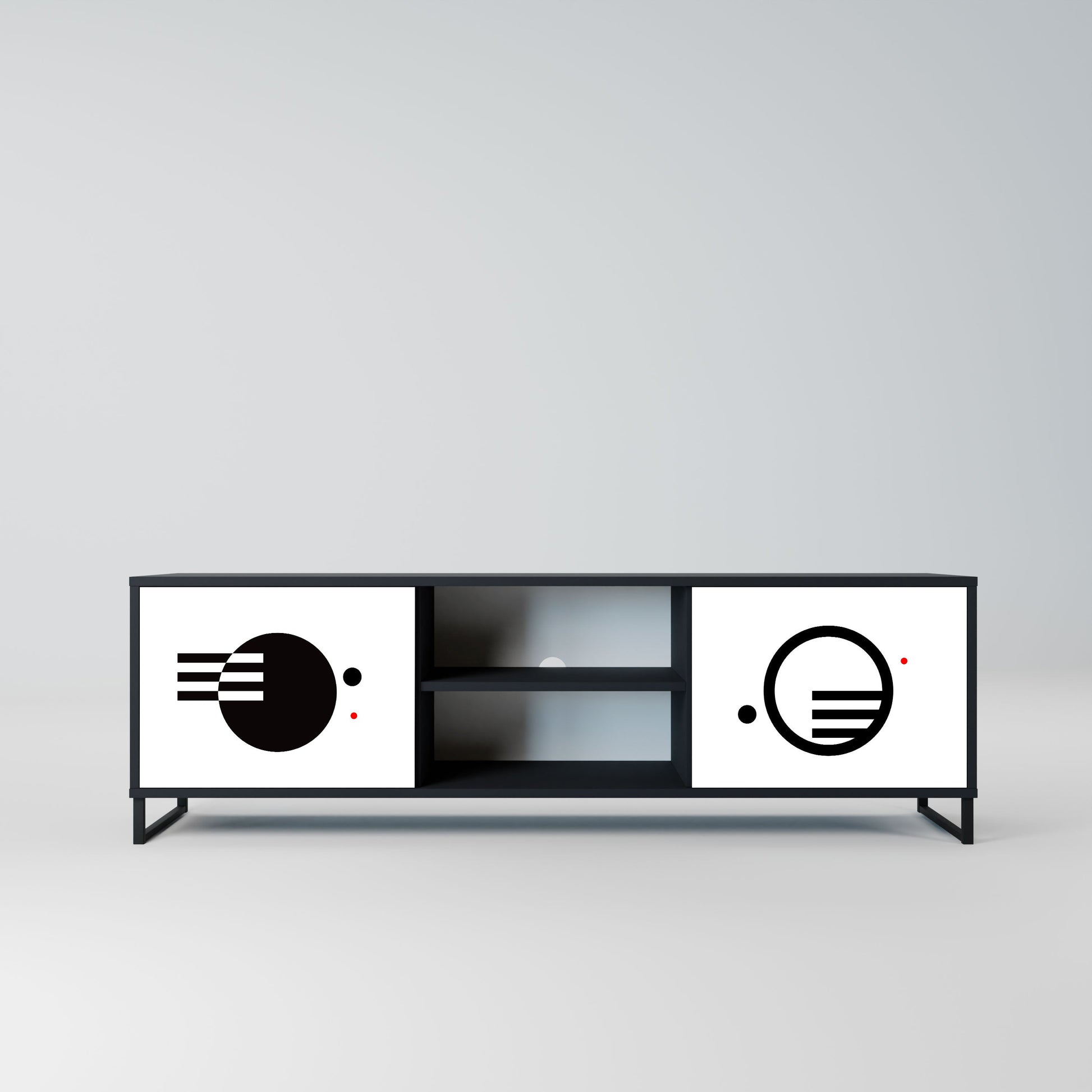 Il corpo nero conferisce al mobile TV un aspetto elegante e moderno, mentre i frontali con una stampa eccezionale attirano l'attenzione, rendendolo il punto focale di ogni stanza. L'interno spazioso offre spazio per dispositivi elettronici, cavi, telecomandi e altri accessori, aiutandoti a mantenere ordine e organizzazione.