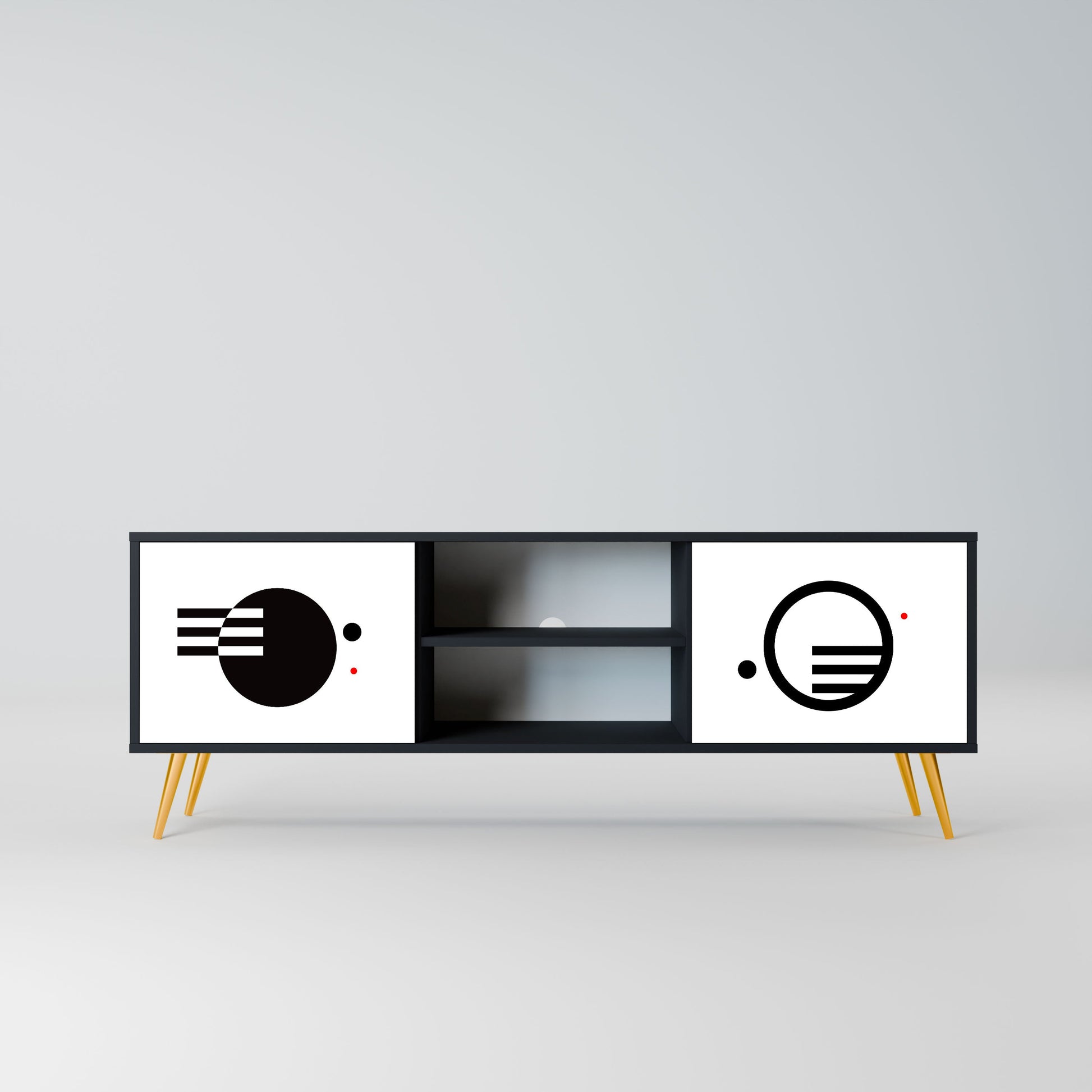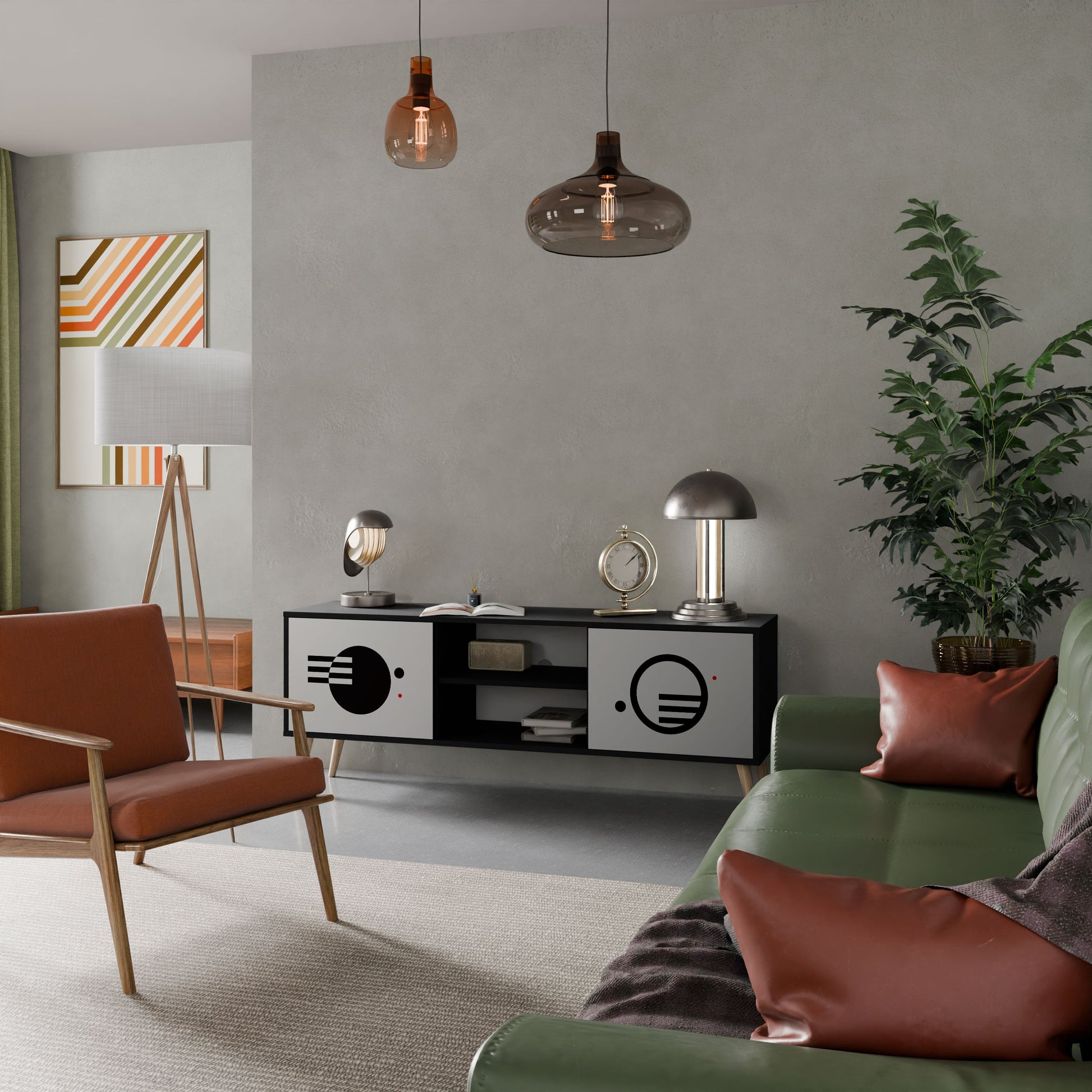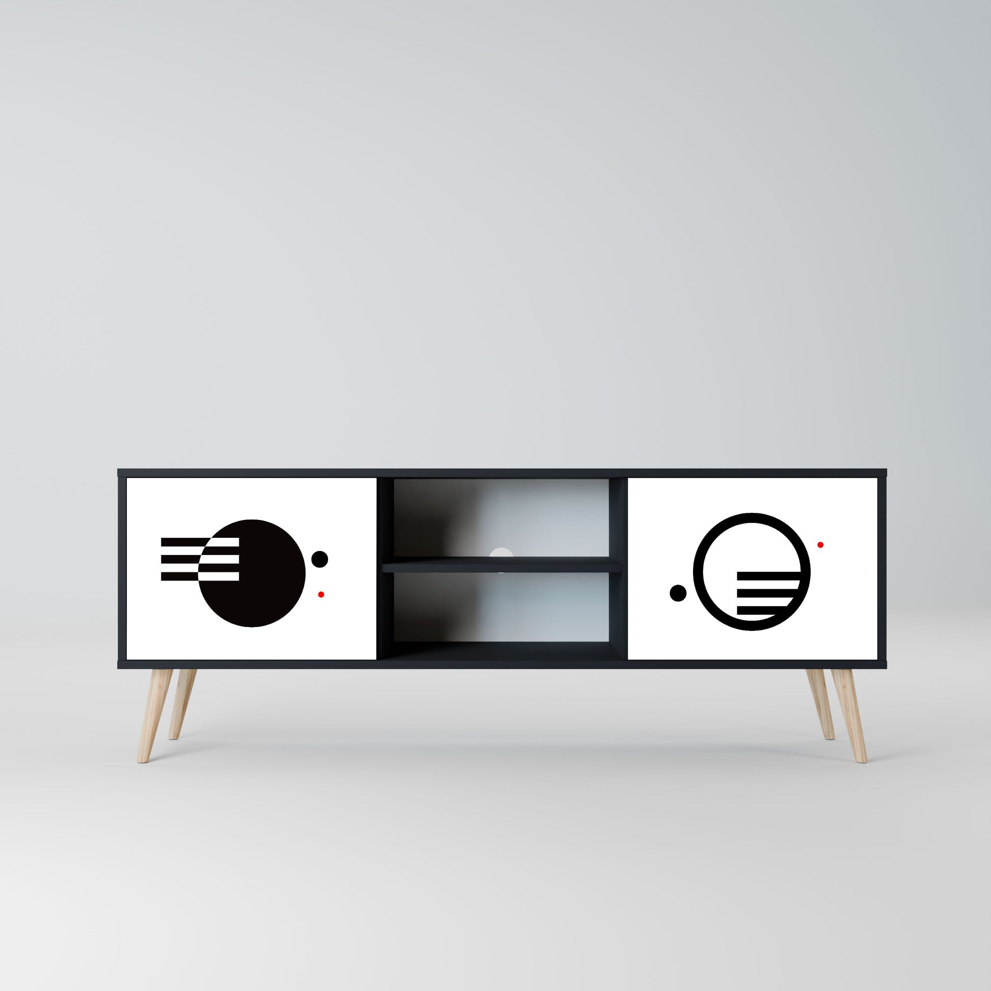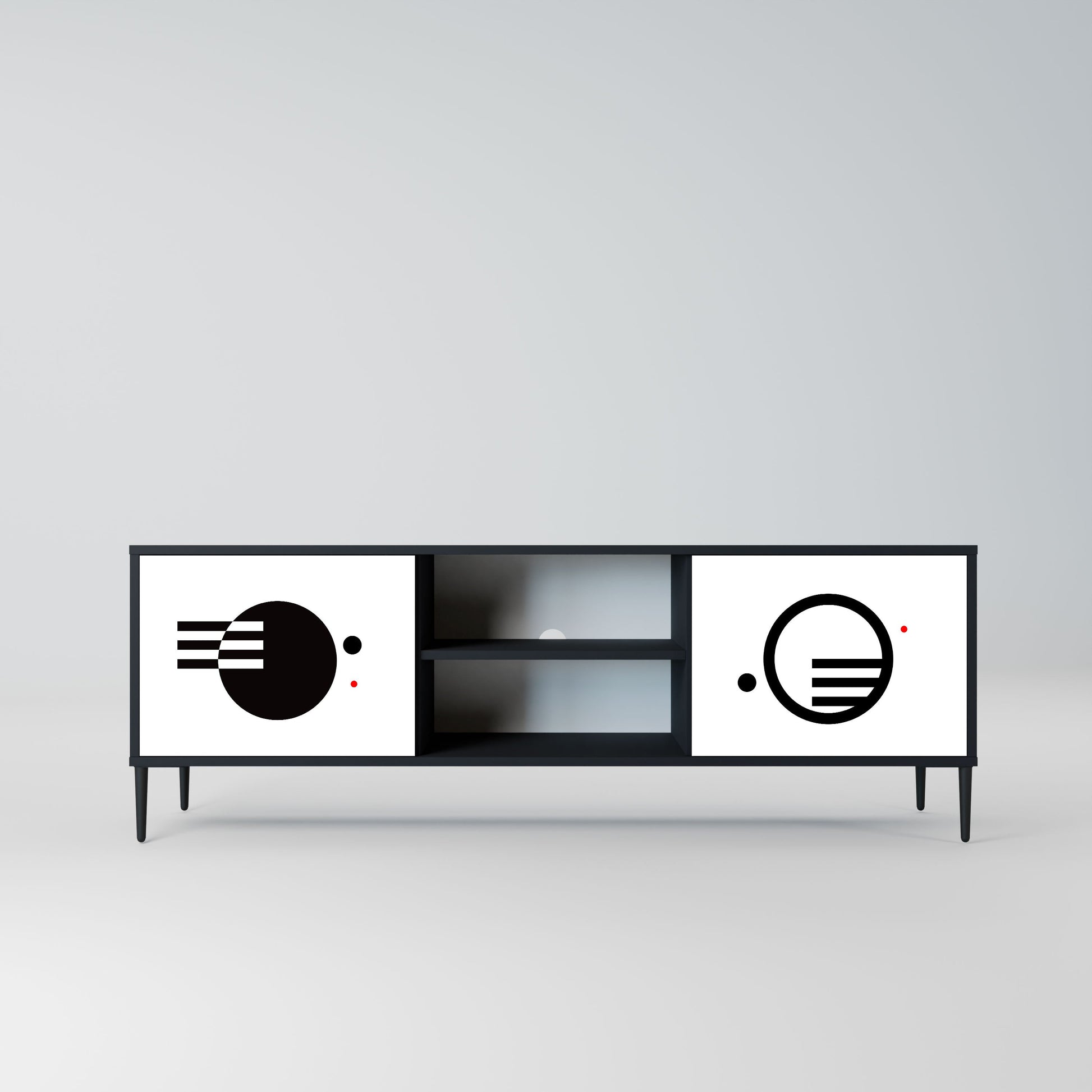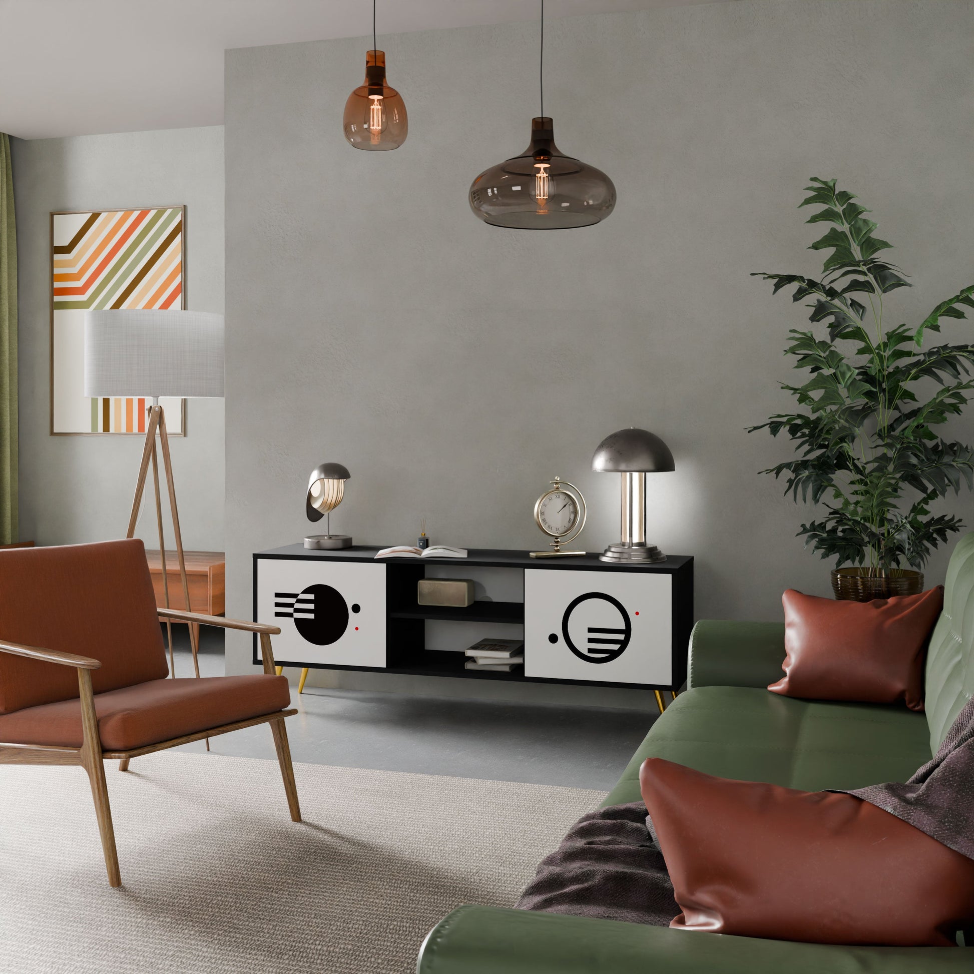 Il corpo nero conferisce al mobile TV un aspetto elegante e moderno, mentre i frontali con una stampa eccezionale attirano l'attenzione, rendendolo il punto focale di ogni stanza. L'interno spazioso offre spazio per dispositivi elettronici, cavi, telecomandi e altri accessori, aiutandoti a mantenere ordine e organizzazione.