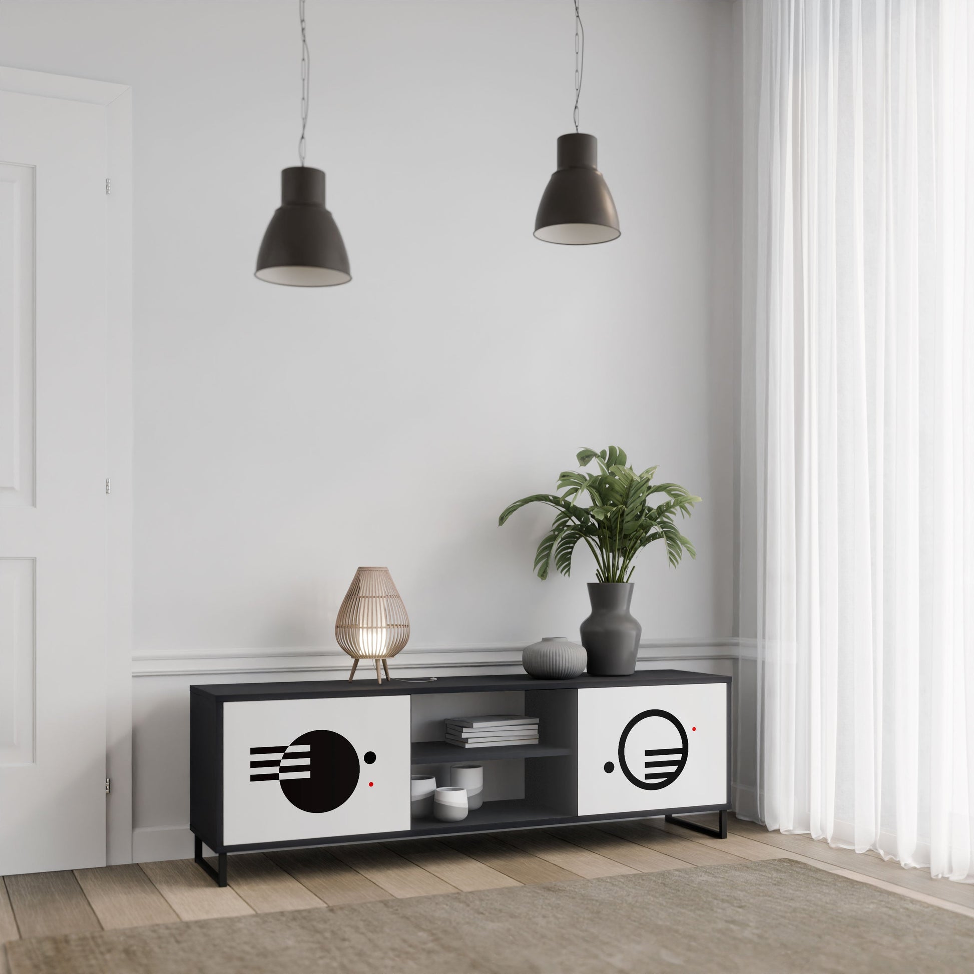 Mobile TV a 2 ante con combinazione di bianco e nero e finitura nera