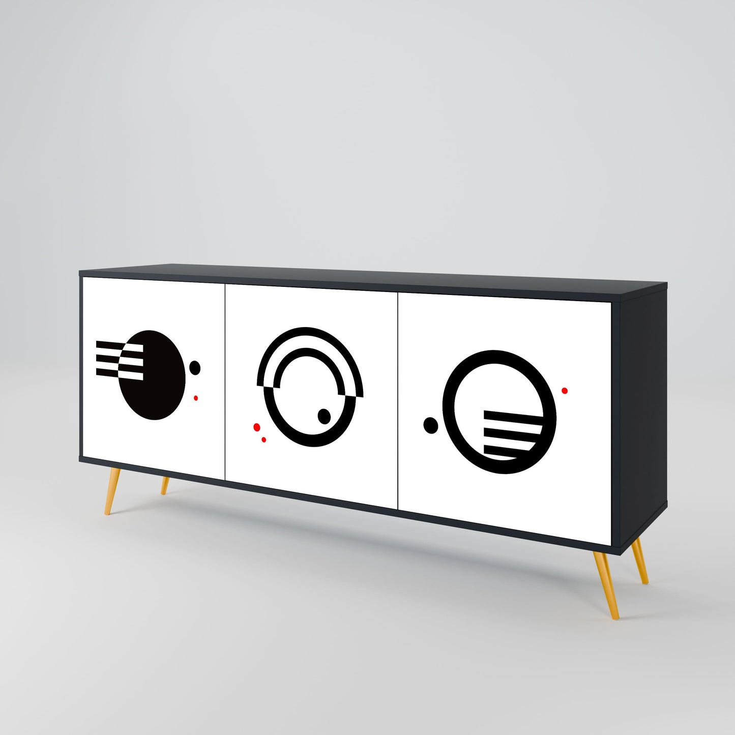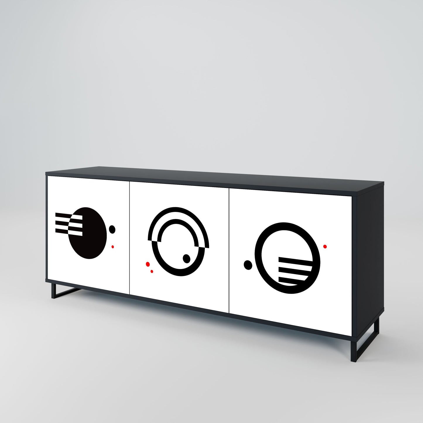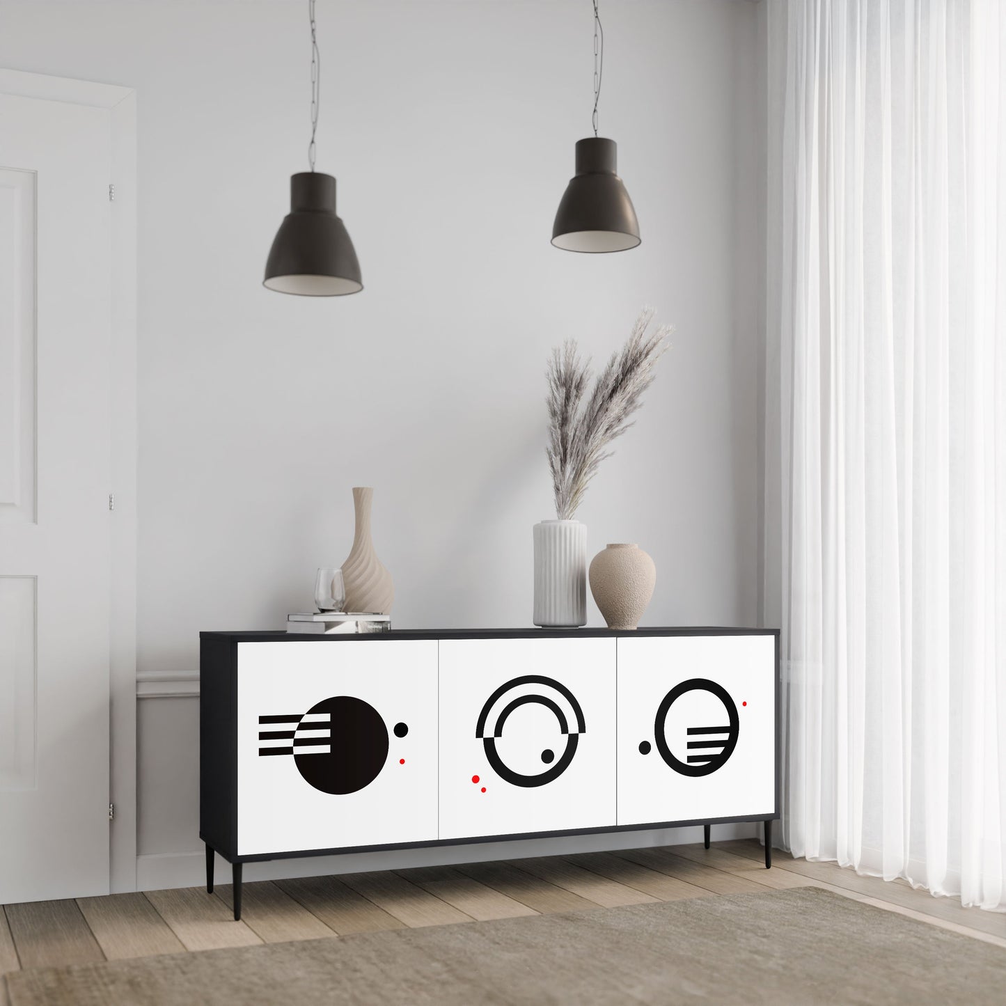 Eleganza e funzionalità in un unico mobile: la nostra credenza a 3 ante con corpo nero è la soluzione perfetta per gli amanti degli interni eleganti e moderni. Il corpo nero enfatizza il carattere audace del mobile, mentre i frontali con una stampa unica aggiungono un tocco artistico. Si adatta perfettamente al soggiorno, alla camera da letto o all'ufficio, completando sia gli arrangiamenti moderni che quelli industriali.