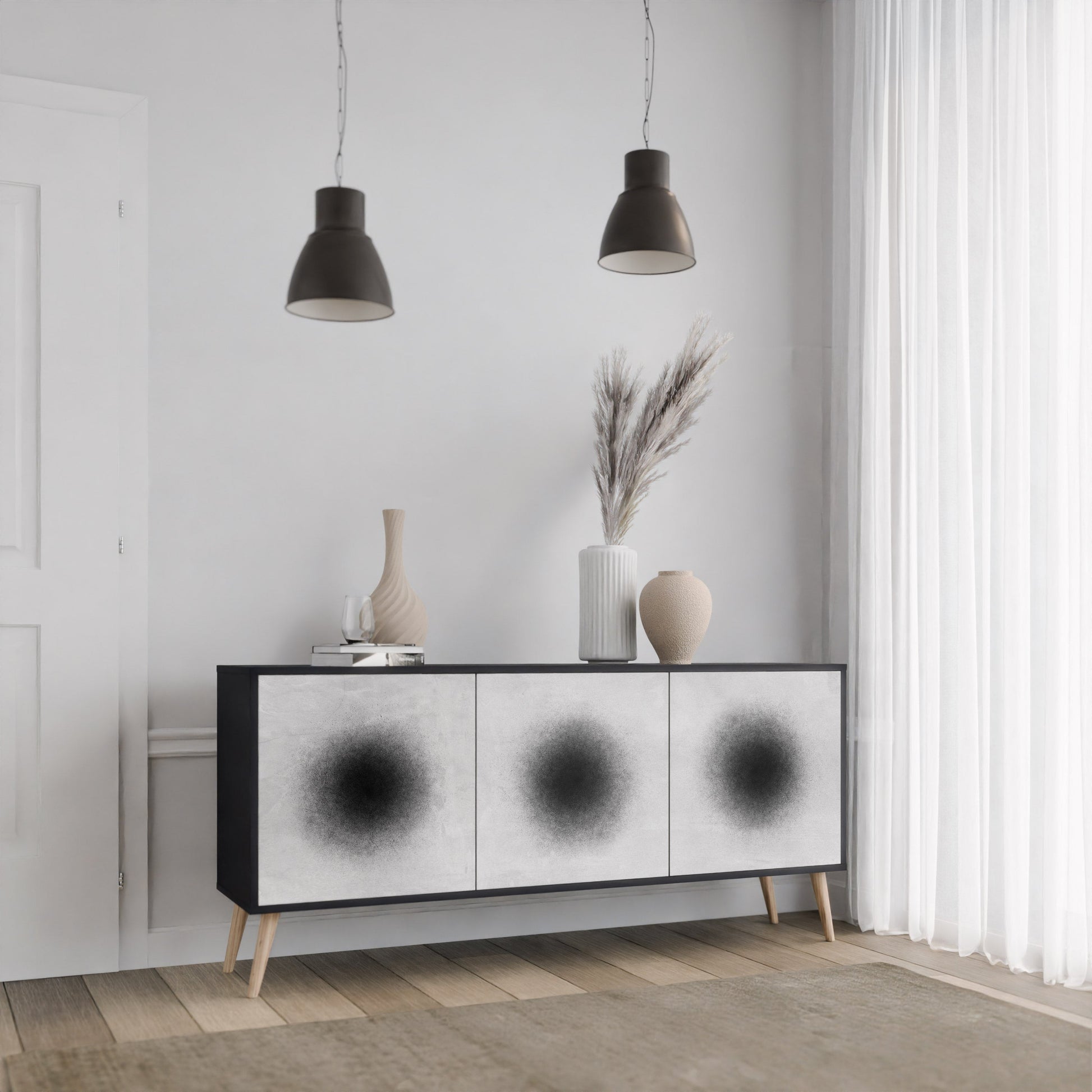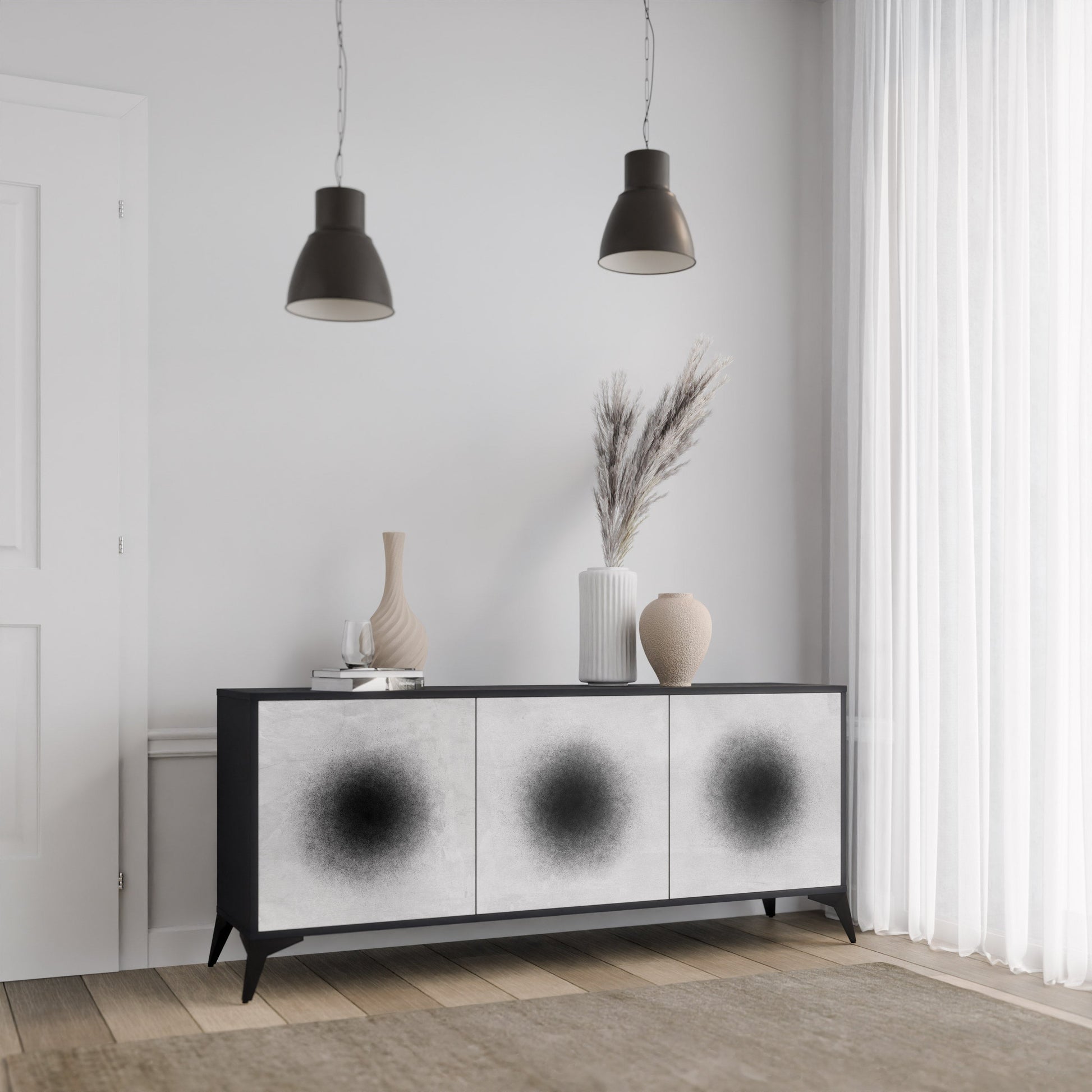 Eleganza e funzionalità in un unico mobile: la nostra credenza a 3 ante con corpo nero è la soluzione perfetta per gli amanti degli interni eleganti e moderni. Il corpo nero enfatizza il carattere audace del mobile, mentre i frontali con una stampa unica aggiungono un tocco artistico. Si adatta perfettamente al soggiorno, alla camera da letto o all'ufficio, completando sia gli arrangiamenti moderni che quelli industriali.
