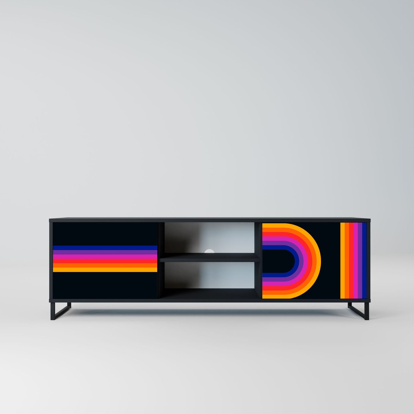 Il corpo nero conferisce al mobile TV un aspetto elegante e moderno, mentre i frontali con una stampa eccezionale attirano l'attenzione, rendendolo il punto focale di ogni stanza. L'interno spazioso offre spazio per dispositivi elettronici, cavi, telecomandi e altri accessori, aiutandoti a mantenere ordine e organizzazione.