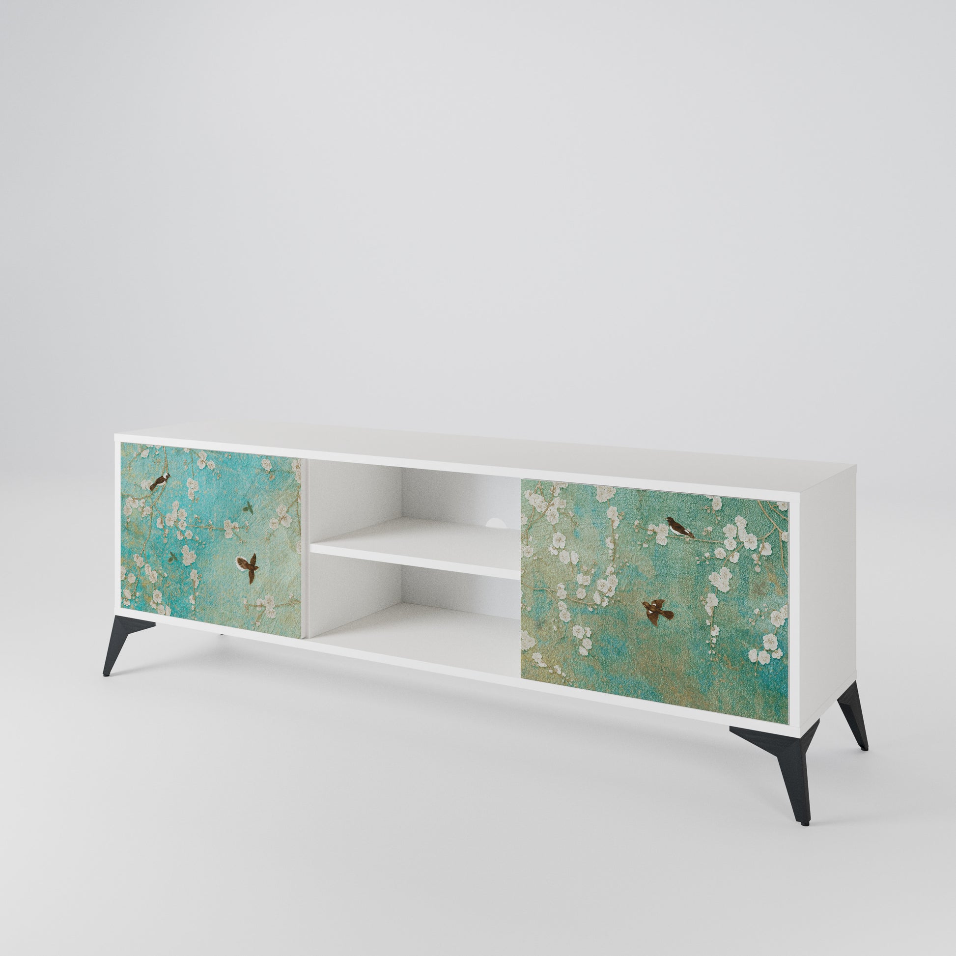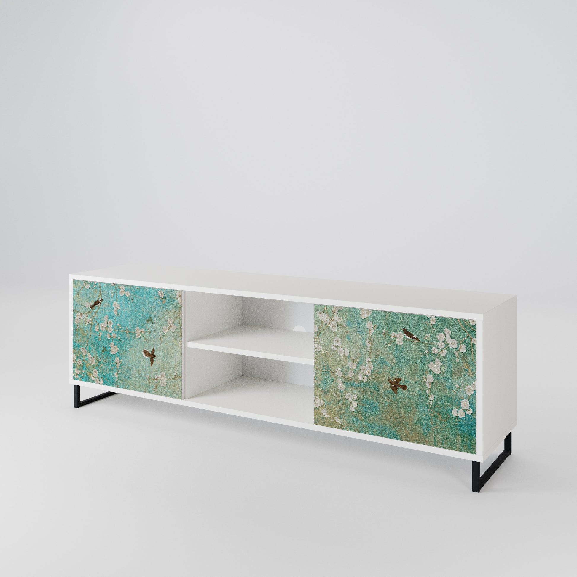 Il corpo bianco conferisce al mobile TV un aspetto luminoso e raffinato, mentre i frontali con una stampa eccezionale catturano l'attenzione, diventando il punto focale di qualsiasi stanza. Lo spazioso interno offre spazio per dispositivi elettronici, cavi, telecomandi e altri accessori, aiutandoti a mantenere ordine e organizzazione.