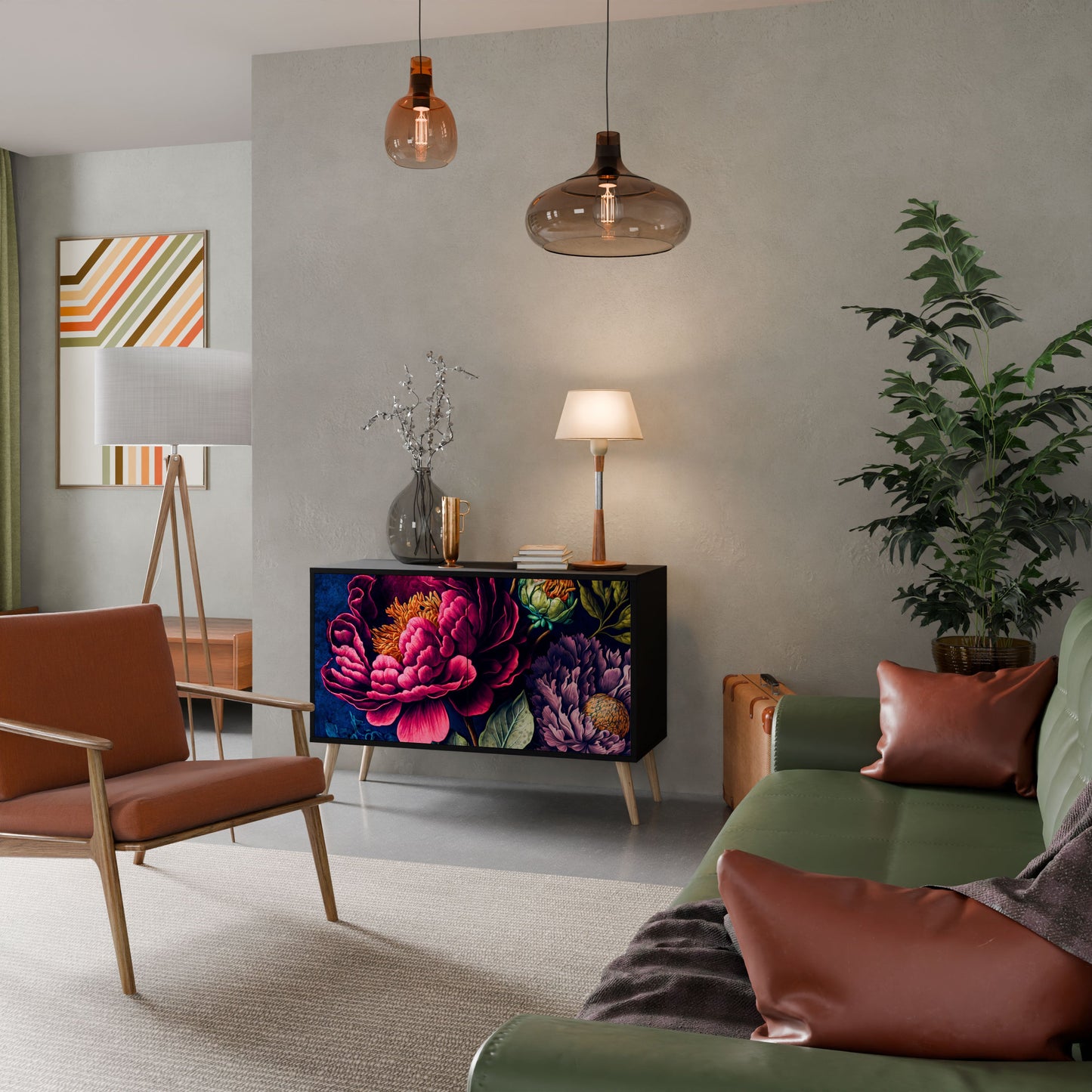 Eleganza e funzionalità in un unico mobile: la nostra credenza a 2 ante con corpo nero è la soluzione perfetta per gli amanti degli interni eleganti e moderni. Il corpo nero enfatizza il carattere audace del mobile, mentre i frontali con una stampa unica aggiungono un tocco artistico. Si adatta perfettamente al soggiorno, alla camera da letto o all'ufficio, completando sia gli arrangiamenti moderni che quelli industriali.