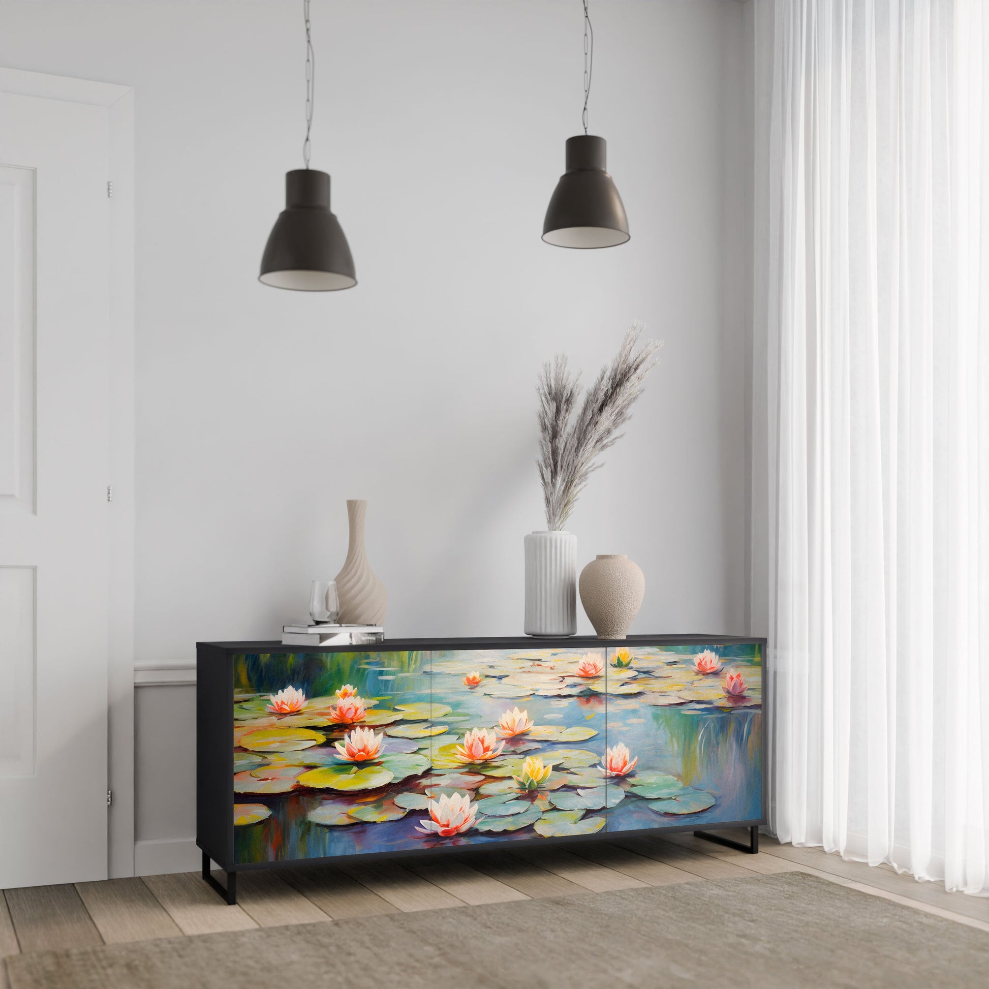 Credenza BLOOMING WATERS a 3 ante in finitura nera