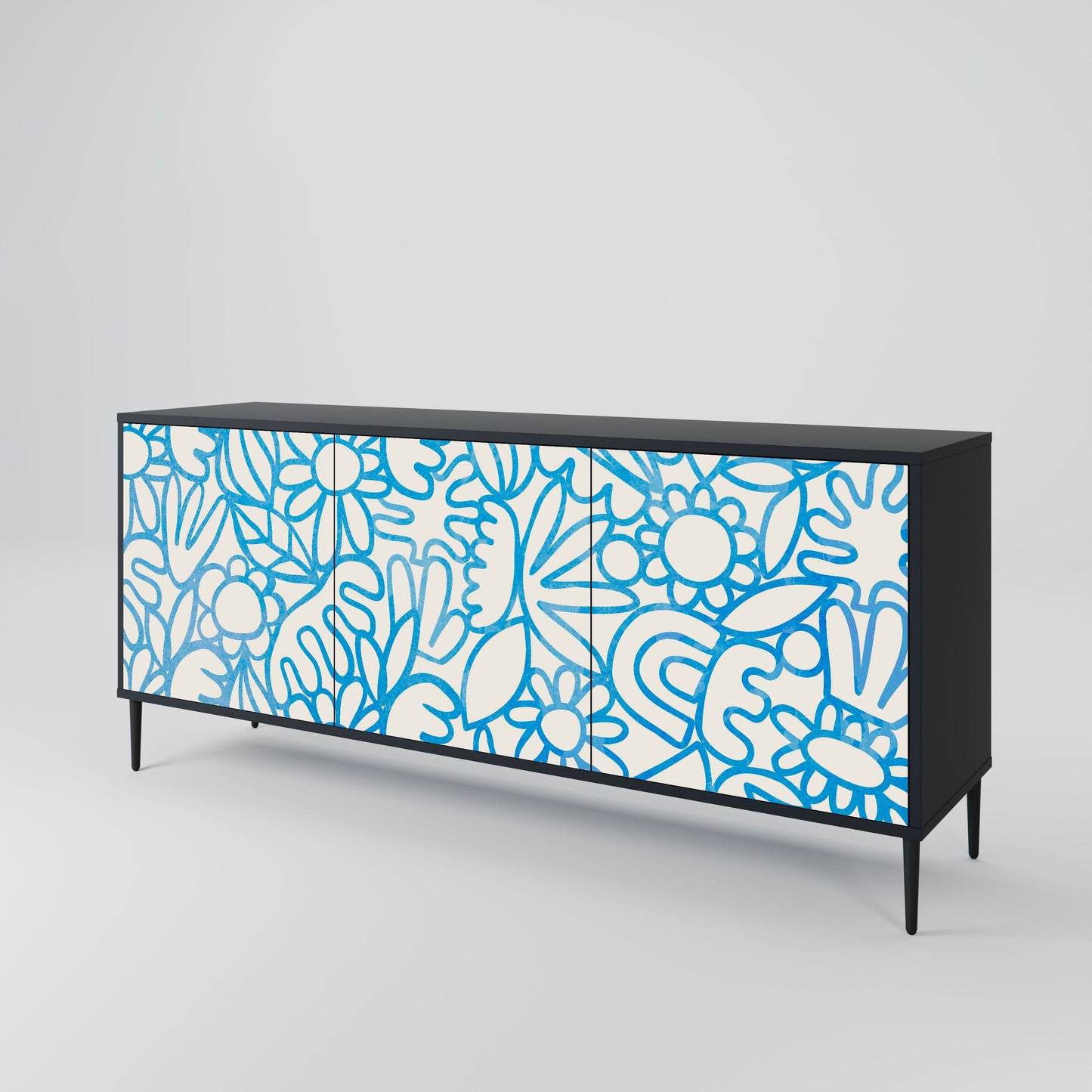 Credenza BLOOMY MORNING a 3 ante in finitura nera