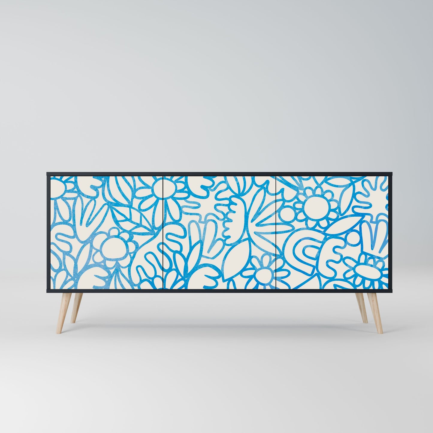 Eleganza e funzionalità in un unico mobile: la nostra credenza a 3 ante con corpo nero è la soluzione perfetta per gli amanti degli interni eleganti e moderni. Il corpo nero enfatizza il carattere audace del mobile, mentre i frontali con una stampa unica aggiungono un tocco artistico. Si adatta perfettamente al soggiorno, alla camera da letto o all'ufficio, completando sia gli arrangiamenti moderni che quelli industriali.