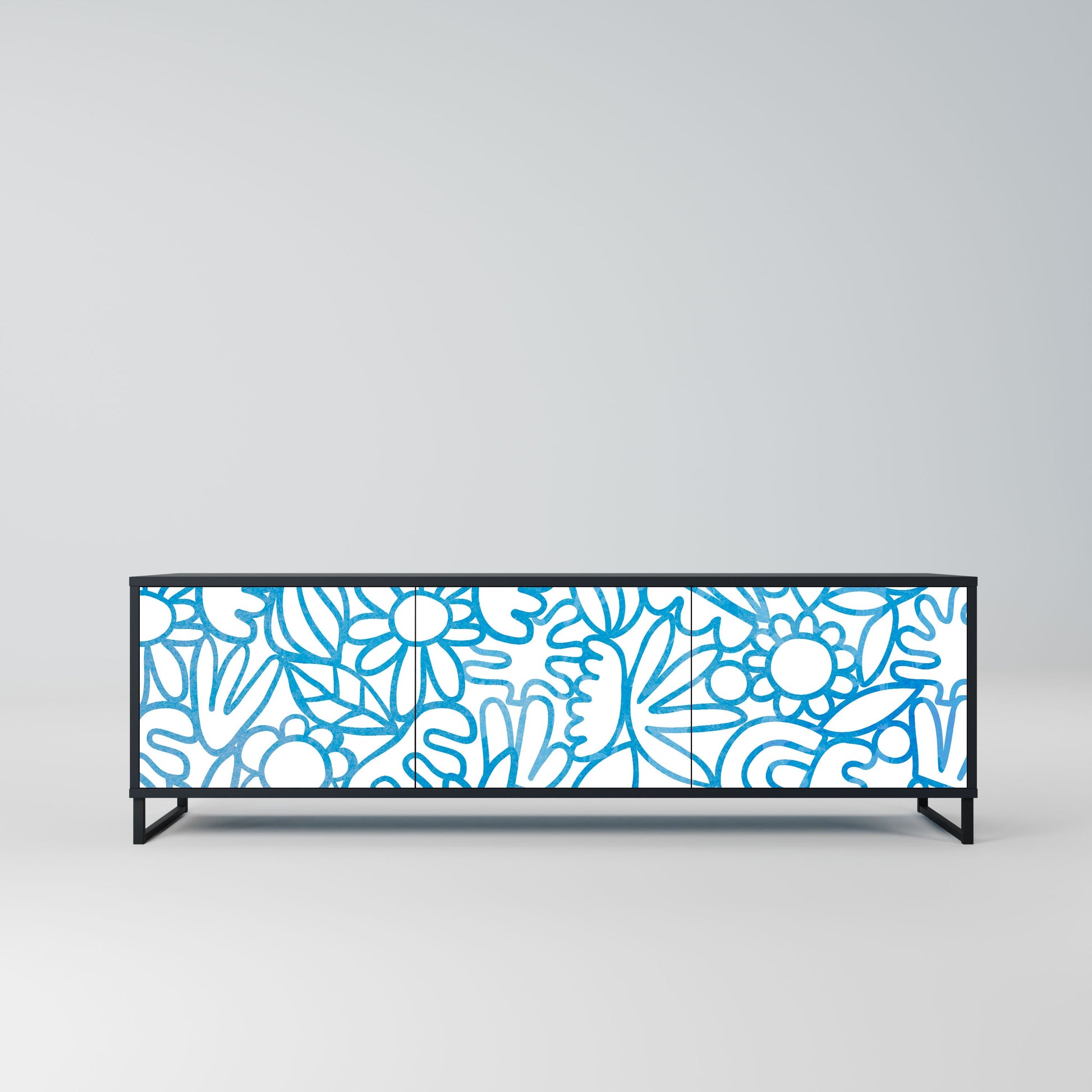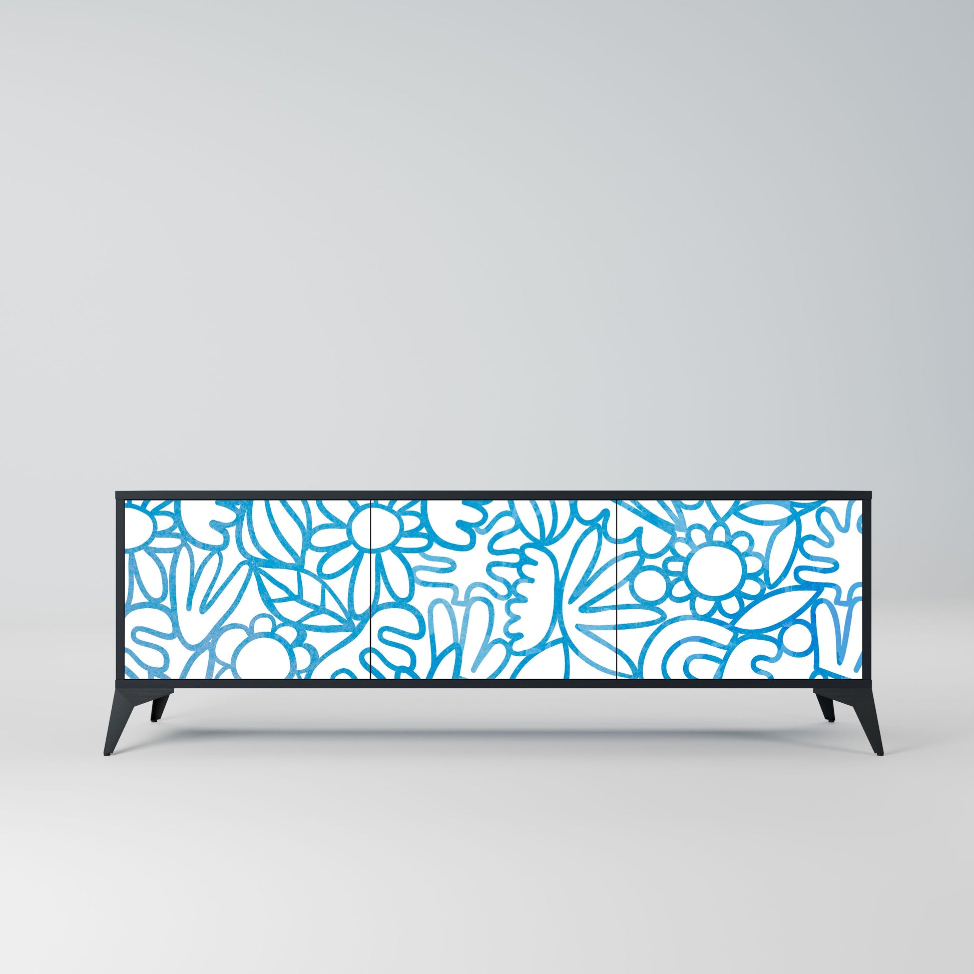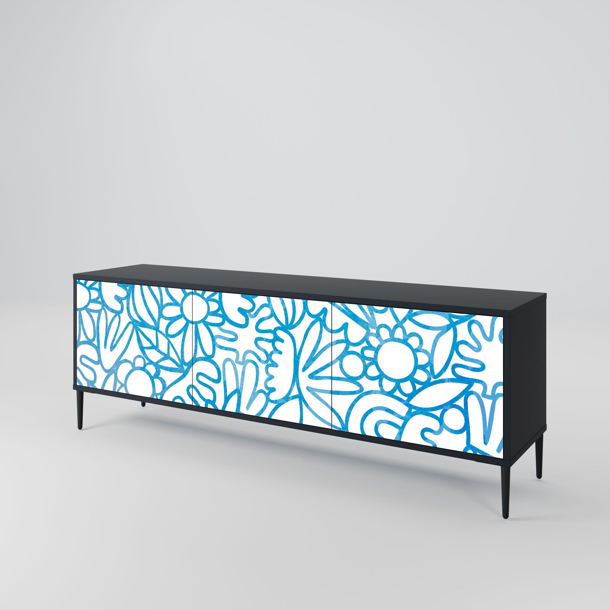 Mobile TV BLOOMY MORNING a 3 ante con finitura nera