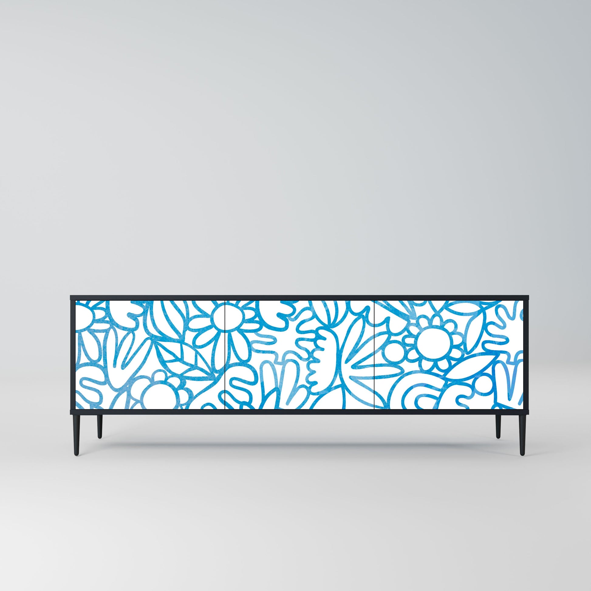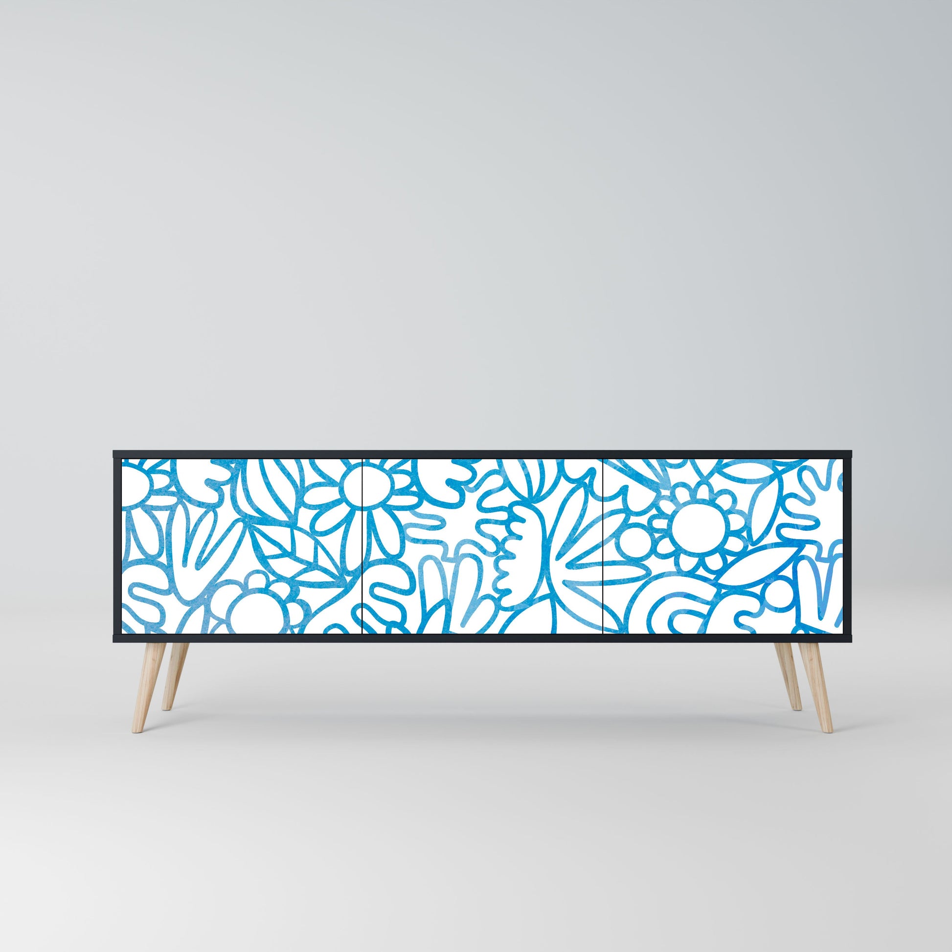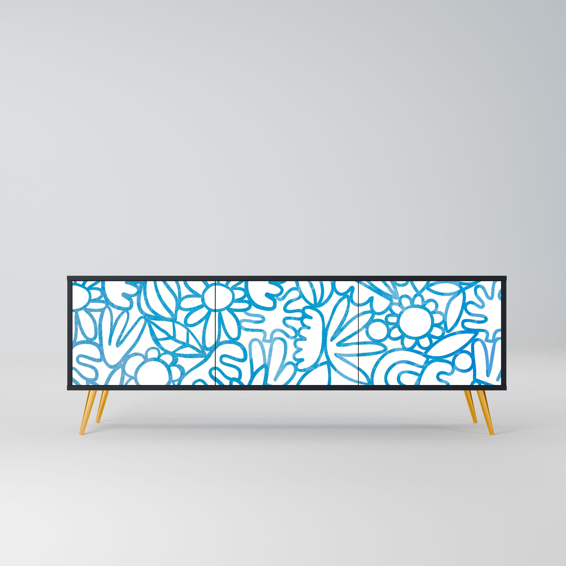Mobile TV BLOOMY MORNING a 3 ante con finitura nera