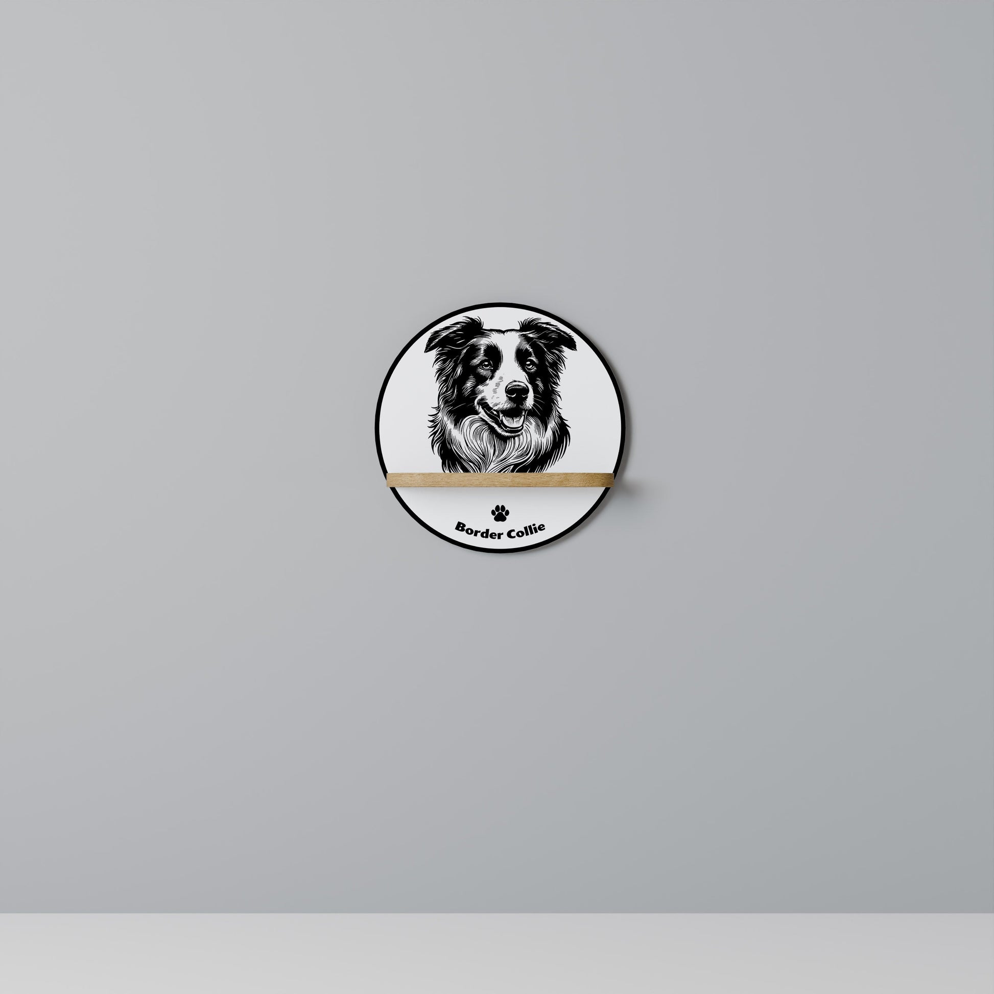 BORDER COLLIE Mensola rotonda per opere d'arte in effetto rovere