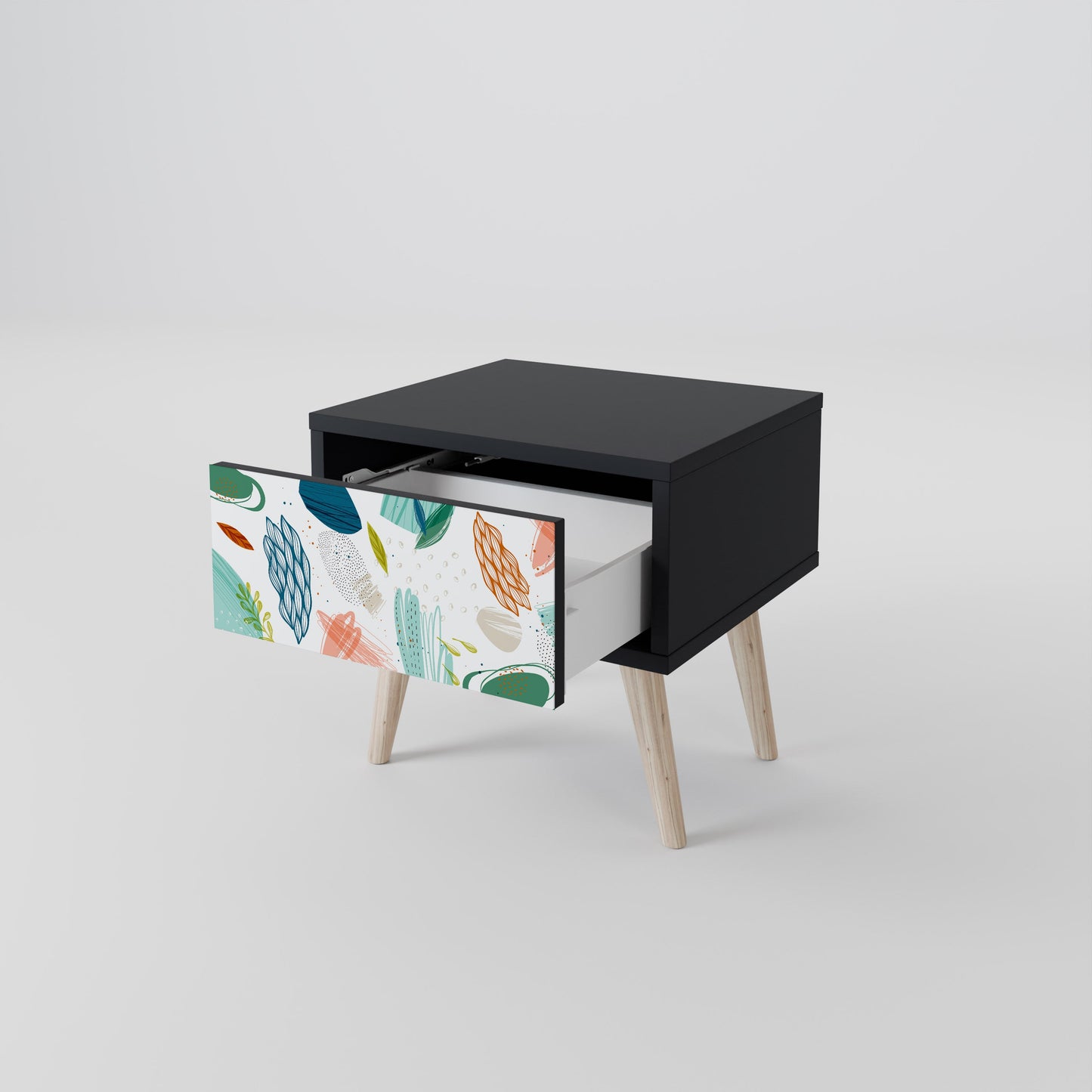 Scoprite raffinatezza e praticità in un design compatto con il nostro comodino con cassetto in un'elegante finitura nera. Questo mobile elegante e funzionale fonde stile contemporaneo e design minimalista, diventando un'aggiunta di grande impatto a qualsiasi camera da letto.