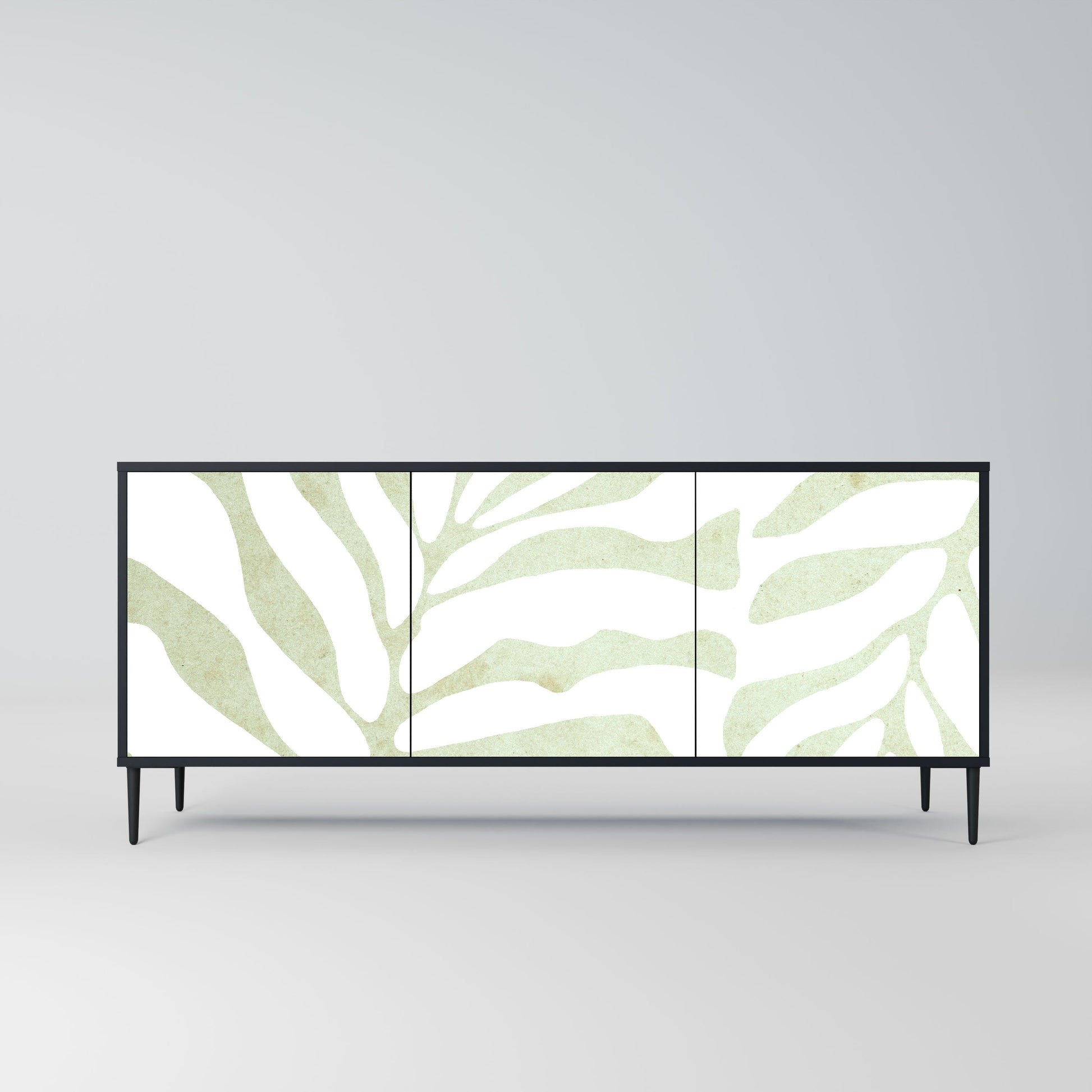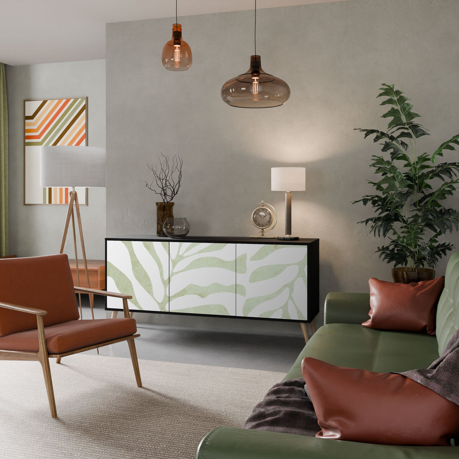 Eleganza e funzionalità in un unico mobile: la nostra credenza a 3 ante con corpo nero è la soluzione perfetta per gli amanti degli interni eleganti e moderni. Il corpo nero enfatizza il carattere audace del mobile, mentre i frontali con una stampa unica aggiungono un tocco artistico. Si adatta perfettamente al soggiorno, alla camera da letto o all'ufficio, completando sia gli arrangiamenti moderni che quelli industriali.
