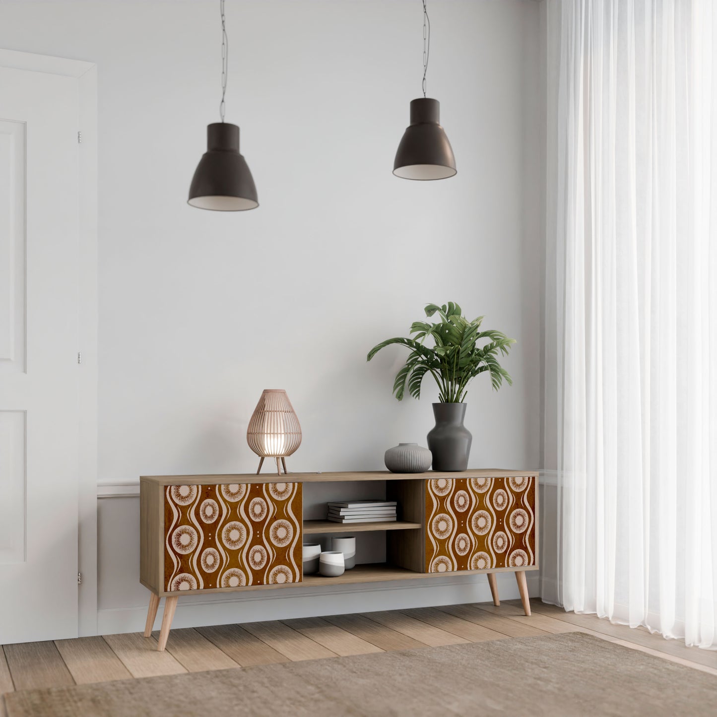 Ti invitiamo a scoprire il nostro mobile porta TV a 2 ante che unisce semplicità e stile eccezionale. Realizzato con materiali di altissima qualità, questo elegante pezzo nei toni della quercia, con ante in legno con finitura stampata, è l'aggiunta perfetta a qualsiasi soggiorno moderno.