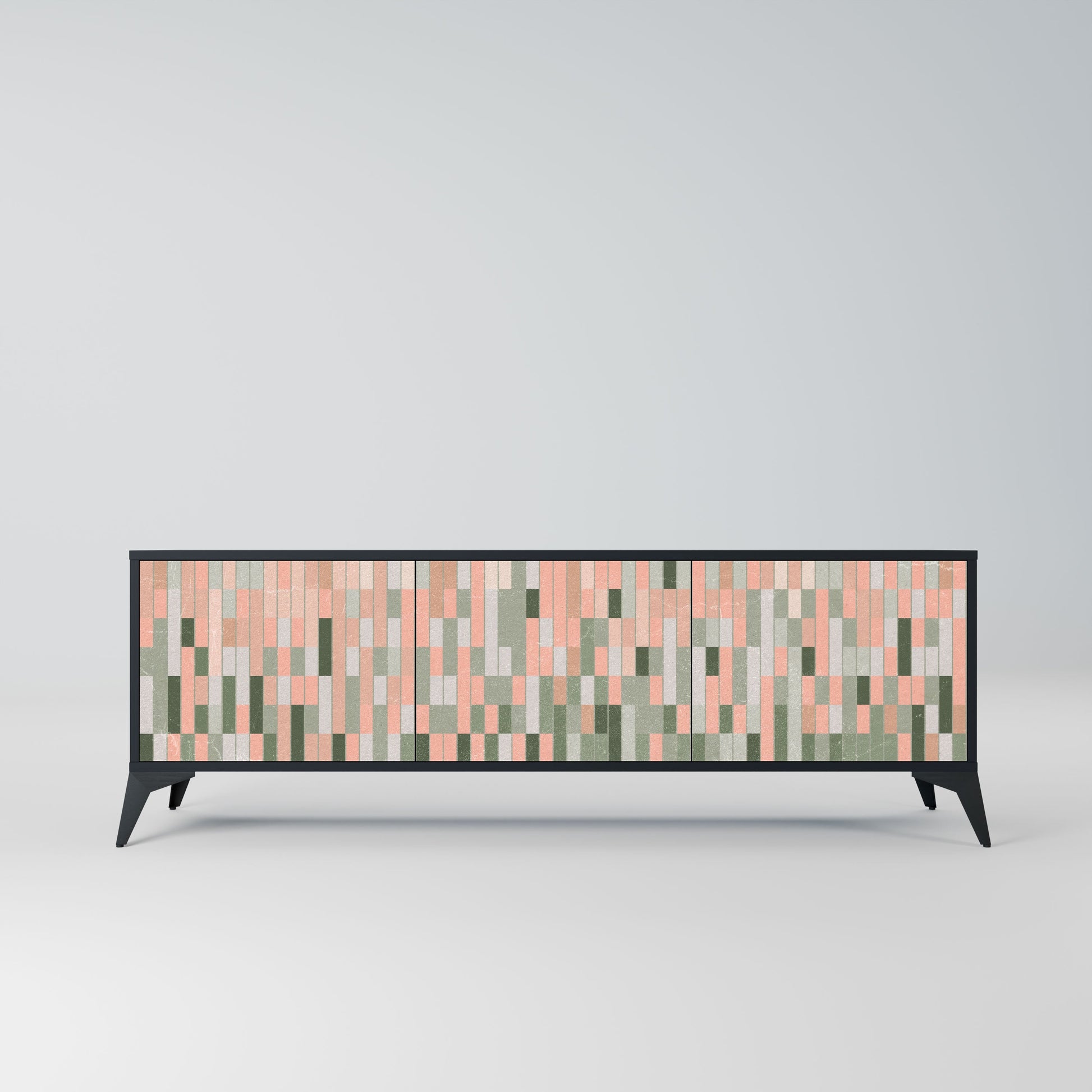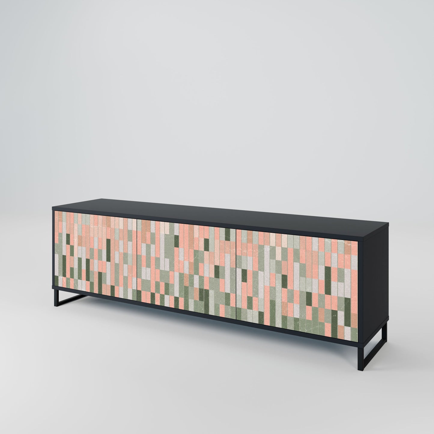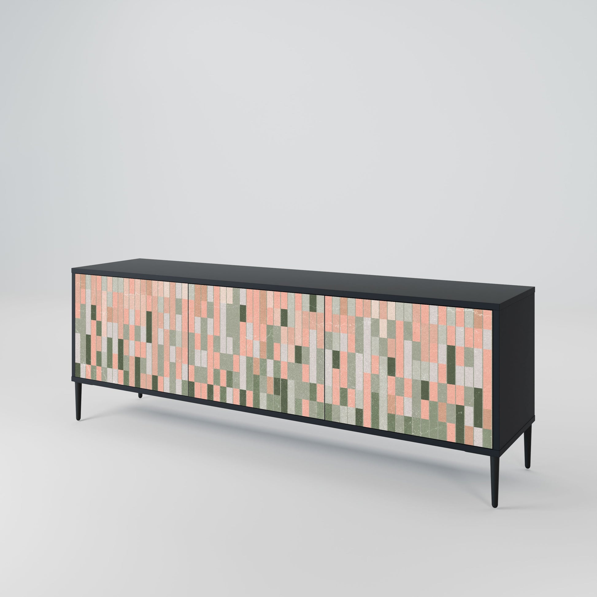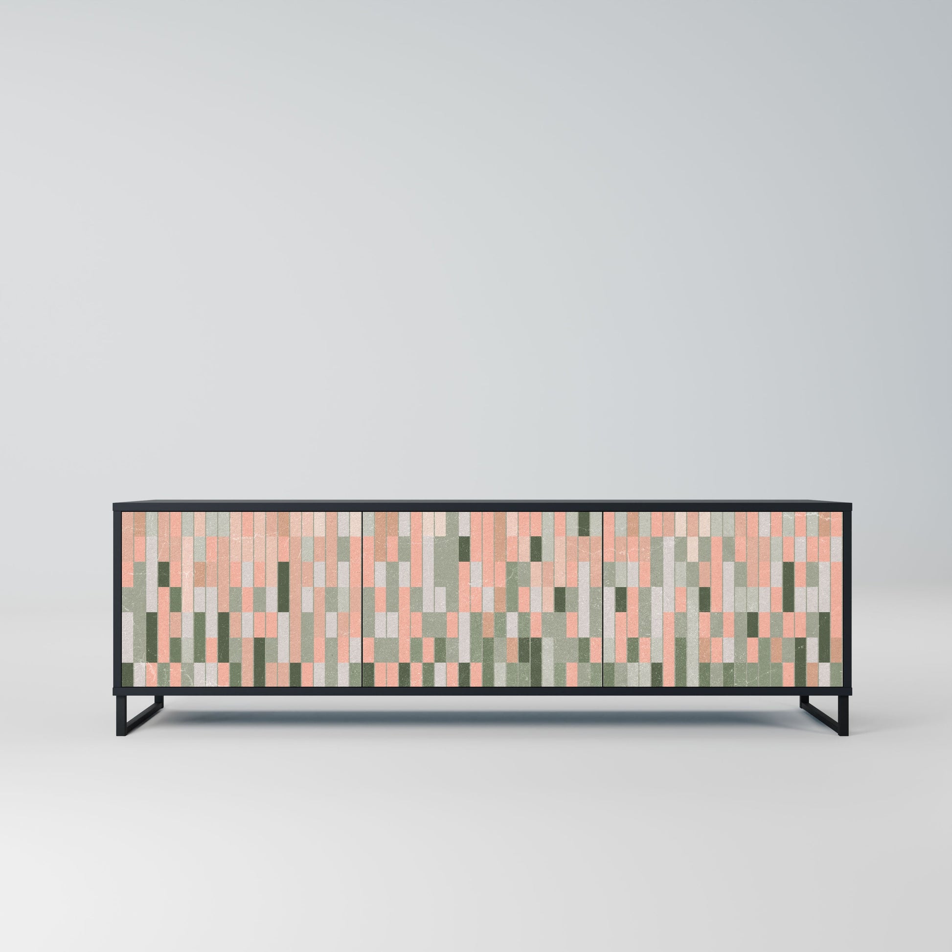 Il corpo nero del supporto crea un accento audace e moderno che si abbina magnificamente ad allestimenti industriali e minimalisti. I frontali con una stampa di design aggiungono carattere e unicità, rendendo questo pezzo non solo pratico ma anche un elemento decorativo di spicco.