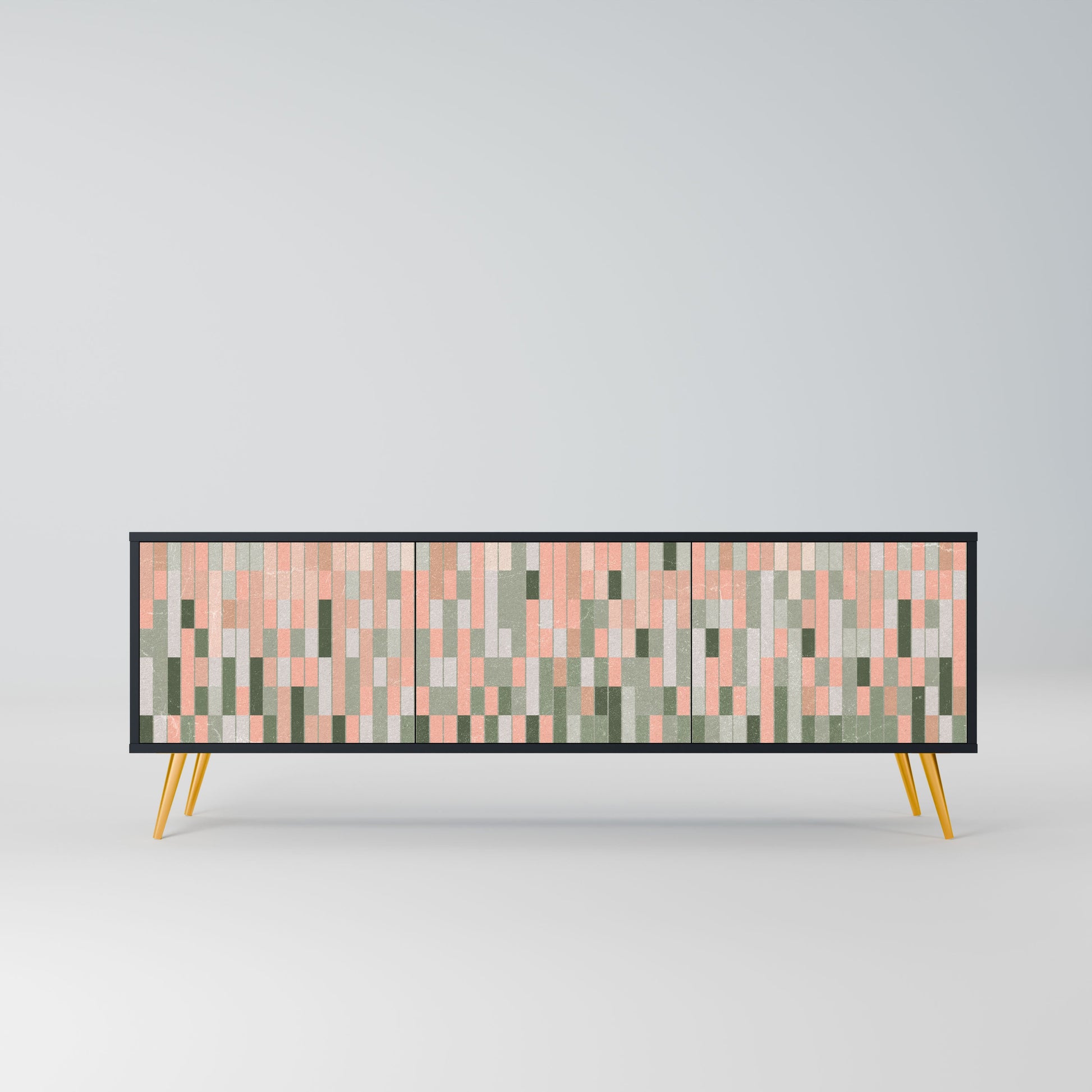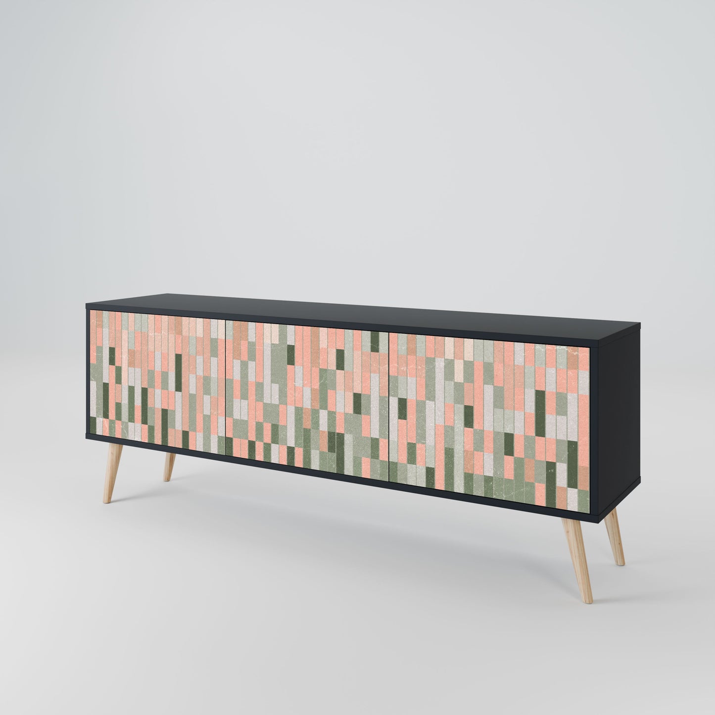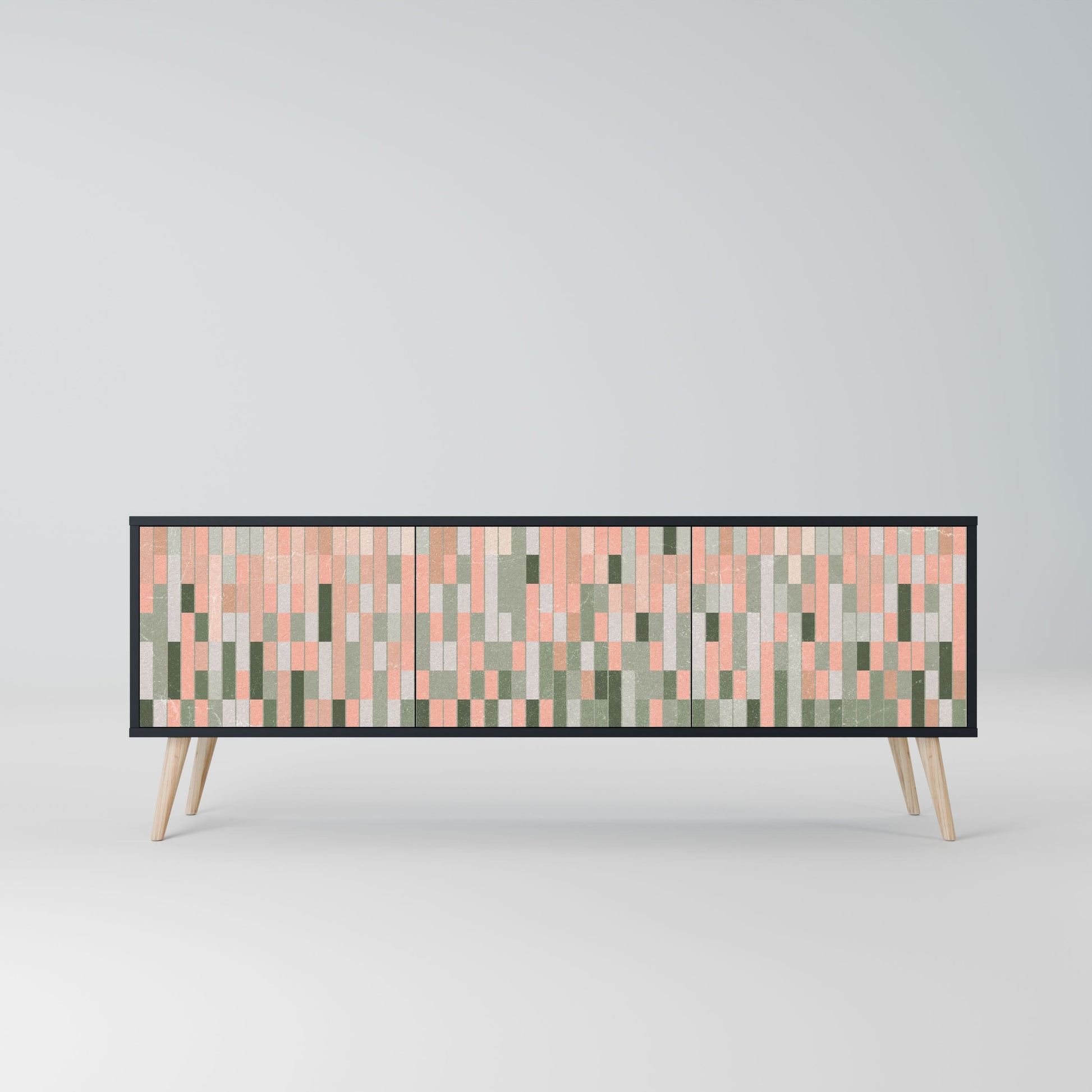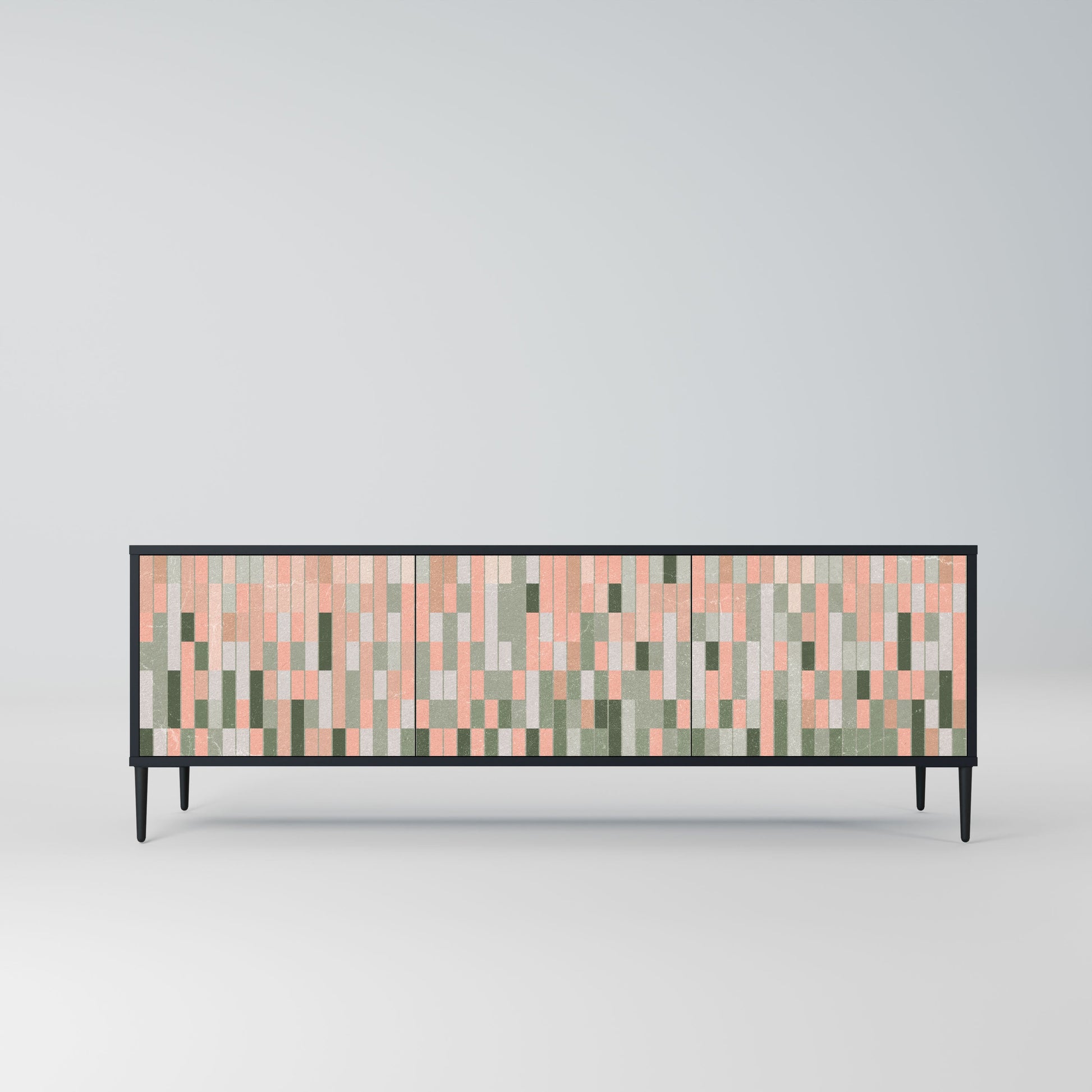Il corpo nero del supporto crea un accento audace e moderno che si abbina magnificamente ad allestimenti industriali e minimalisti. I frontali con una stampa di design aggiungono carattere e unicità, rendendo questo pezzo non solo pratico ma anche un elemento decorativo di spicco.