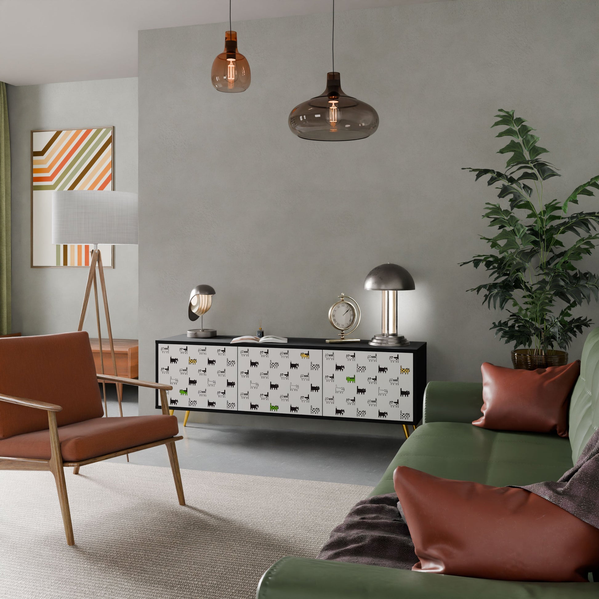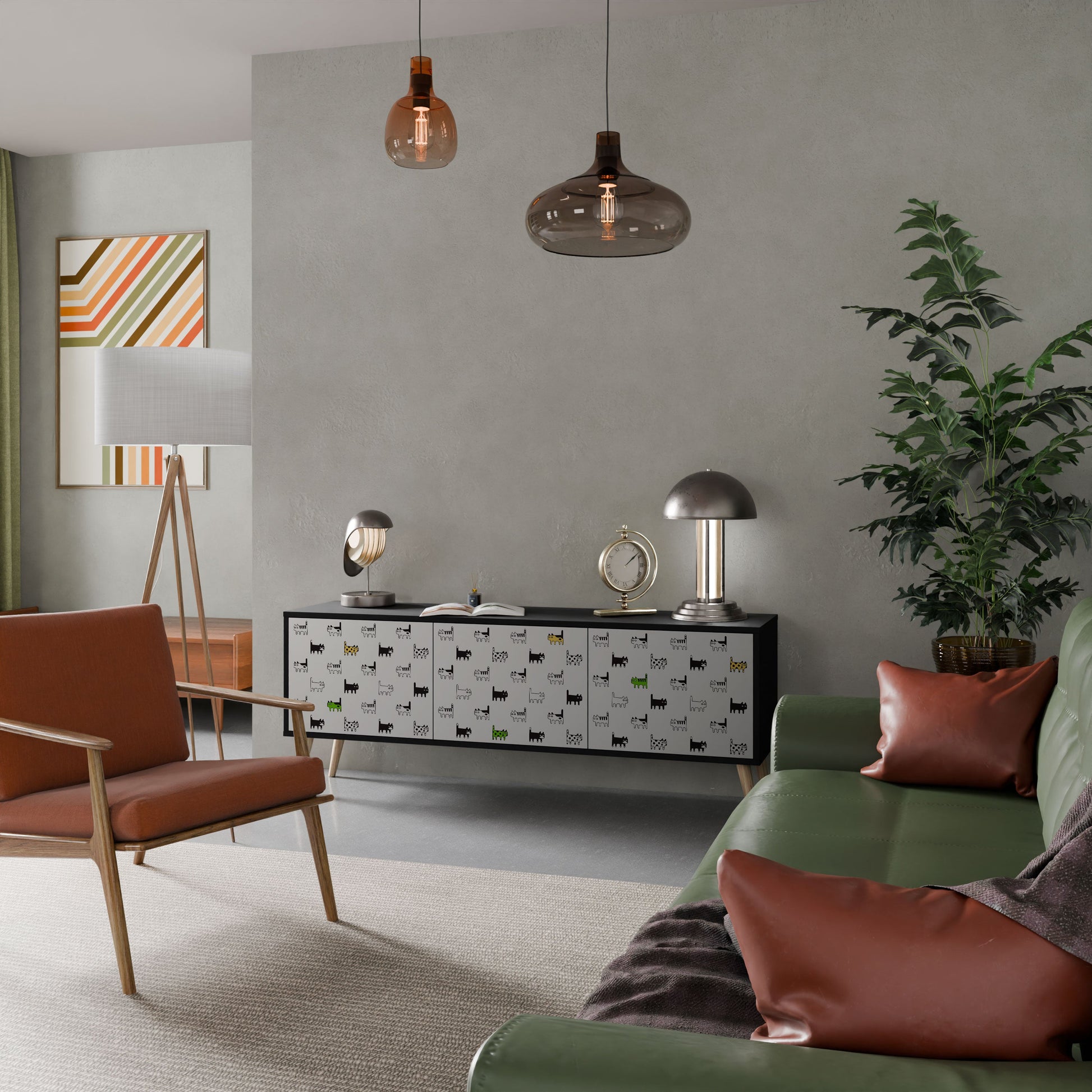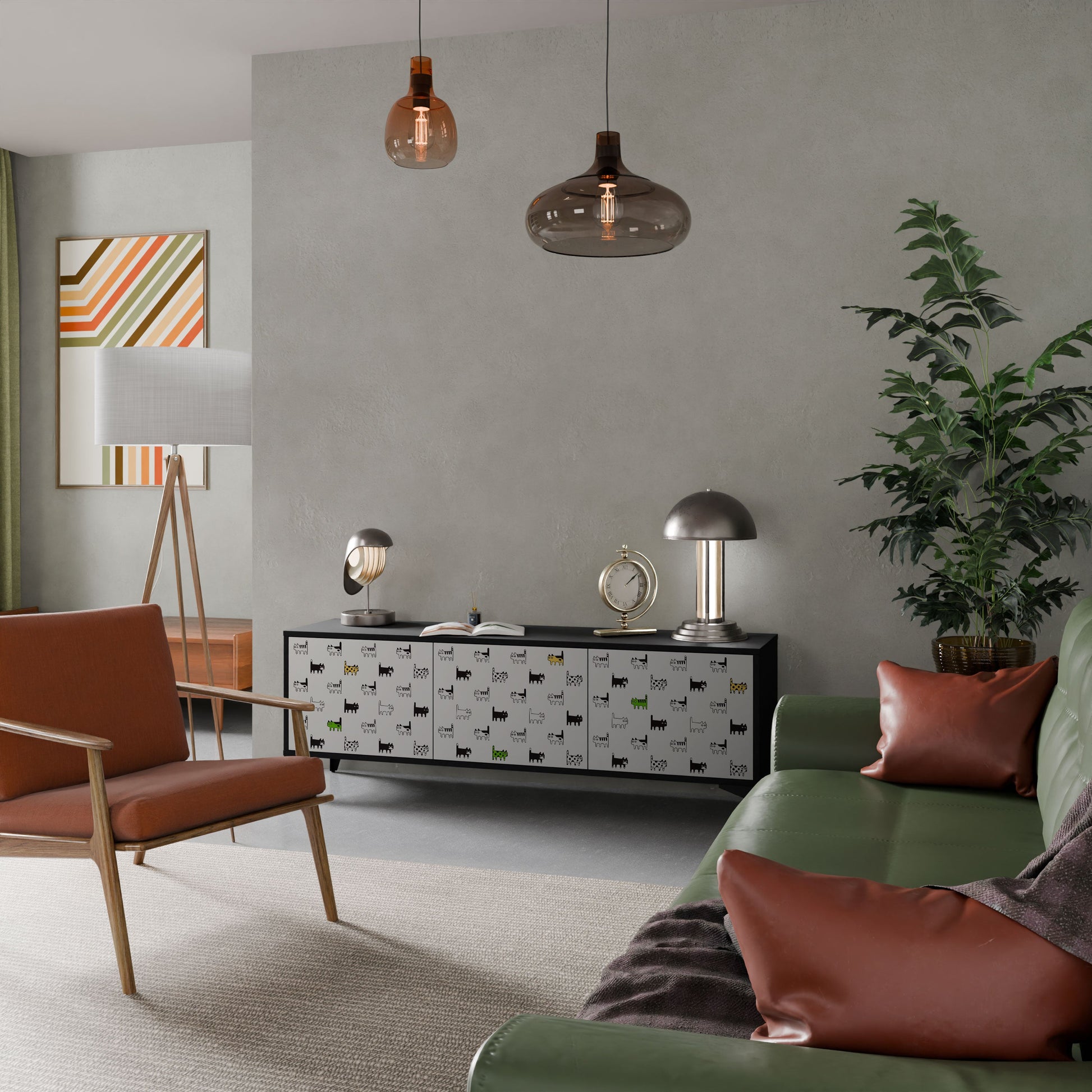 Il corpo nero del supporto crea un accento audace e moderno che si abbina magnificamente ad allestimenti industriali e minimalisti. I frontali con una stampa di design aggiungono carattere e unicità, rendendo questo pezzo non solo pratico ma anche un elemento decorativo di spicco.