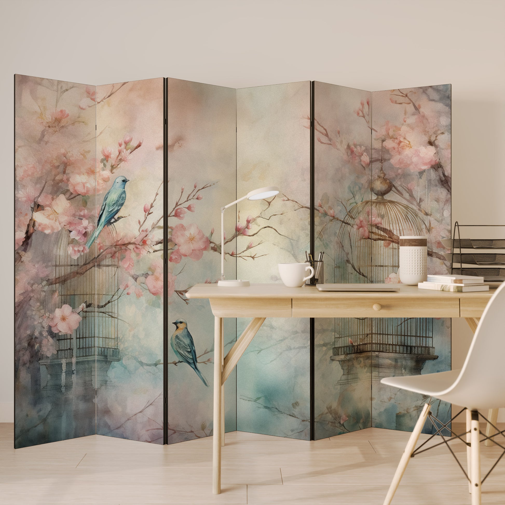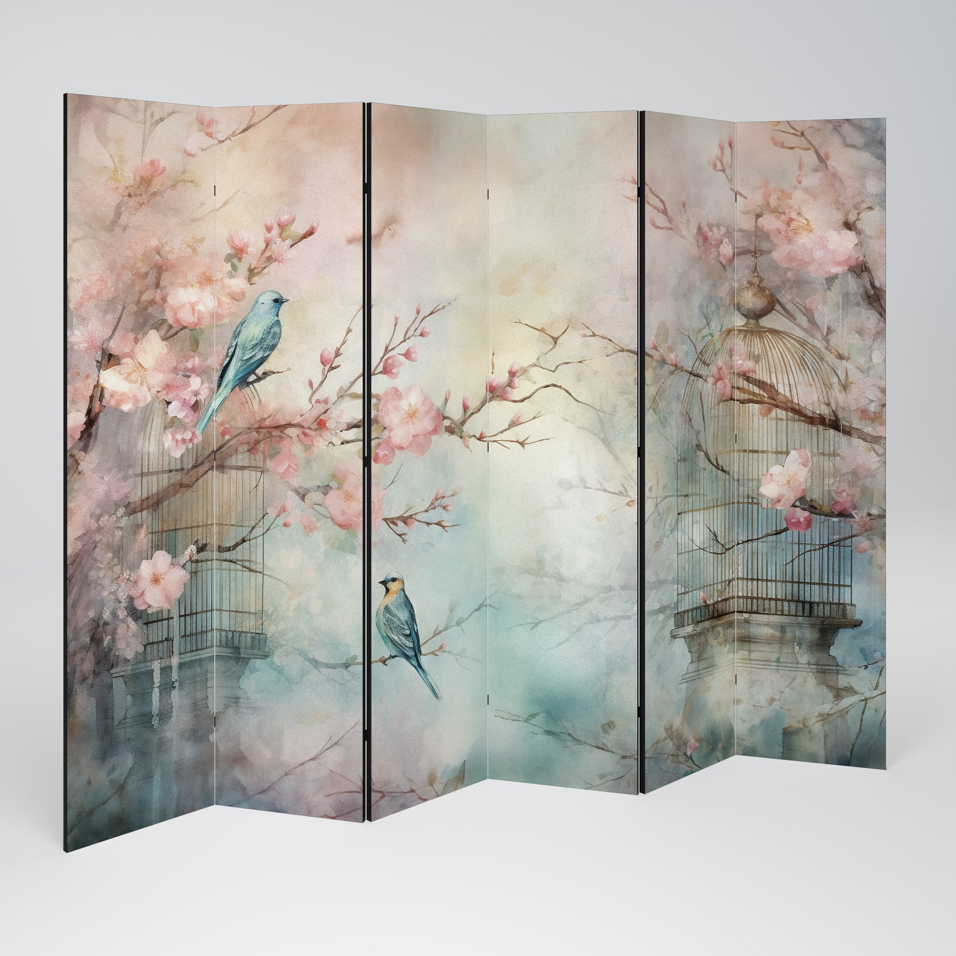 Divisorio decorativo per ambienti a 6 pannelli CHERRY BIRDSONG