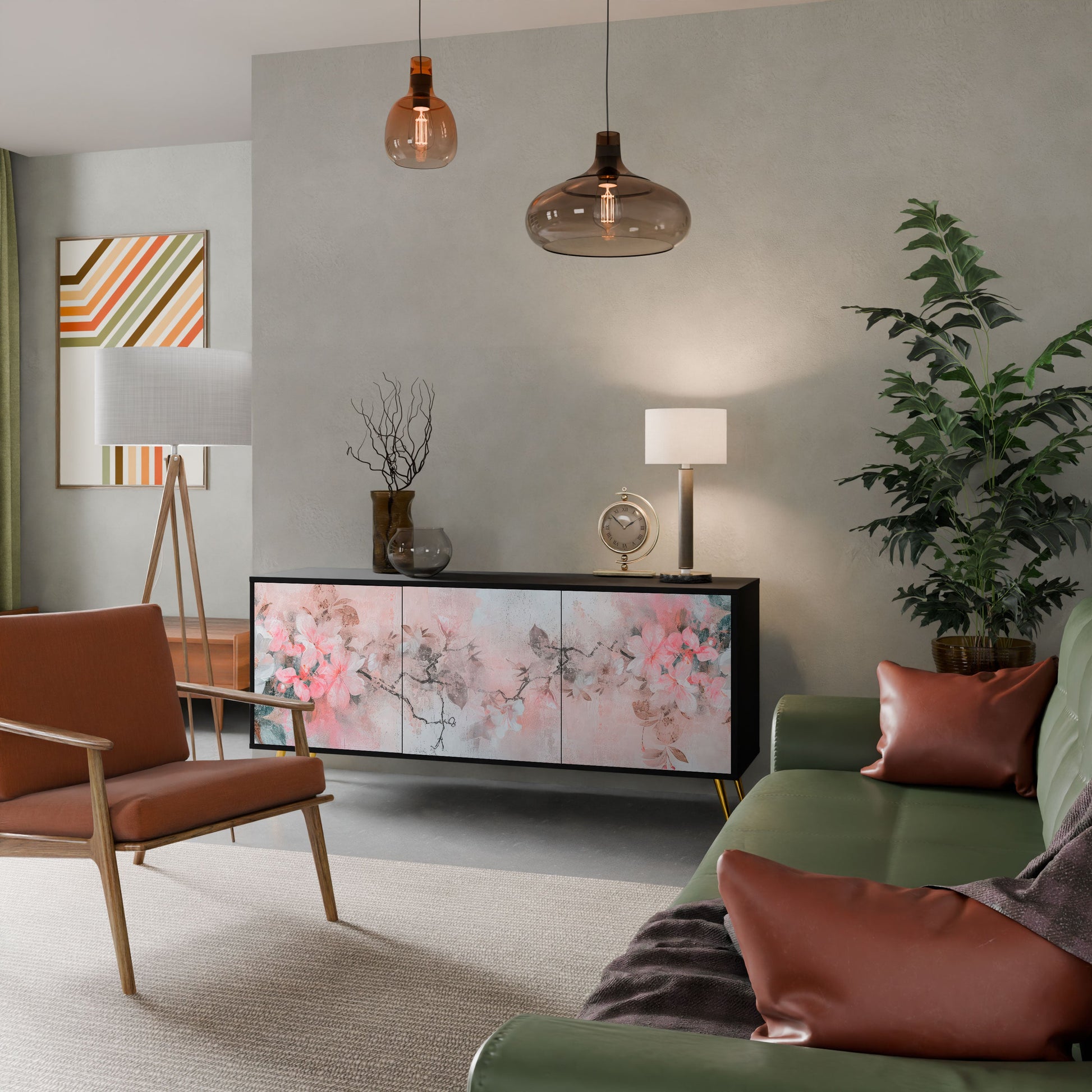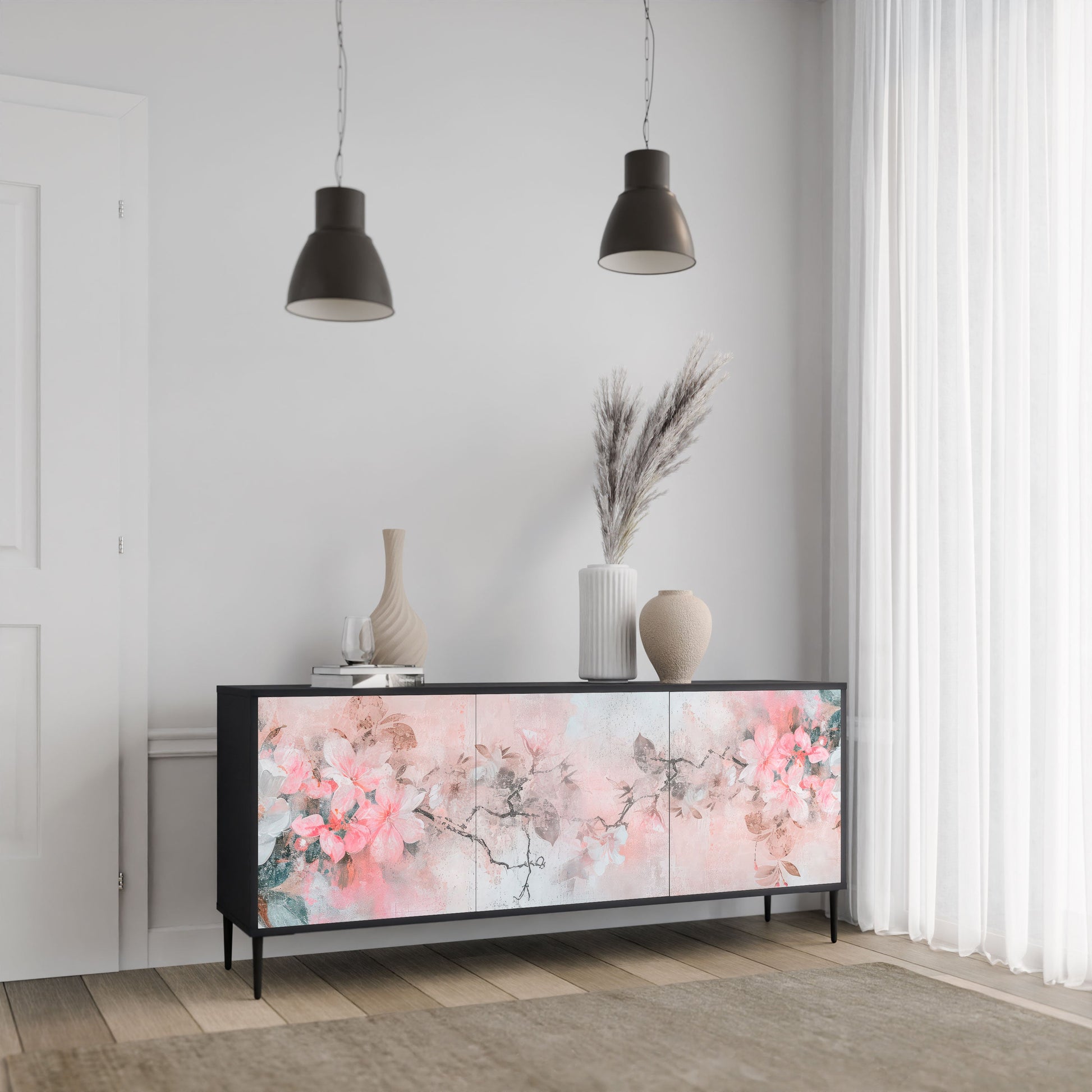 Credenza CHERRY BLOSSOM a 3 ante in finitura nera