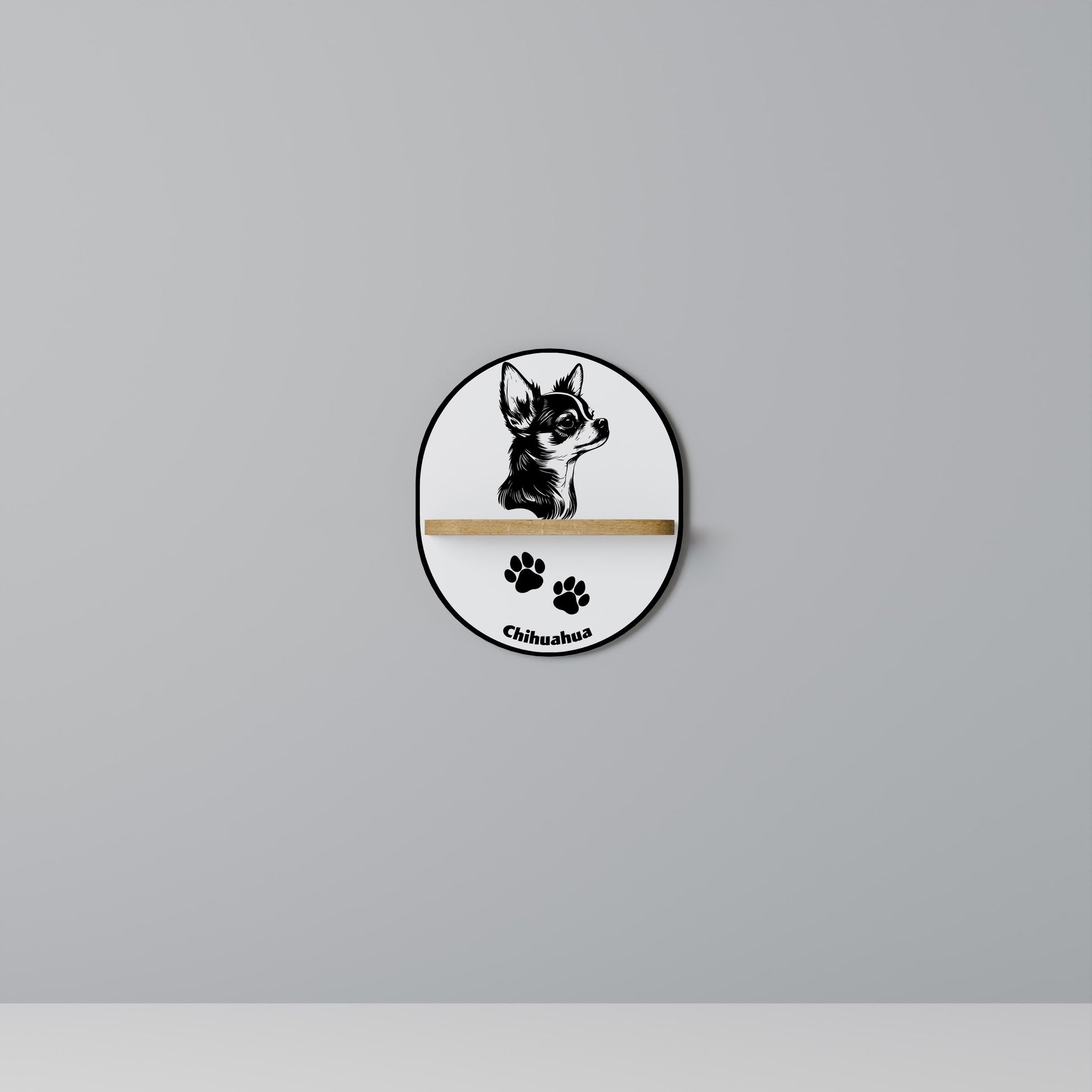 Mensola ovale per opere d'arte a forma di cane CHIHUAHUA in effetto rovere