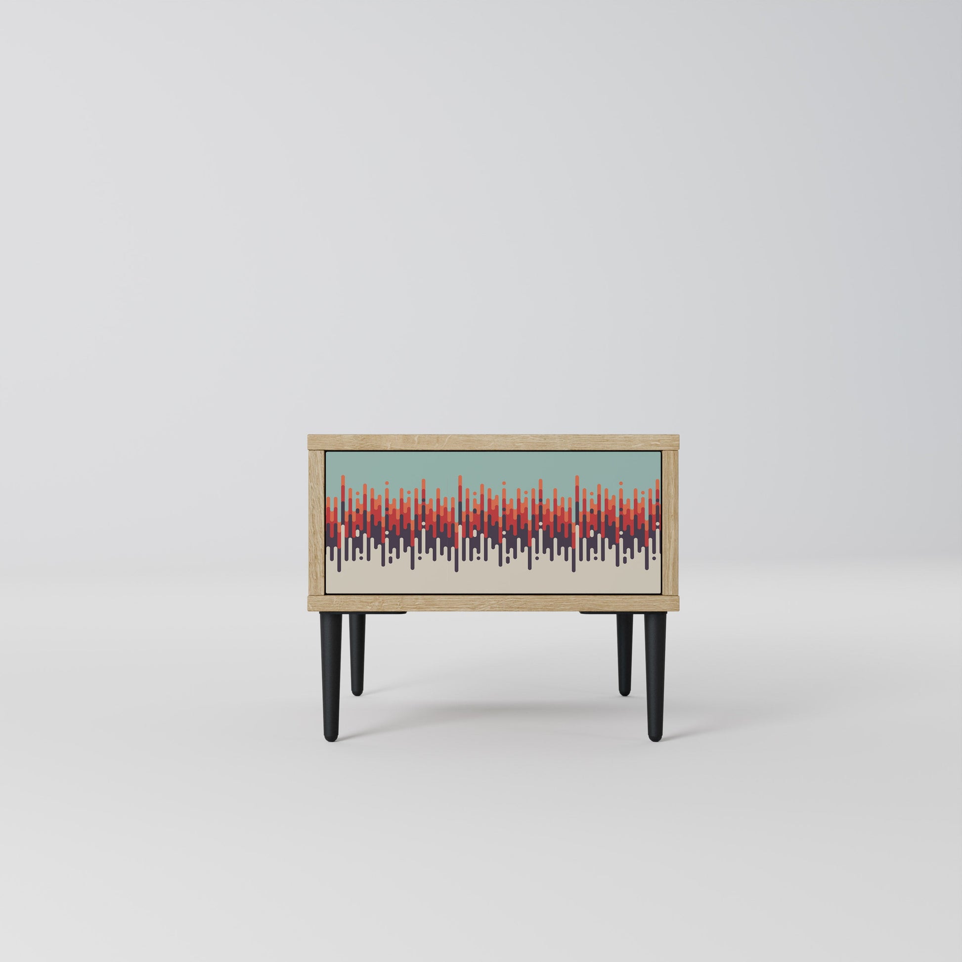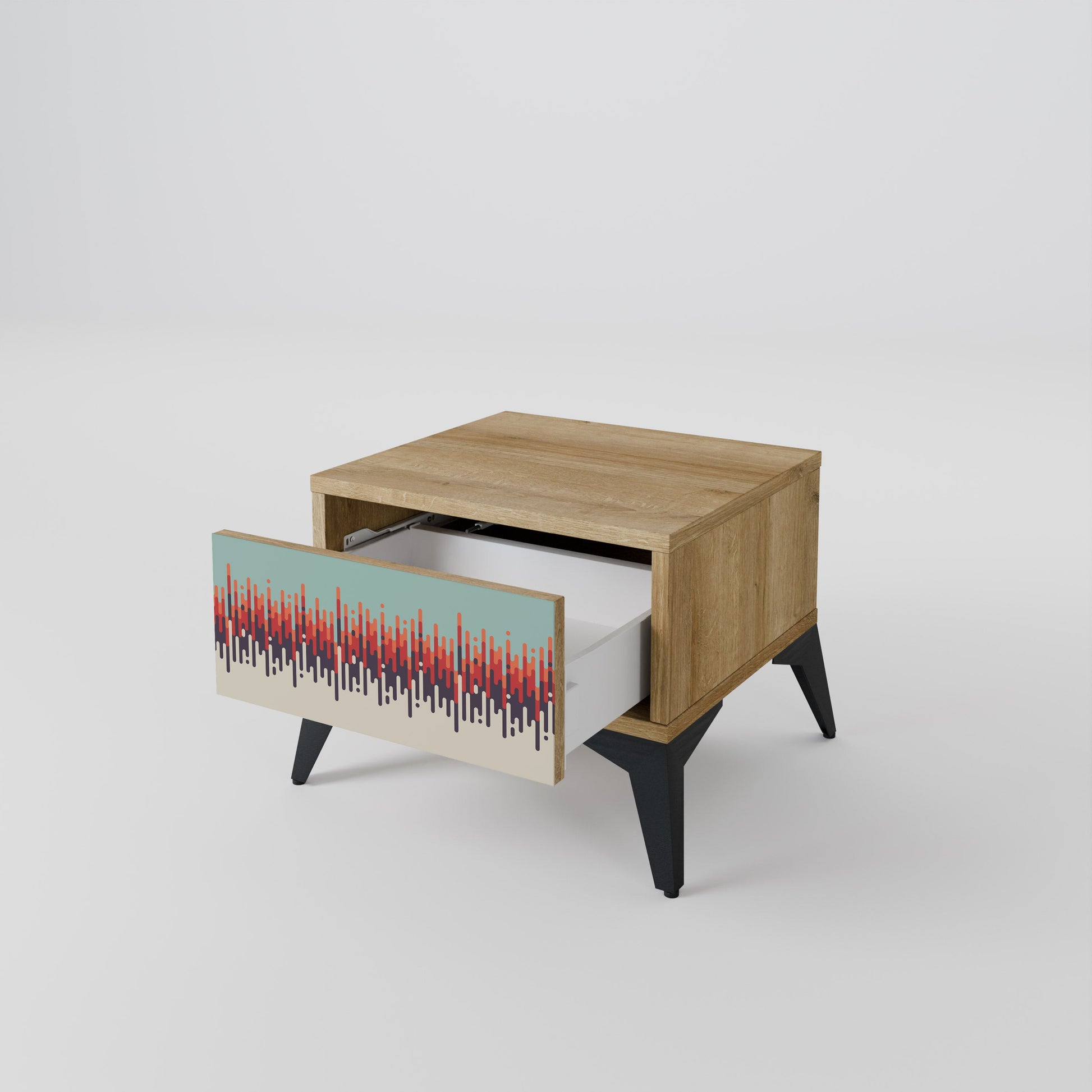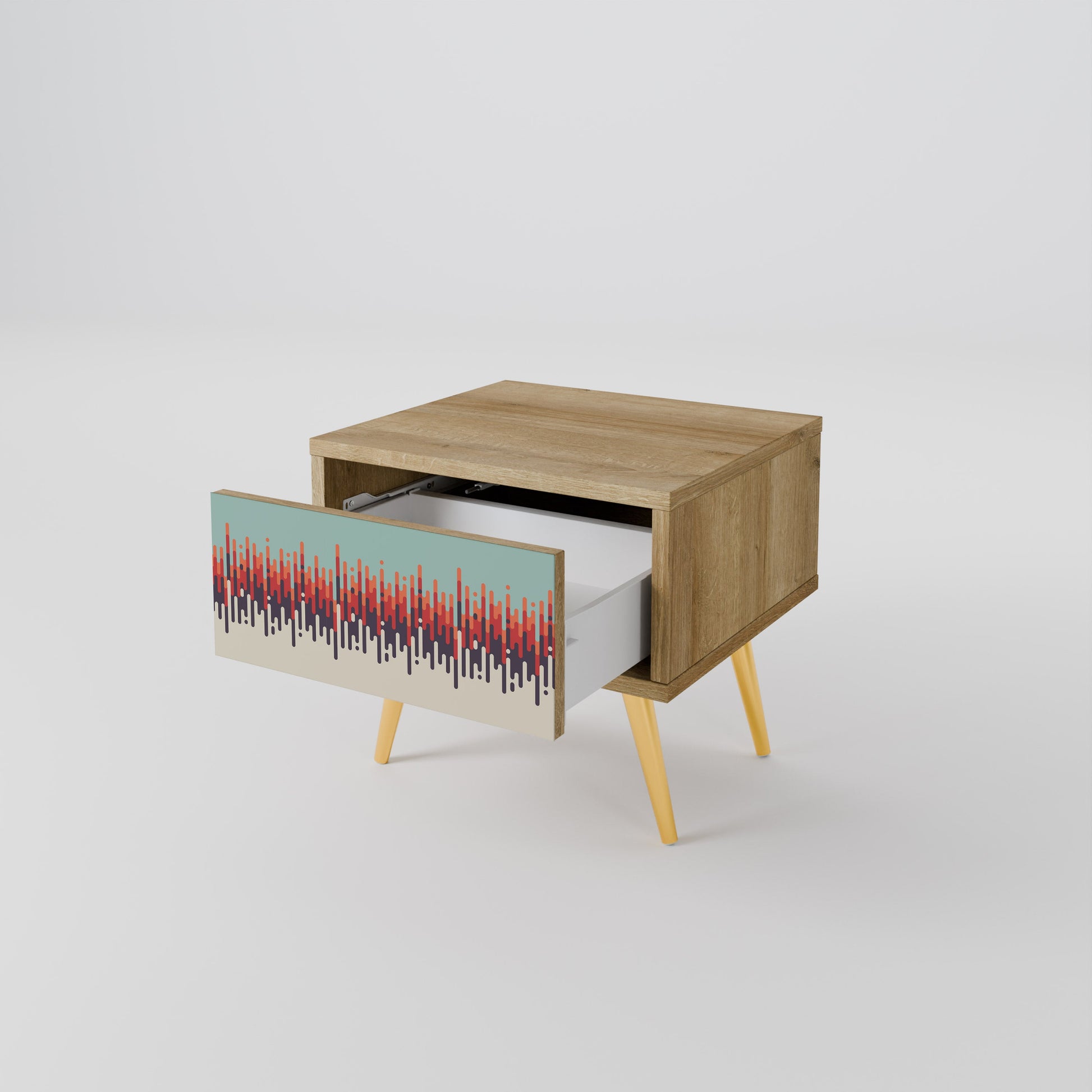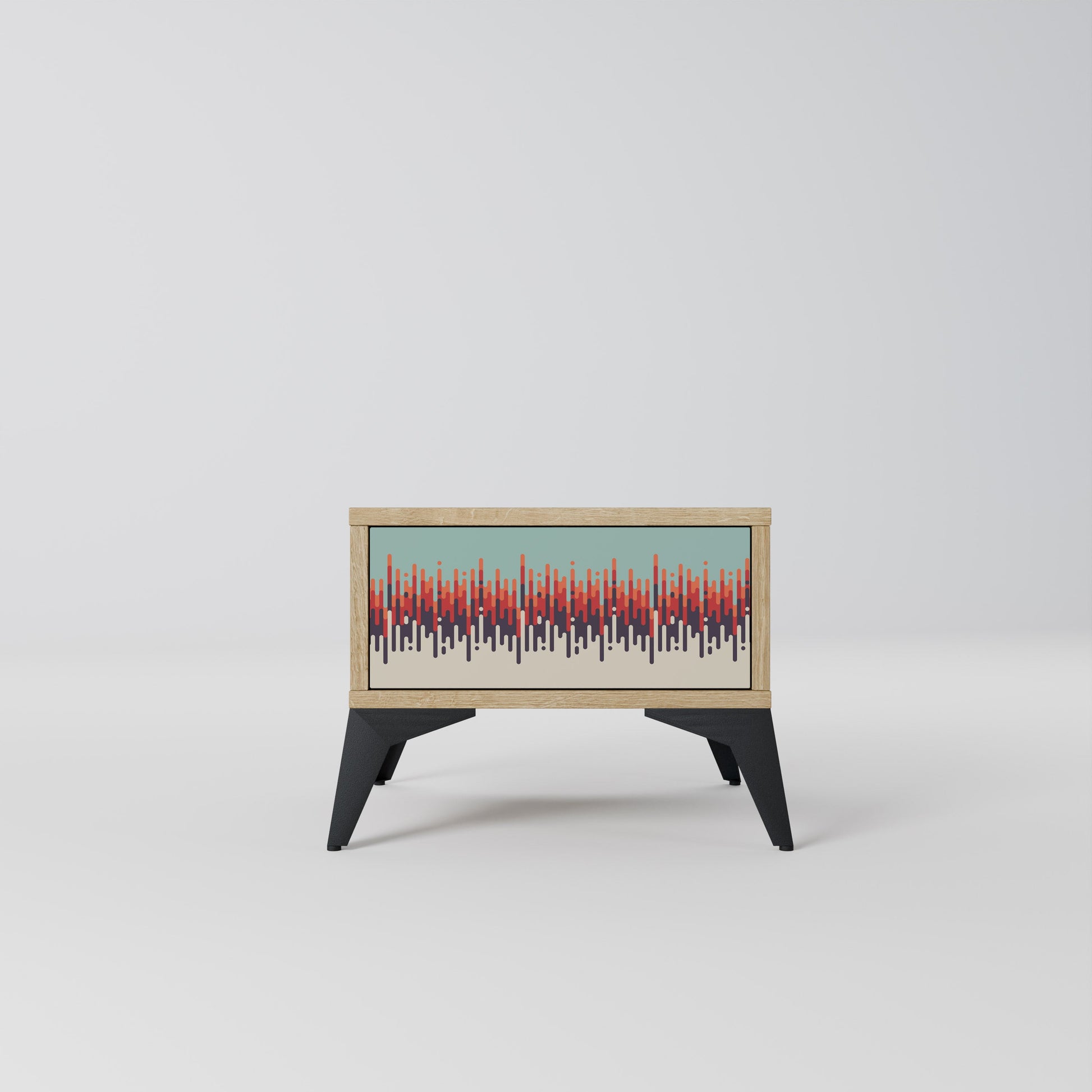 Scopri funzionalità ed eleganza in un formato compatto con il nostro comodino con cassetto. Questo mobile pratico ed elegante coniuga perfettamente la bellezza naturale del legno con il design moderno del frontale del cassetto, creando un elemento armonioso per qualsiasi camera da letto.