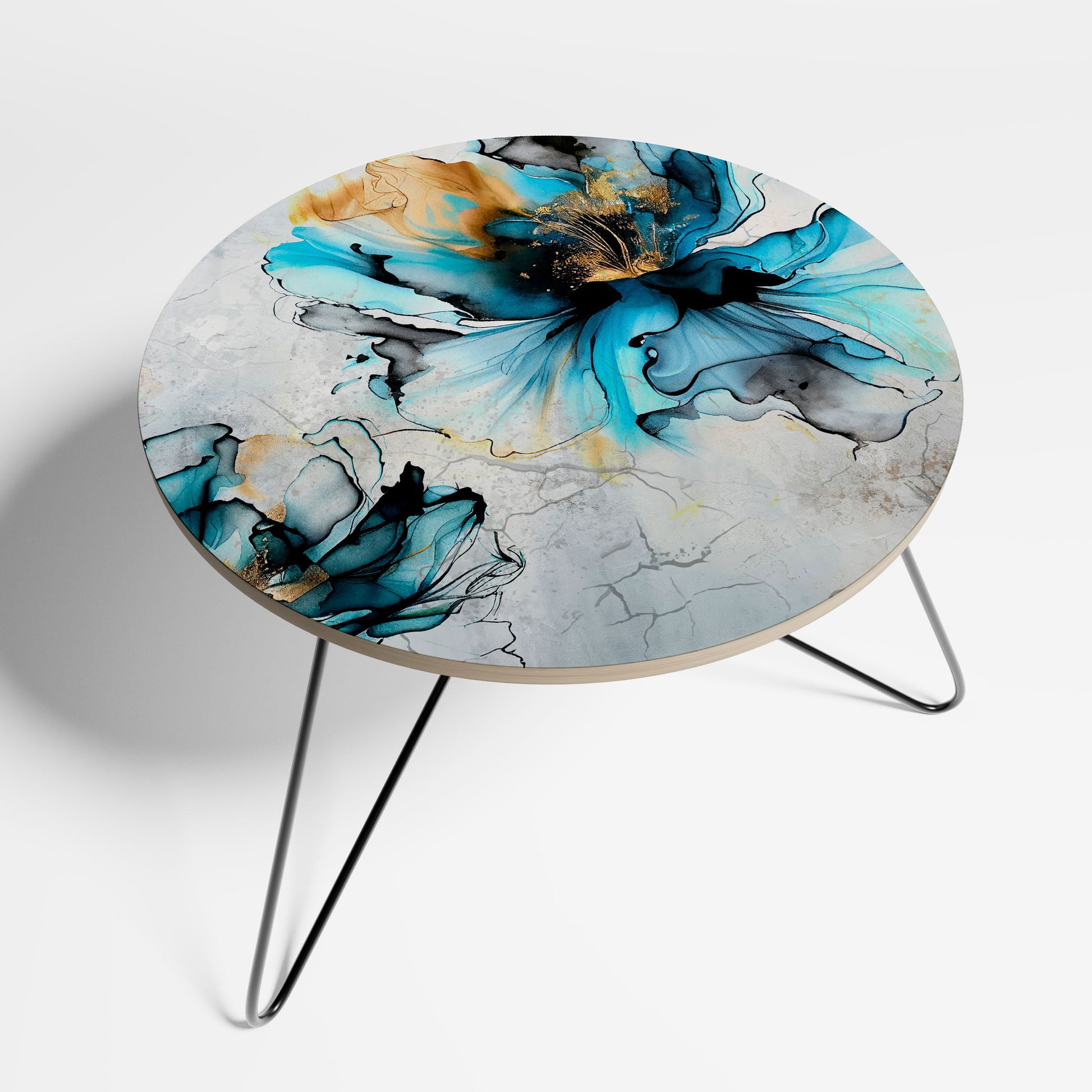 Il piano del tavolo presenta un motivo stampato di alta qualità, che aggiunge un tocco artistico distintivo al tuo spazio. Realizzato in resistente truciolato rivestito in laminato, garantisce un utilizzo duraturo e resistenza all'usura quotidiana.