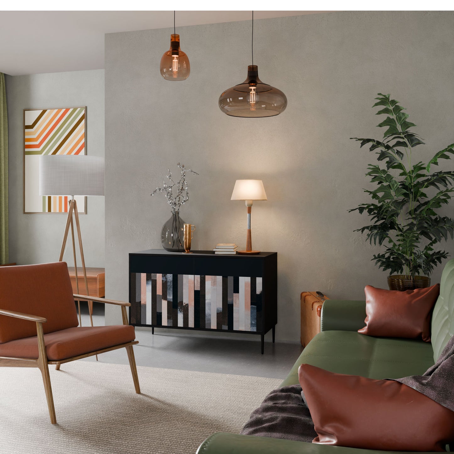 Eleganza e funzionalità in un unico mobile: la nostra credenza a 2 ante con corpo nero è la soluzione perfetta per gli amanti degli interni eleganti e moderni. Il corpo nero enfatizza il carattere audace del mobile, mentre i frontali con una stampa unica aggiungono un tocco artistico. Si adatta perfettamente al soggiorno, alla camera da letto o all'ufficio, completando sia gli arrangiamenti moderni che quelli industriali.