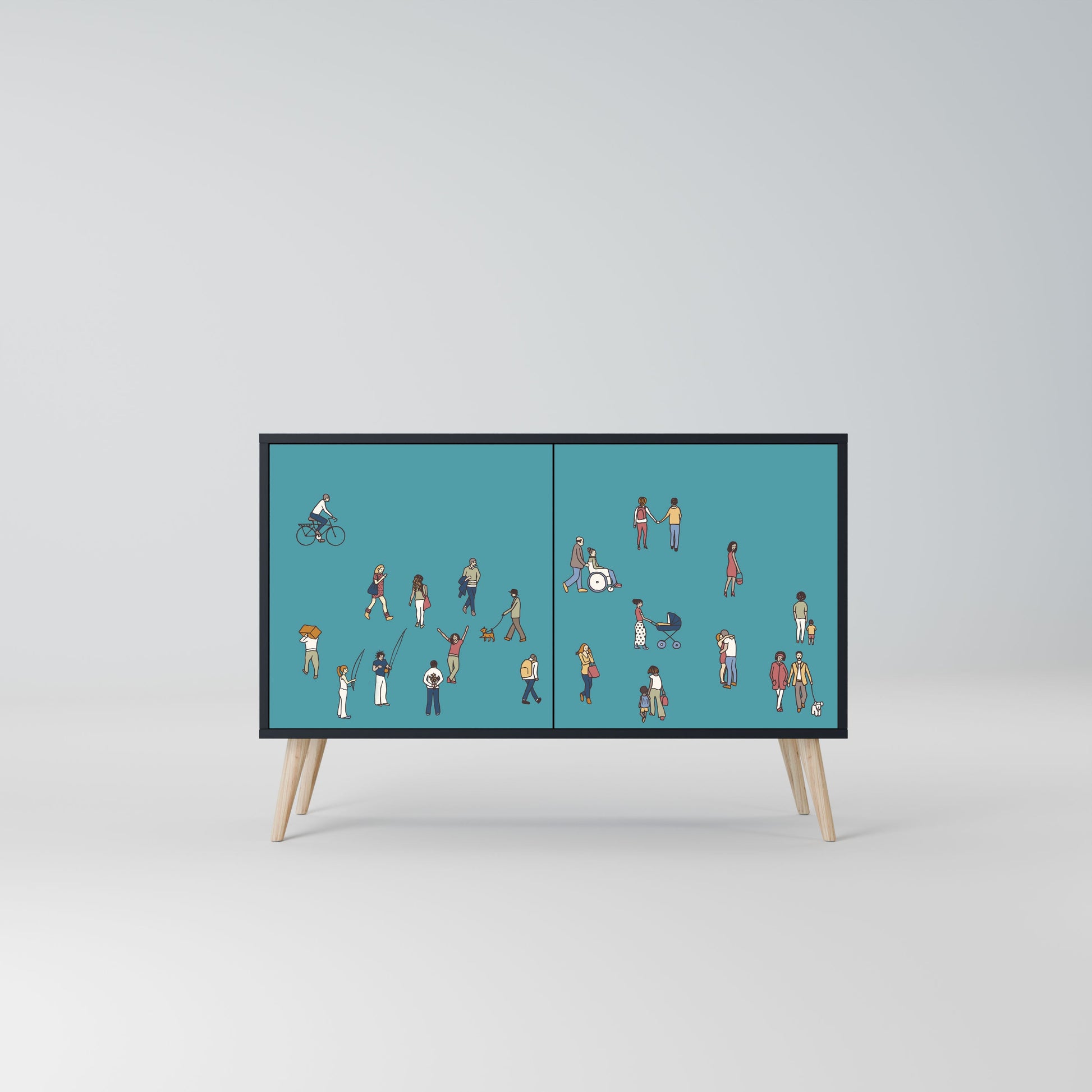 Eleganza e funzionalità in un unico mobile: la nostra credenza a 2 ante con corpo nero è la soluzione perfetta per gli amanti degli interni eleganti e moderni. Il corpo nero enfatizza il carattere audace del mobile, mentre i frontali con una stampa unica aggiungono un tocco artistico. Si adatta perfettamente al soggiorno, alla camera da letto o all'ufficio, completando sia gli arrangiamenti moderni che quelli industriali.