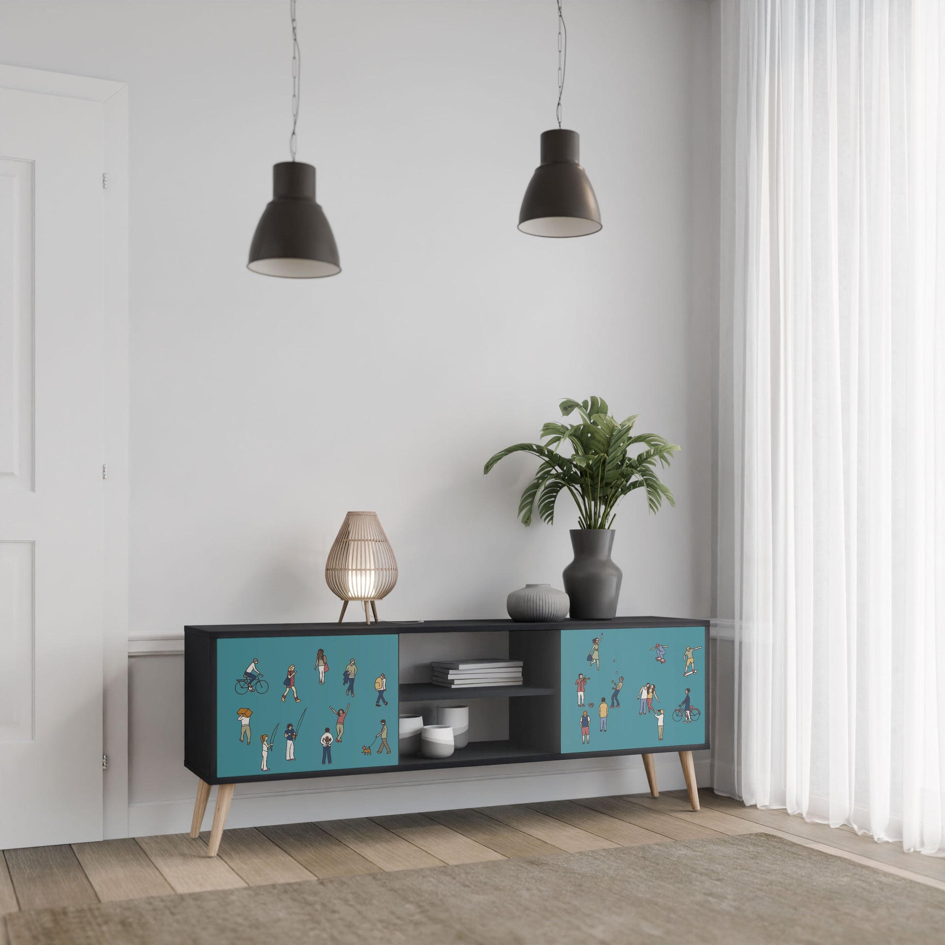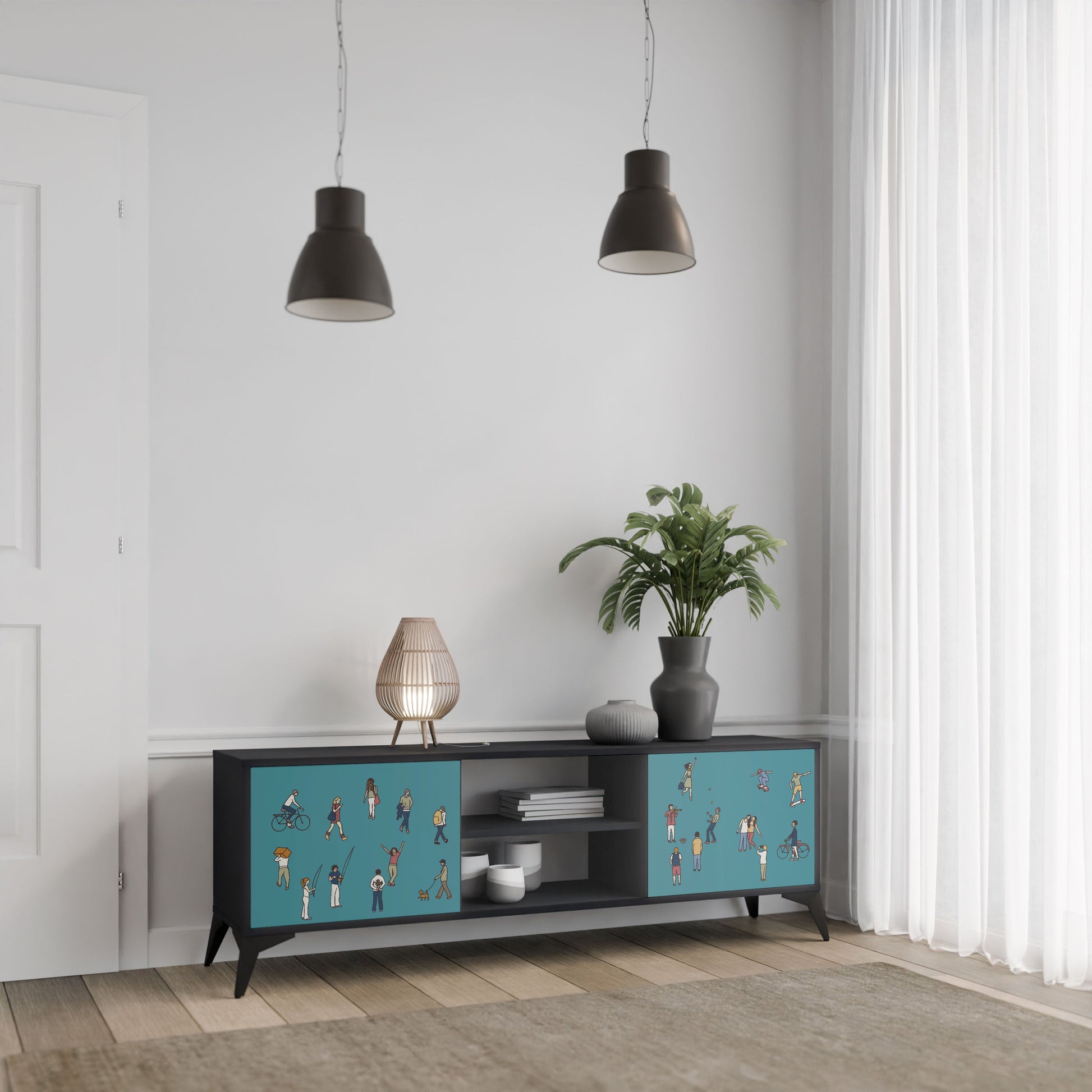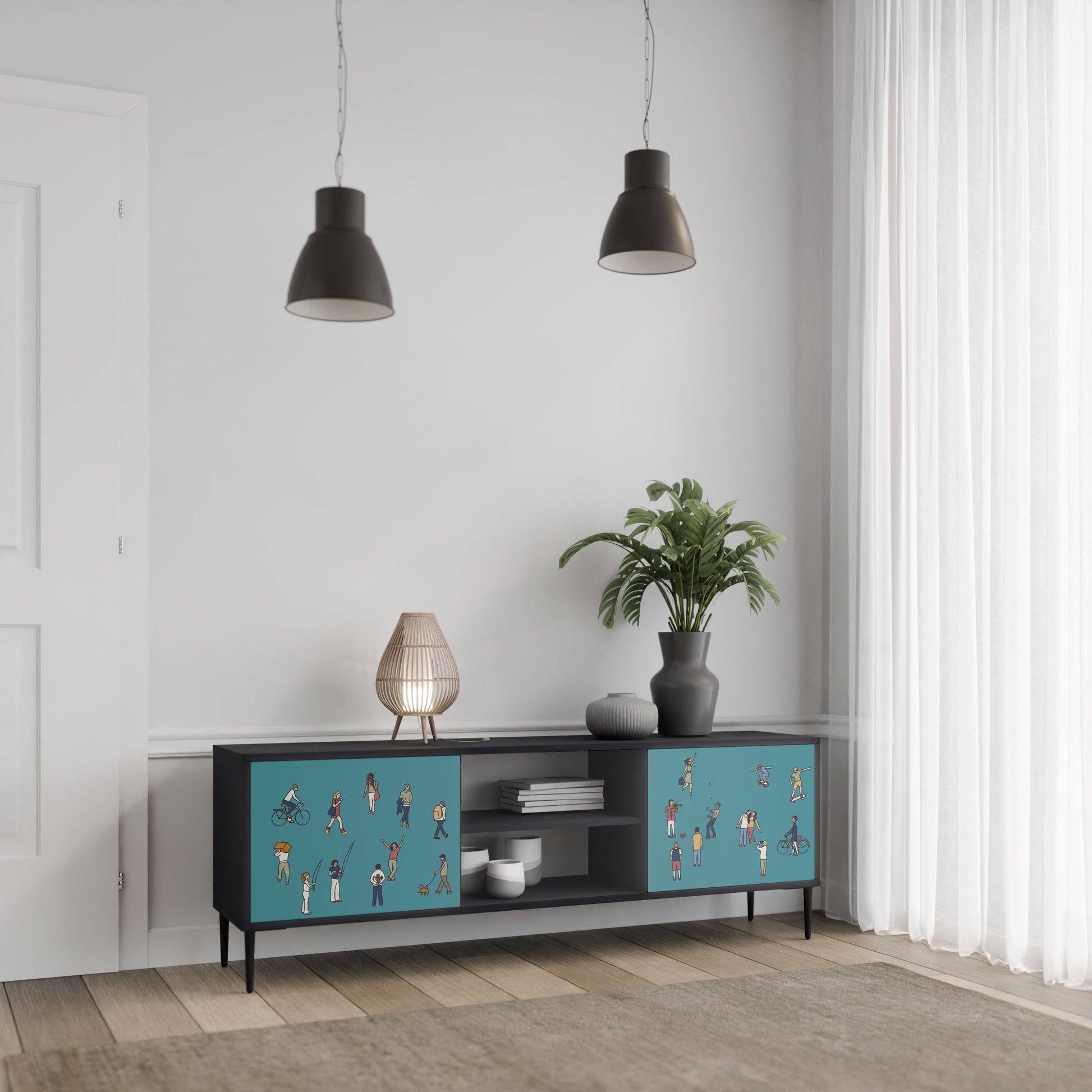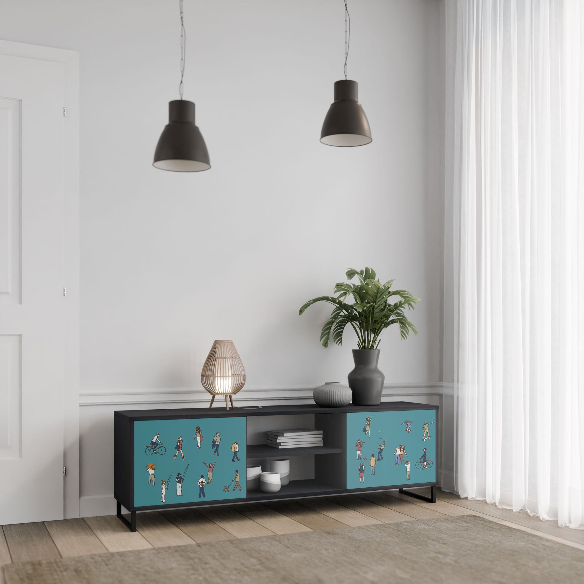 Il corpo nero conferisce al mobile TV un aspetto elegante e moderno, mentre i frontali con una stampa eccezionale attirano l'attenzione, rendendolo il punto focale di ogni stanza. L'interno spazioso offre spazio per dispositivi elettronici, cavi, telecomandi e altri accessori, aiutandoti a mantenere ordine e organizzazione.