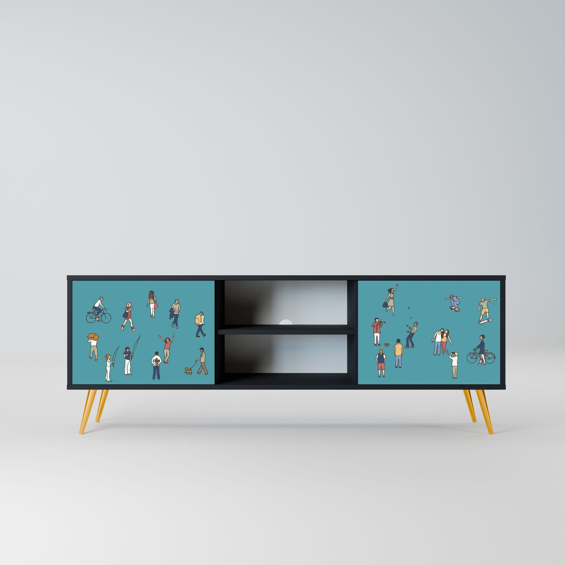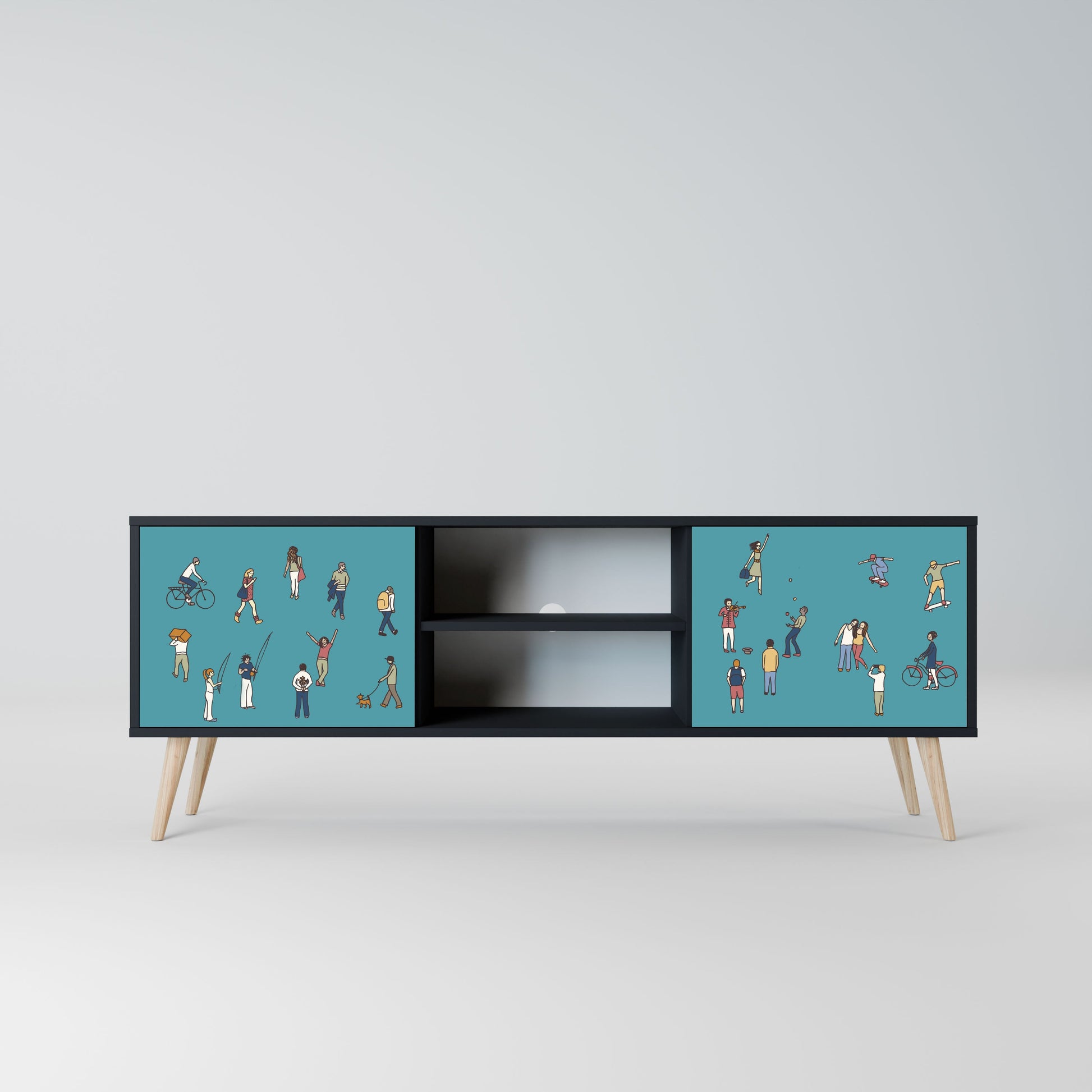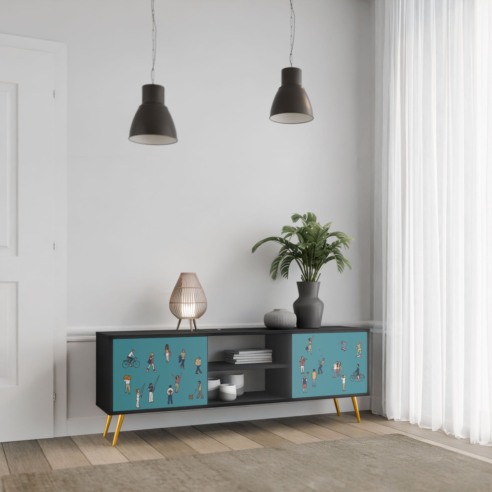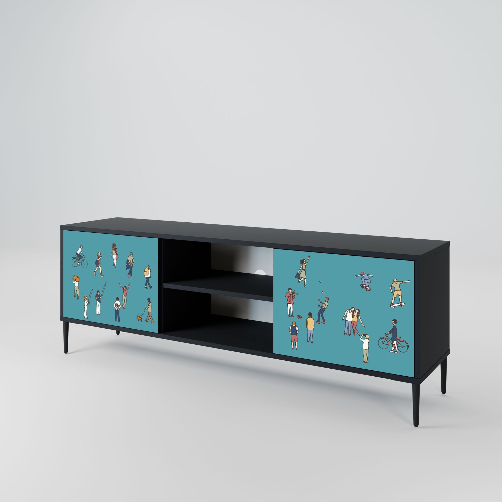 Il corpo nero conferisce al mobile TV un aspetto elegante e moderno, mentre i frontali con una stampa eccezionale attirano l'attenzione, rendendolo il punto focale di ogni stanza. L'interno spazioso offre spazio per dispositivi elettronici, cavi, telecomandi e altri accessori, aiutandoti a mantenere ordine e organizzazione.
