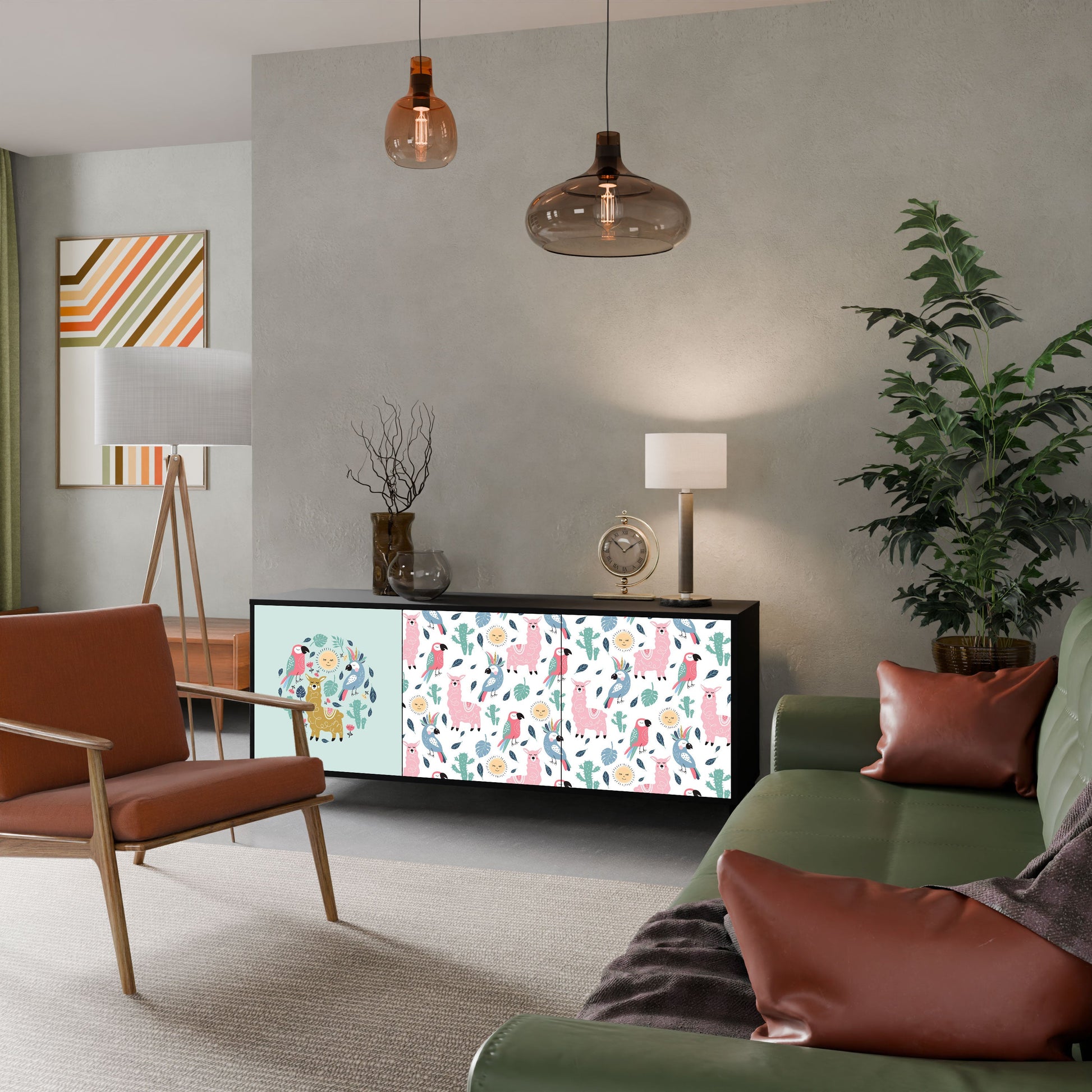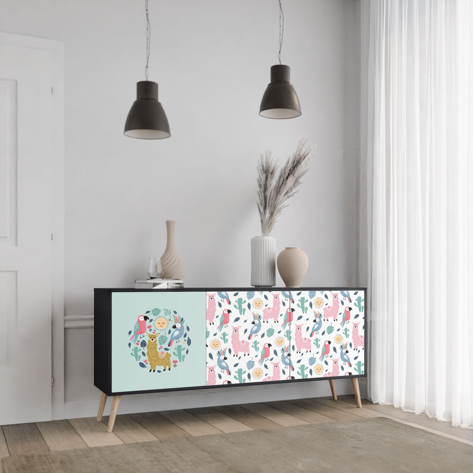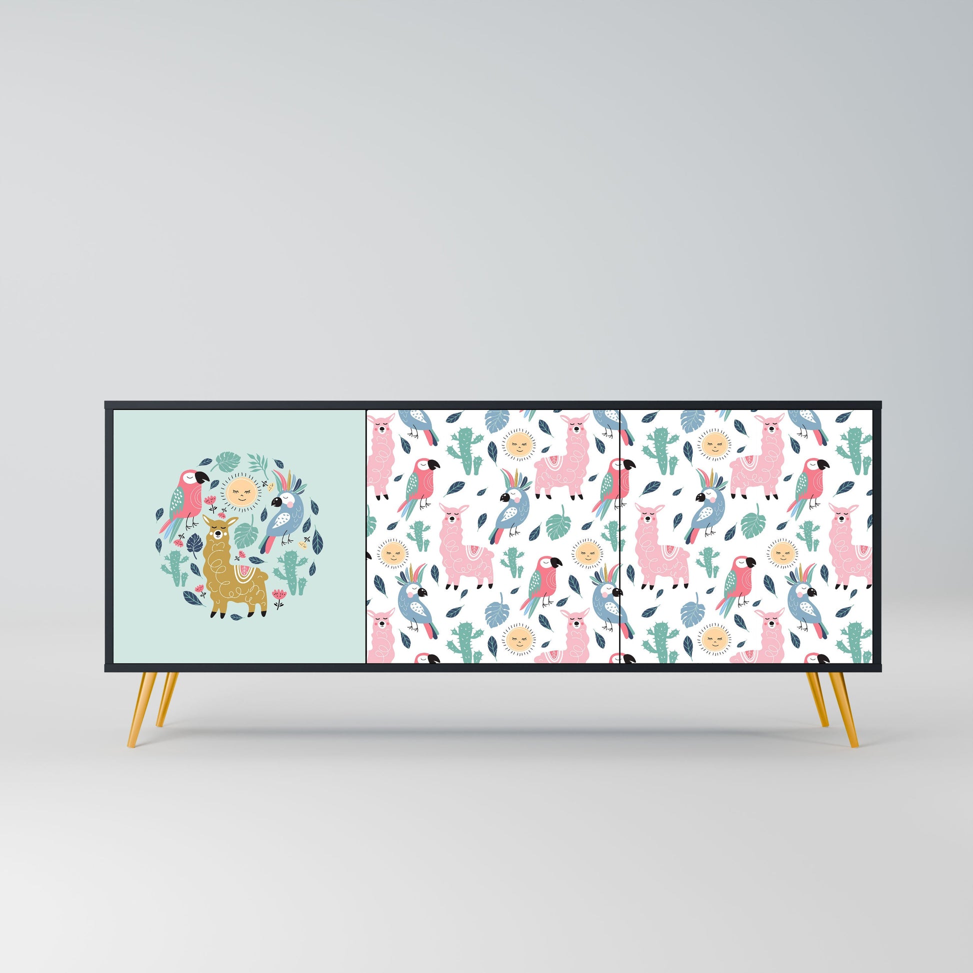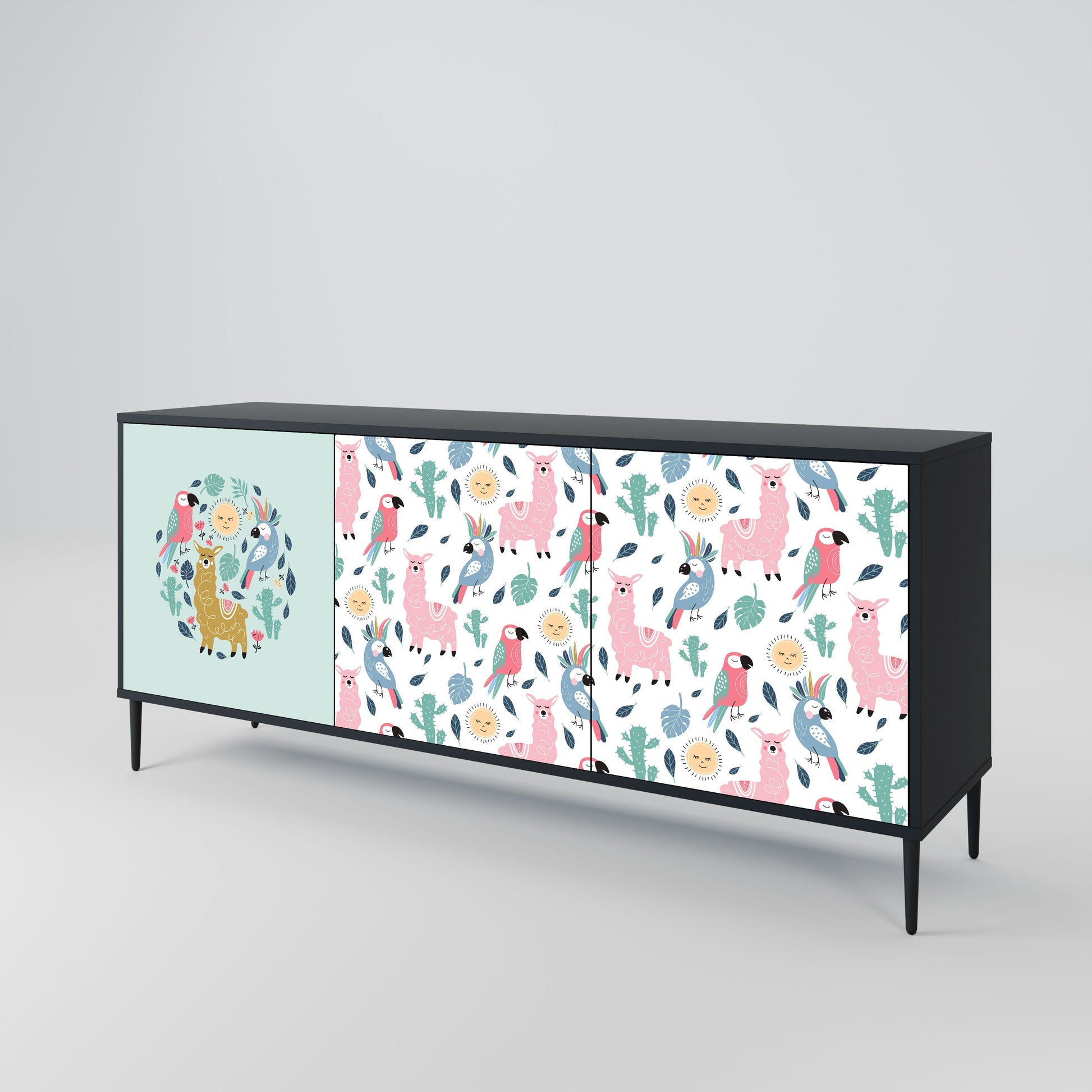 Credenza a 3 ante COLORFUL ALPACAS in finitura nera
