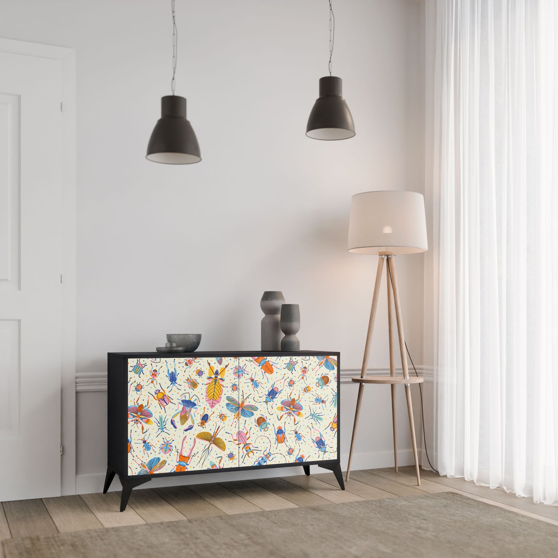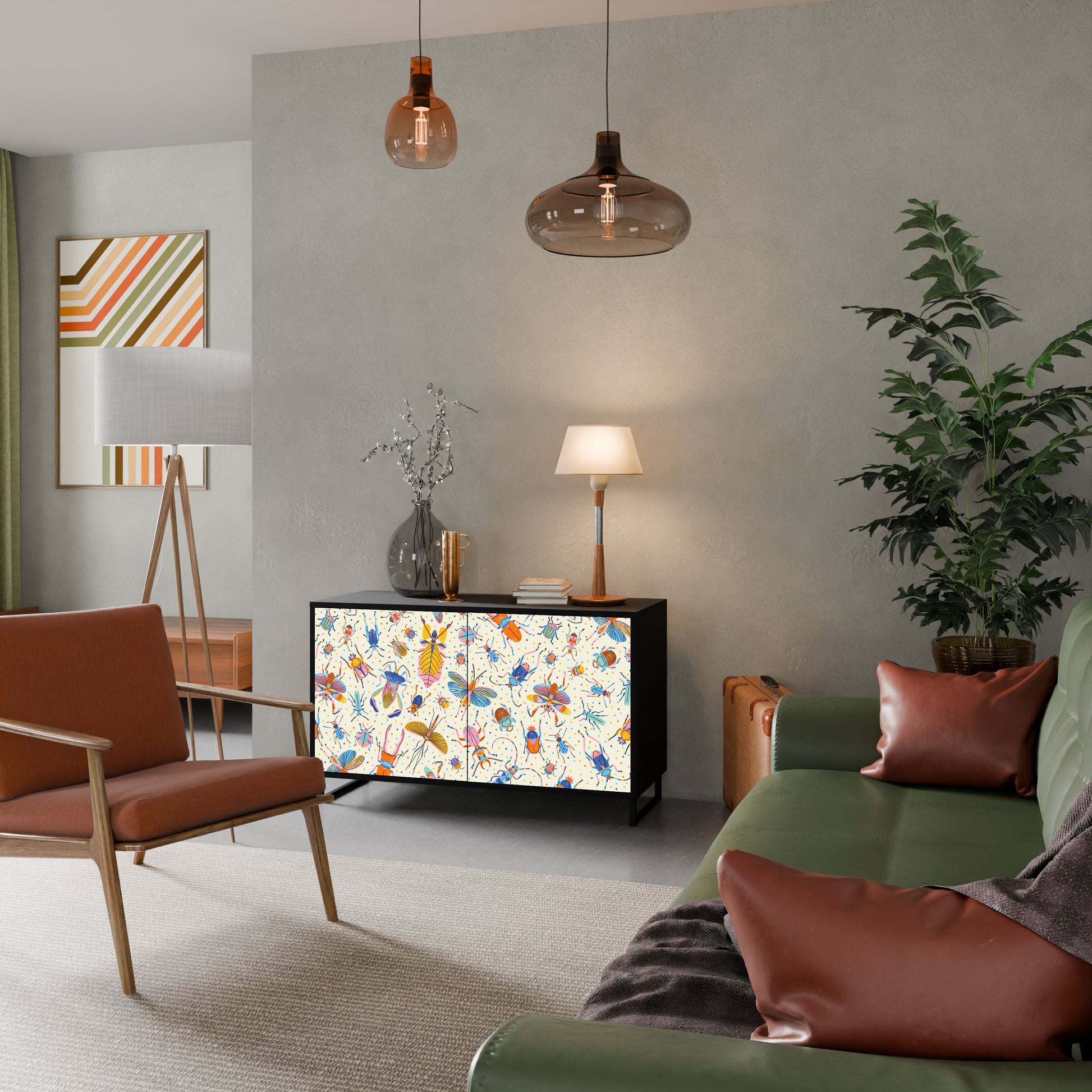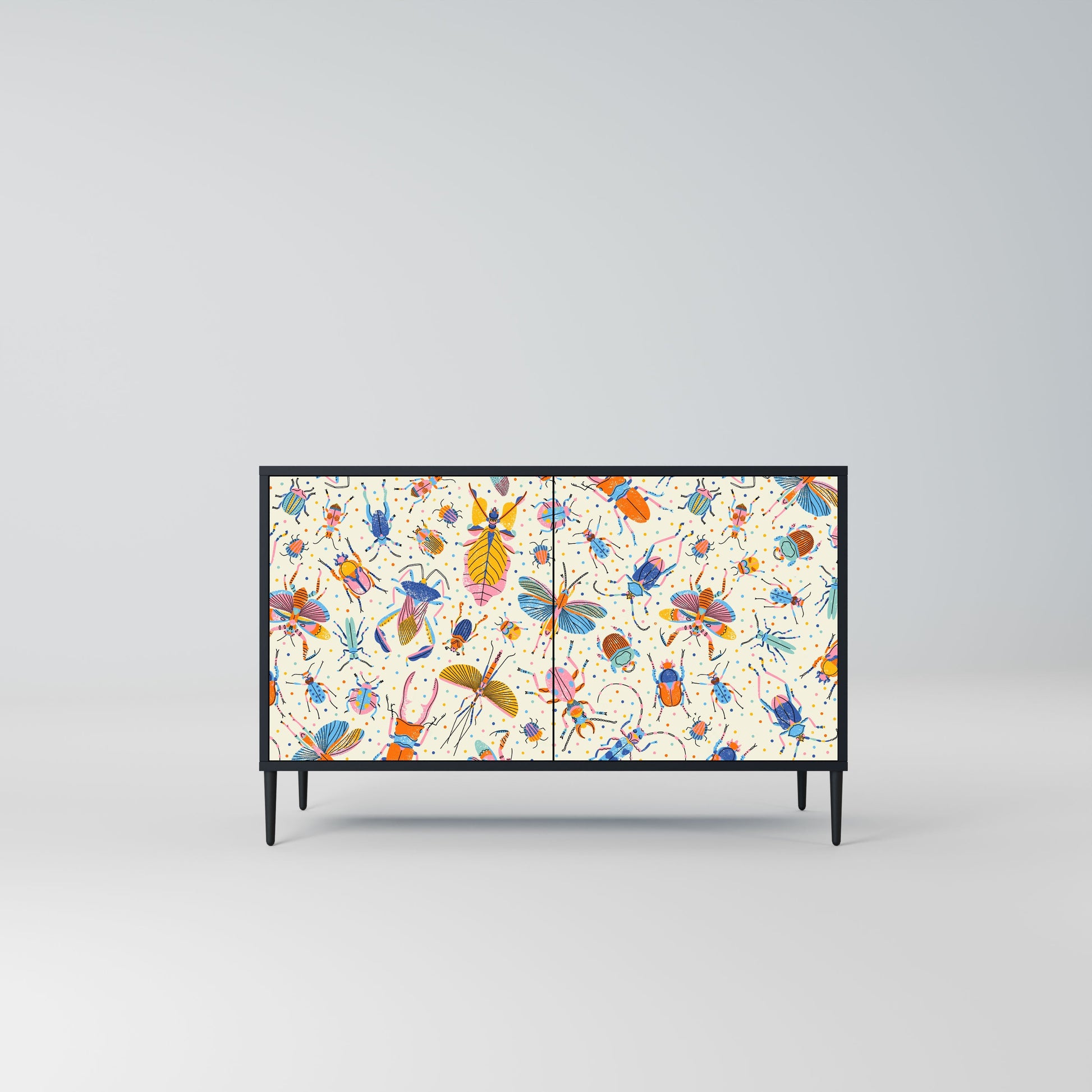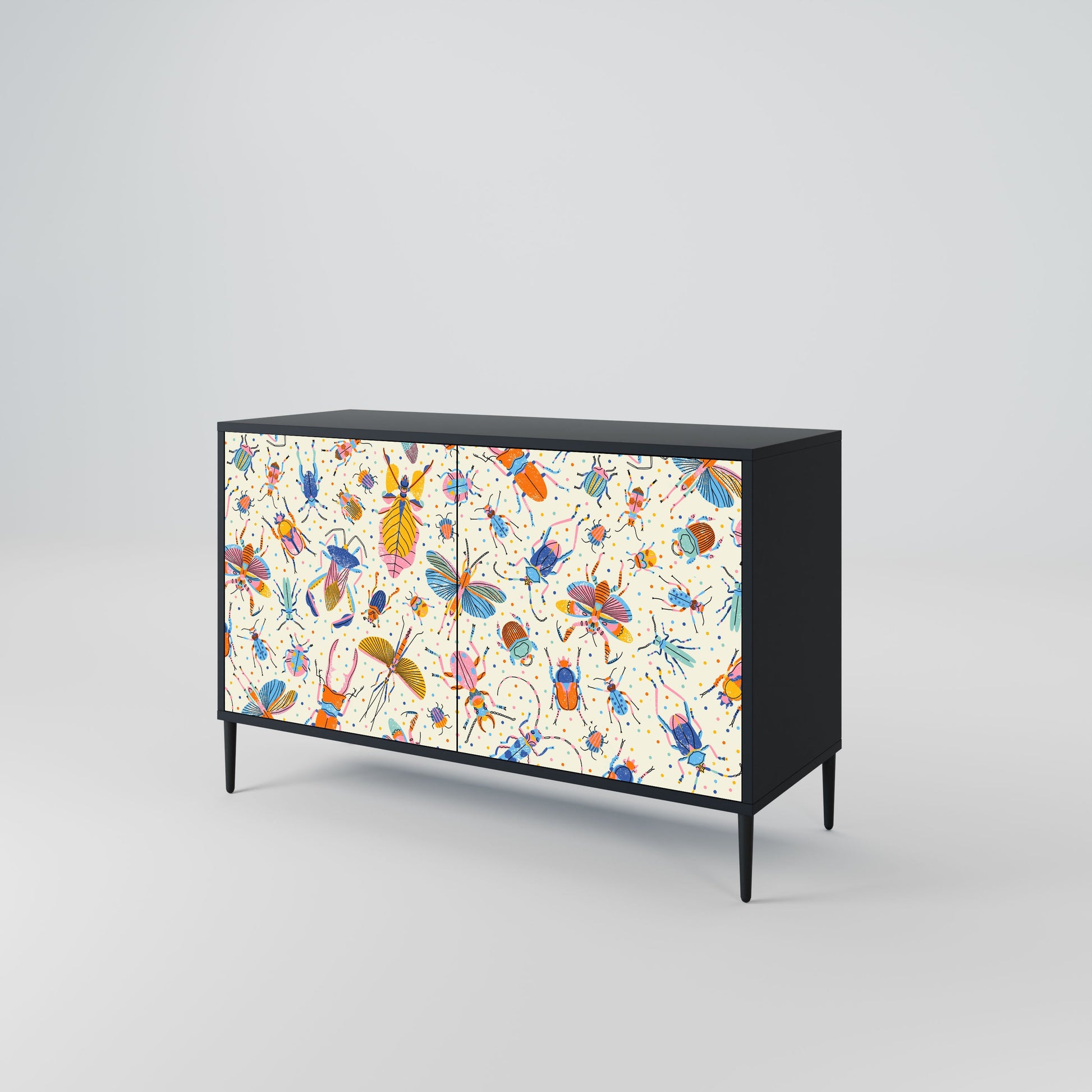 Credenza a 2 ante COLORFUL INSECTS in finitura nera