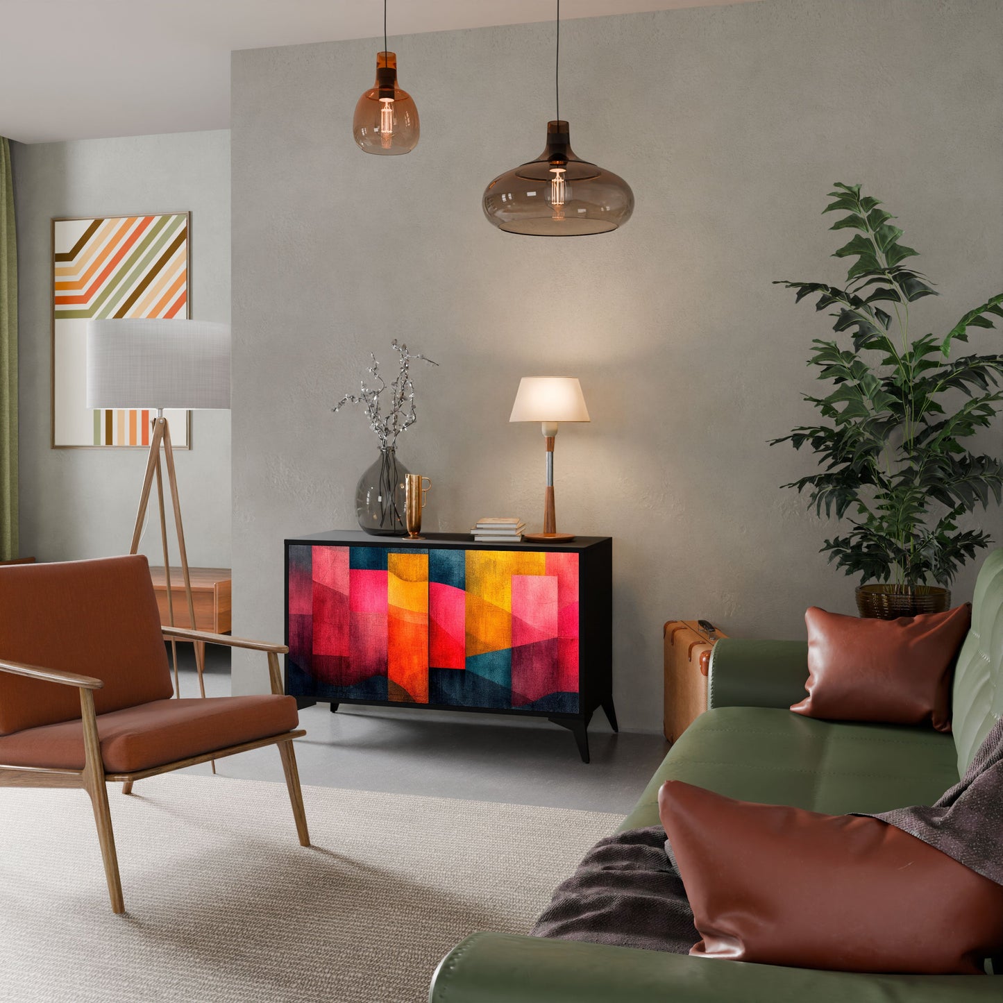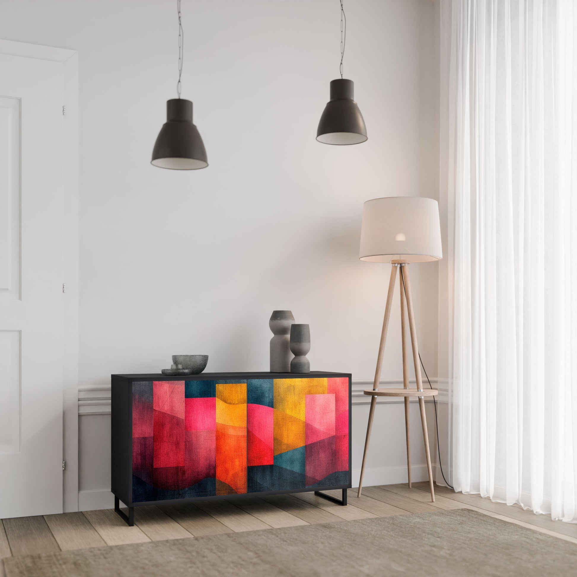 Eleganza e funzionalità in un unico mobile: la nostra credenza a 2 ante con corpo nero è la soluzione perfetta per gli amanti degli interni eleganti e moderni. Il corpo nero enfatizza il carattere audace del mobile, mentre i frontali con una stampa unica aggiungono un tocco artistico. Si adatta perfettamente al soggiorno, alla camera da letto o all'ufficio, completando sia gli arrangiamenti moderni che quelli industriali.