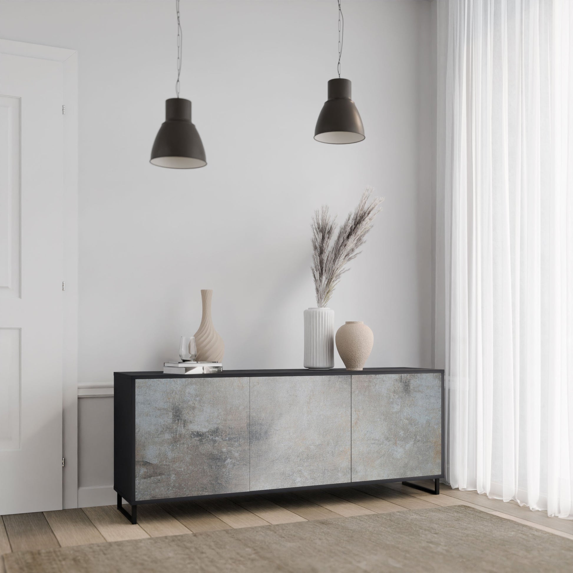 Eleganza e funzionalità in un unico mobile: la nostra credenza a 3 ante con corpo nero è la soluzione perfetta per gli amanti degli interni eleganti e moderni. Il corpo nero enfatizza il carattere audace del mobile, mentre i frontali con una stampa unica aggiungono un tocco artistico. Si adatta perfettamente al soggiorno, alla camera da letto o all'ufficio, completando sia gli arrangiamenti moderni che quelli industriali.