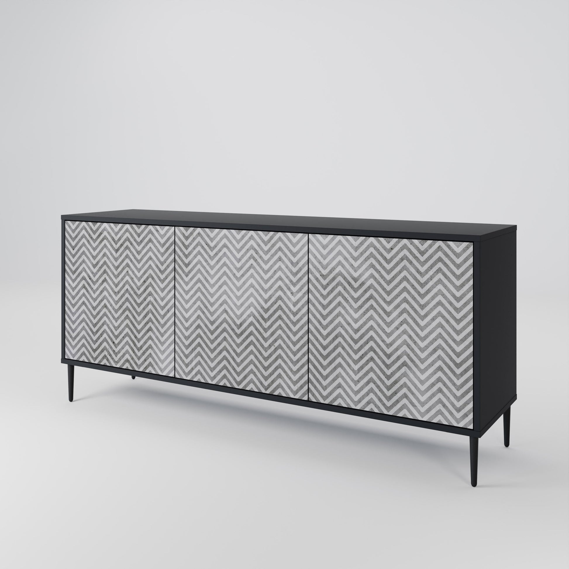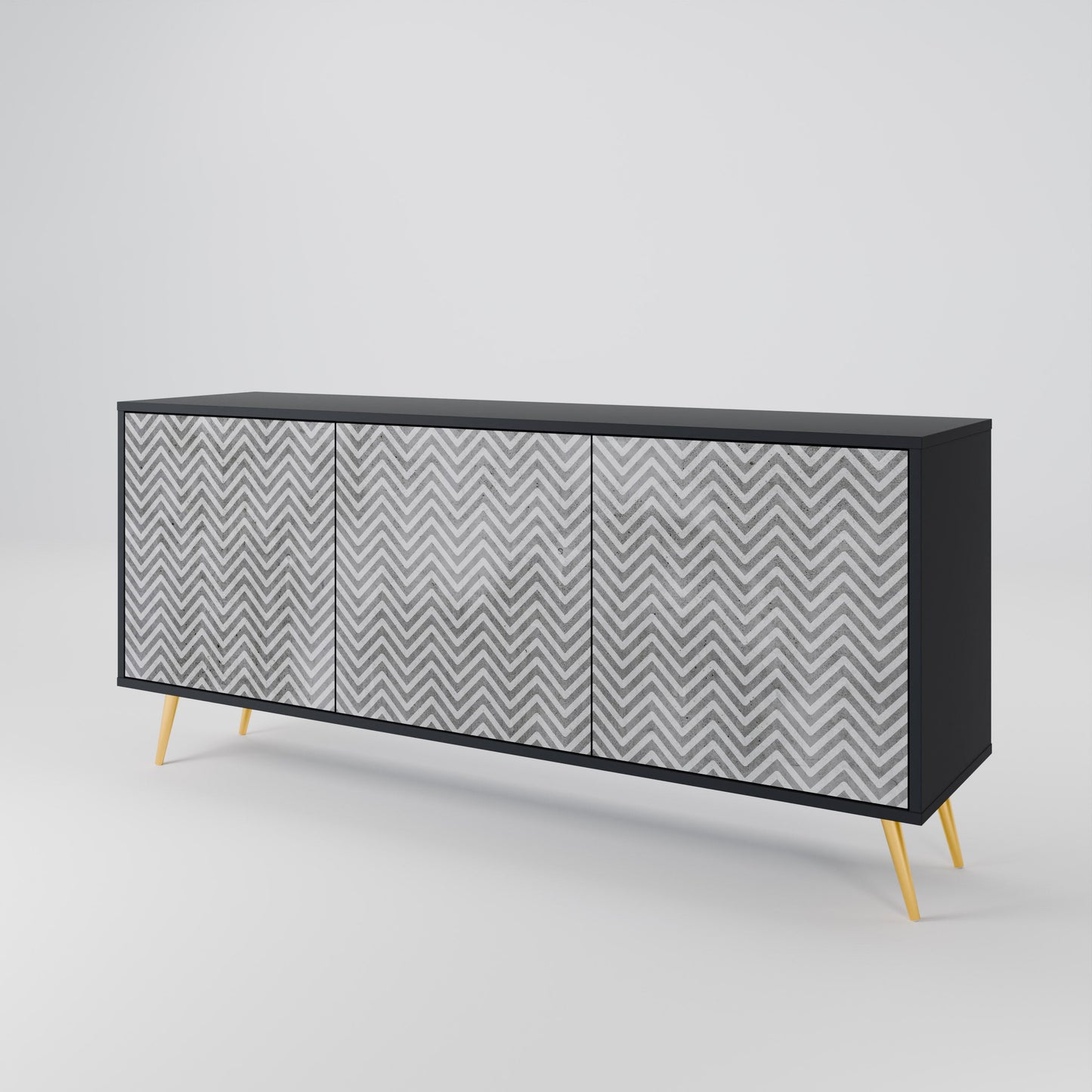 Credenza CONCRETE ZIG ZAG a 3 ante in finitura nera
